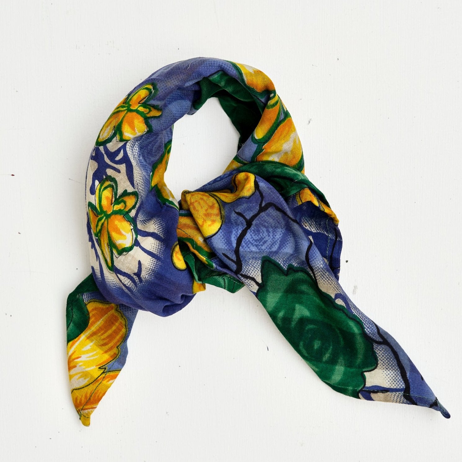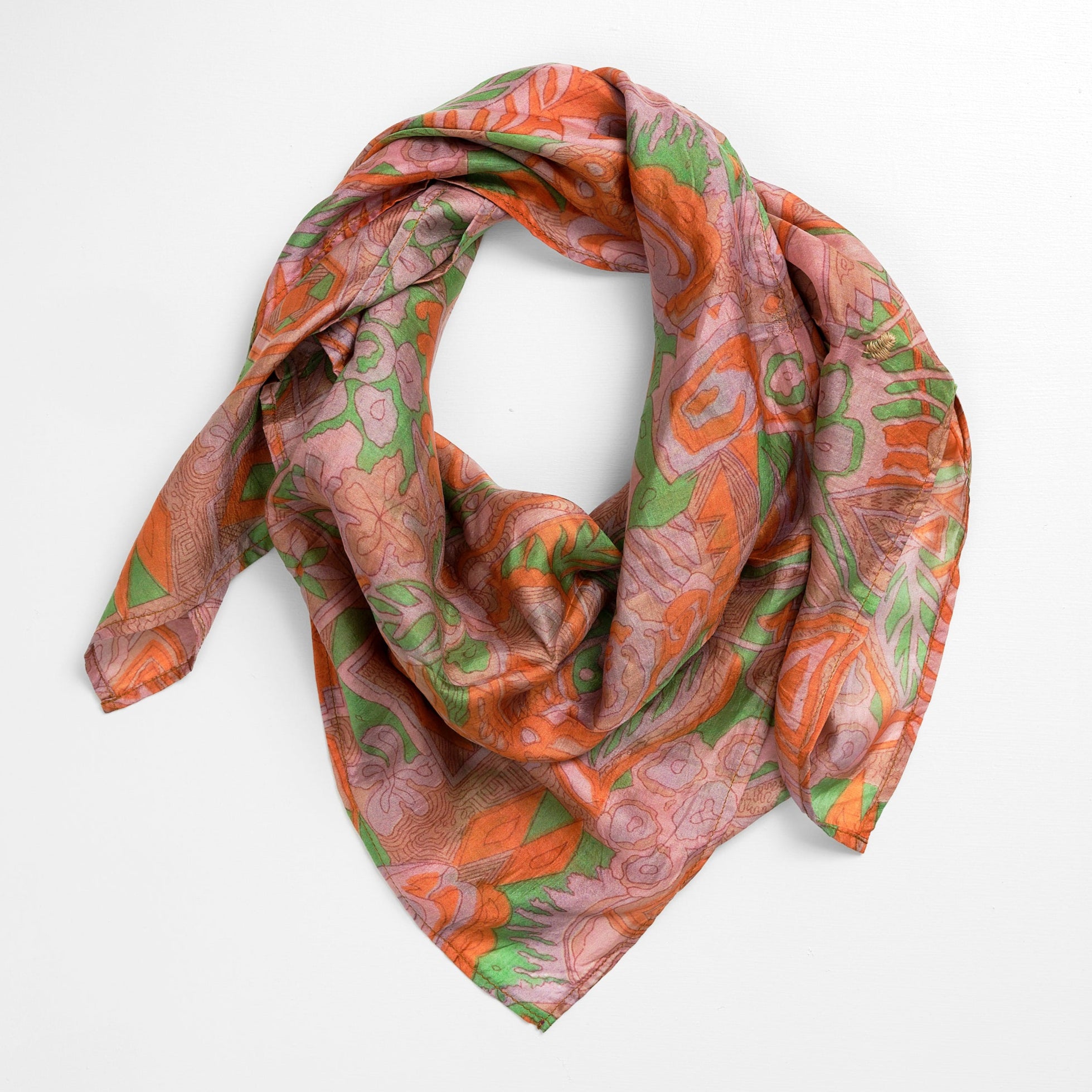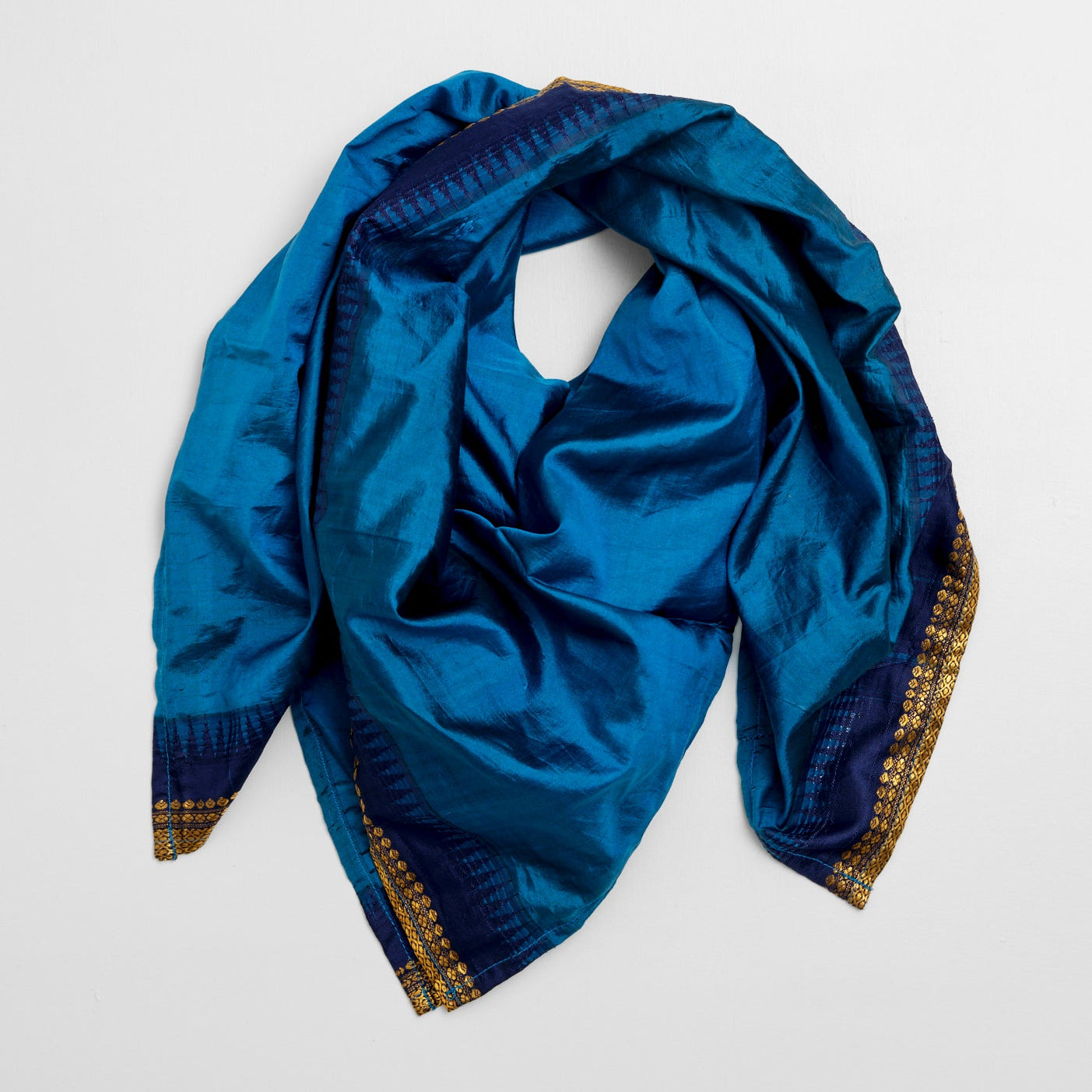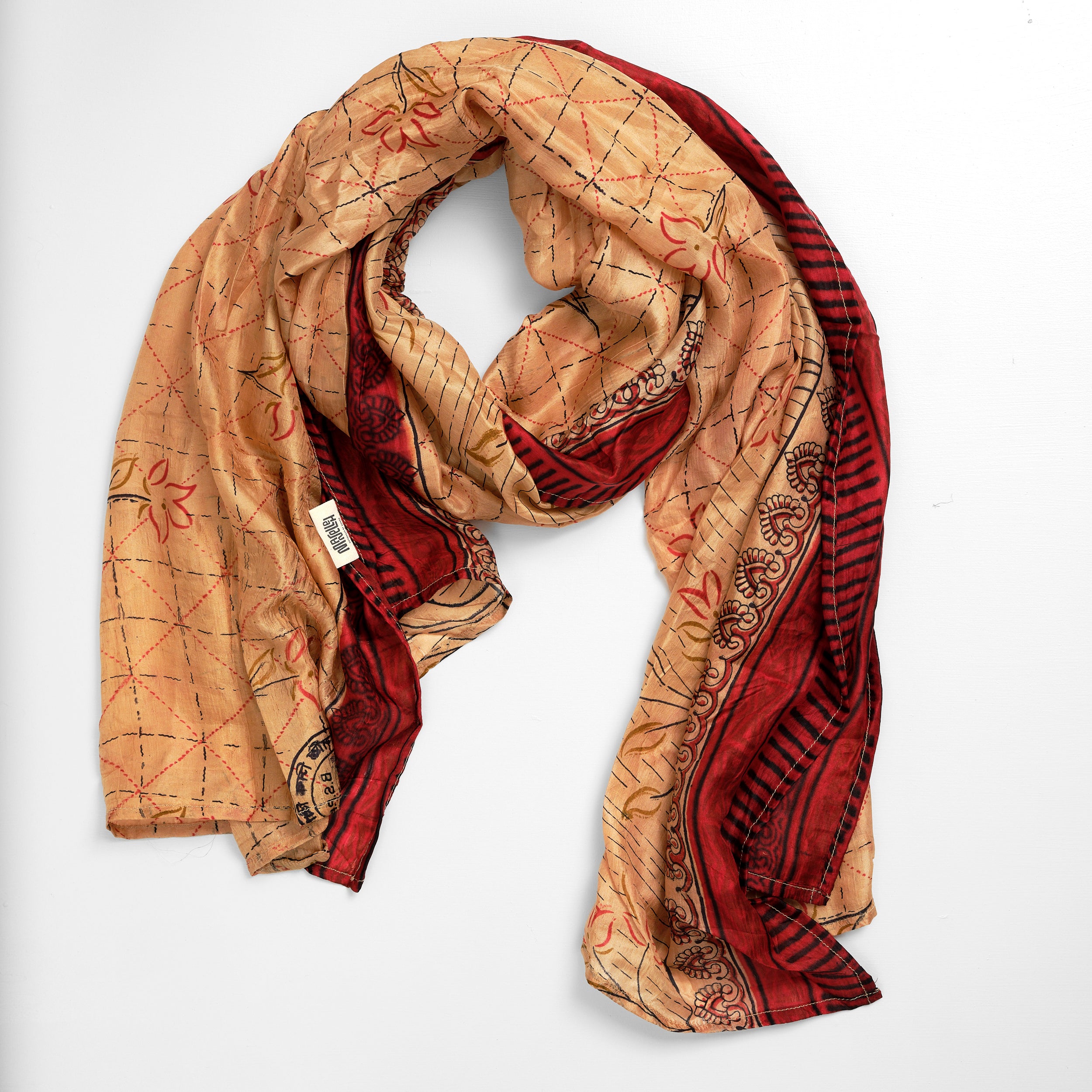 De smukke tørklæder er syet af vintage sarier, nøje udvalgt, istandsat og syet. De findes i bomuld og silke i forskellige størrelser.