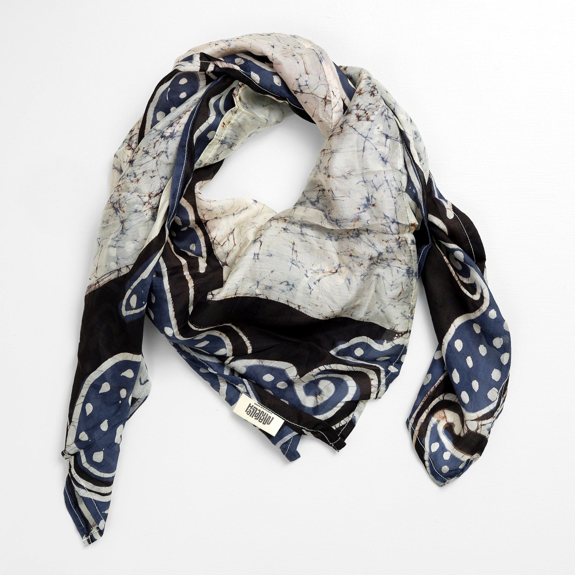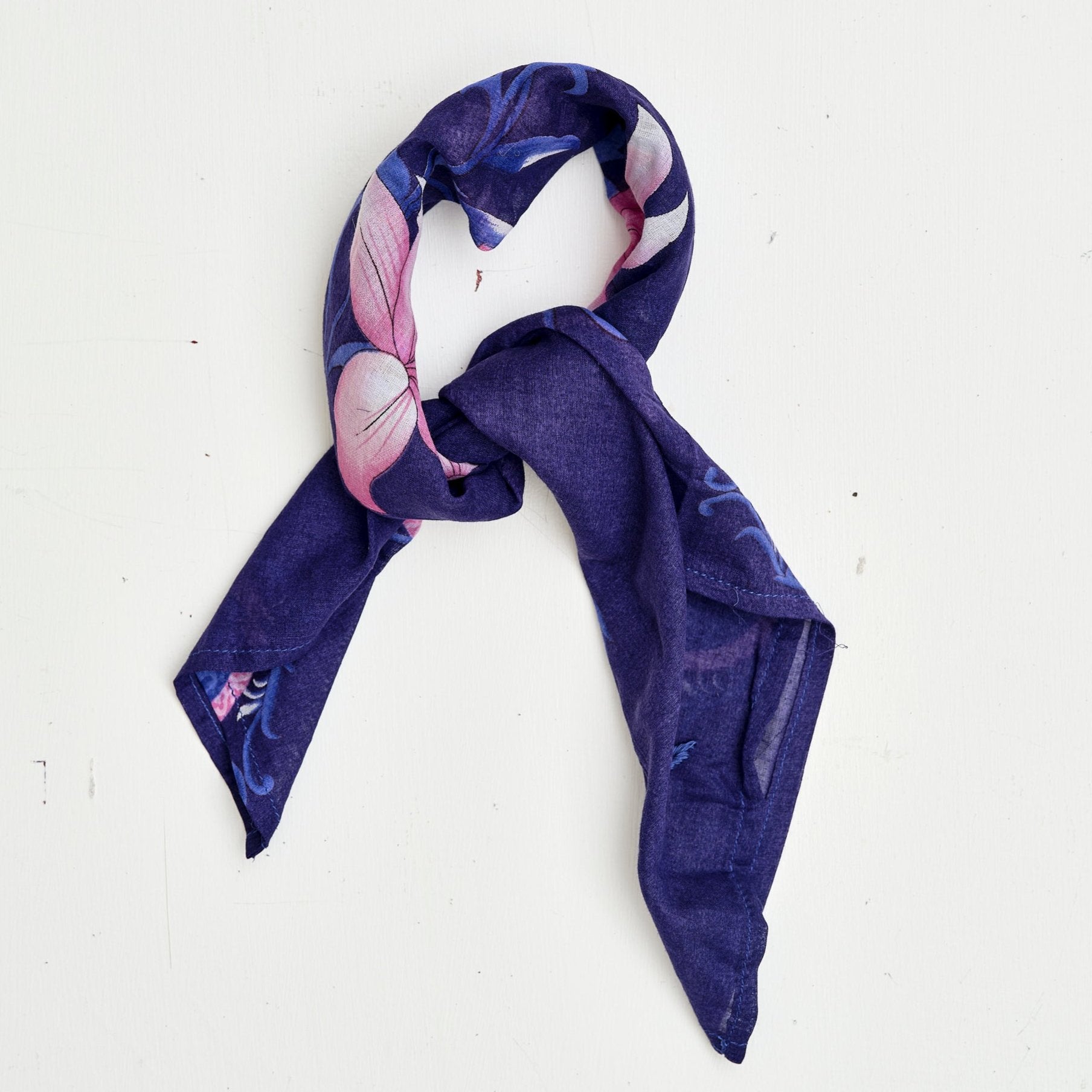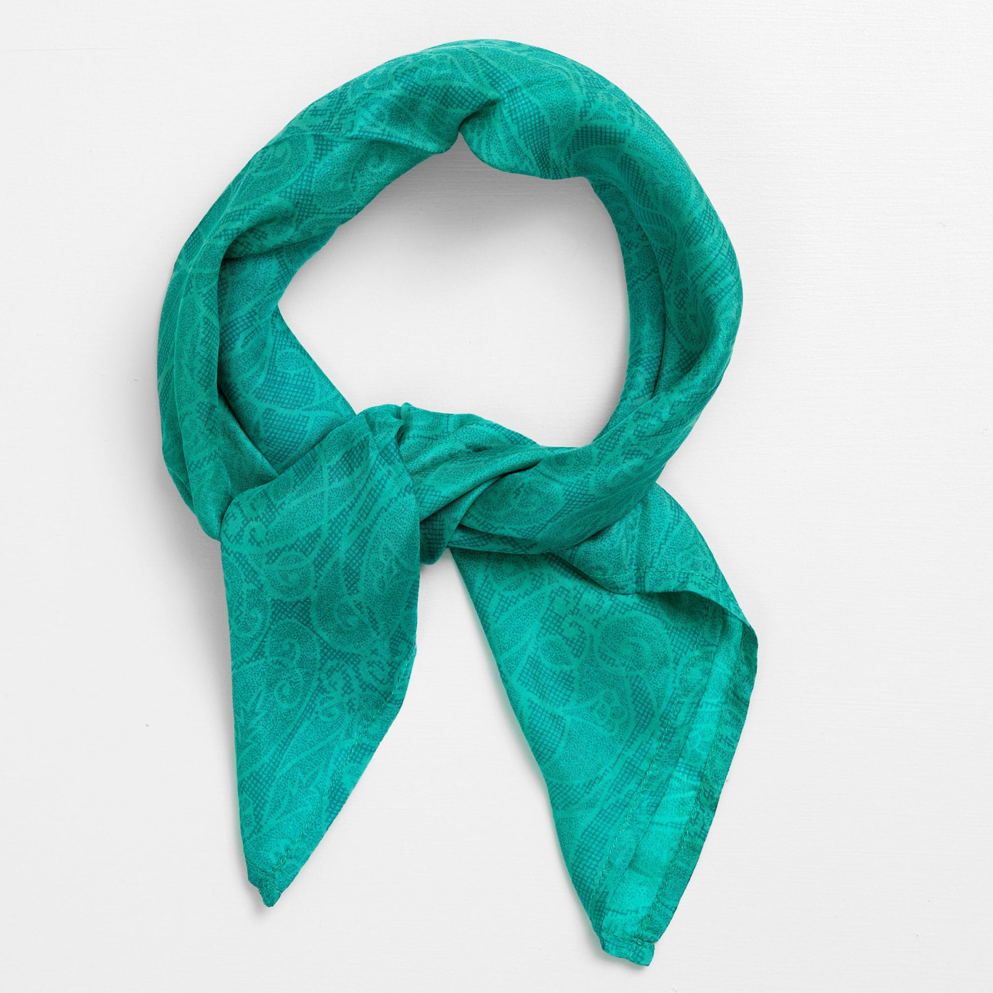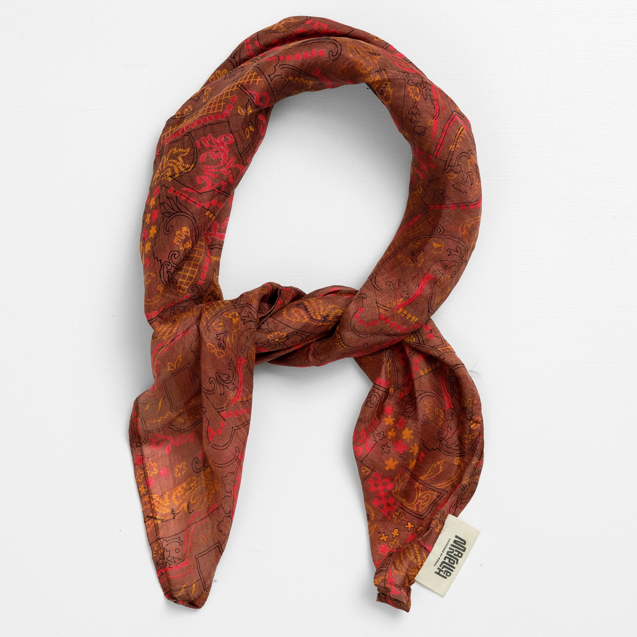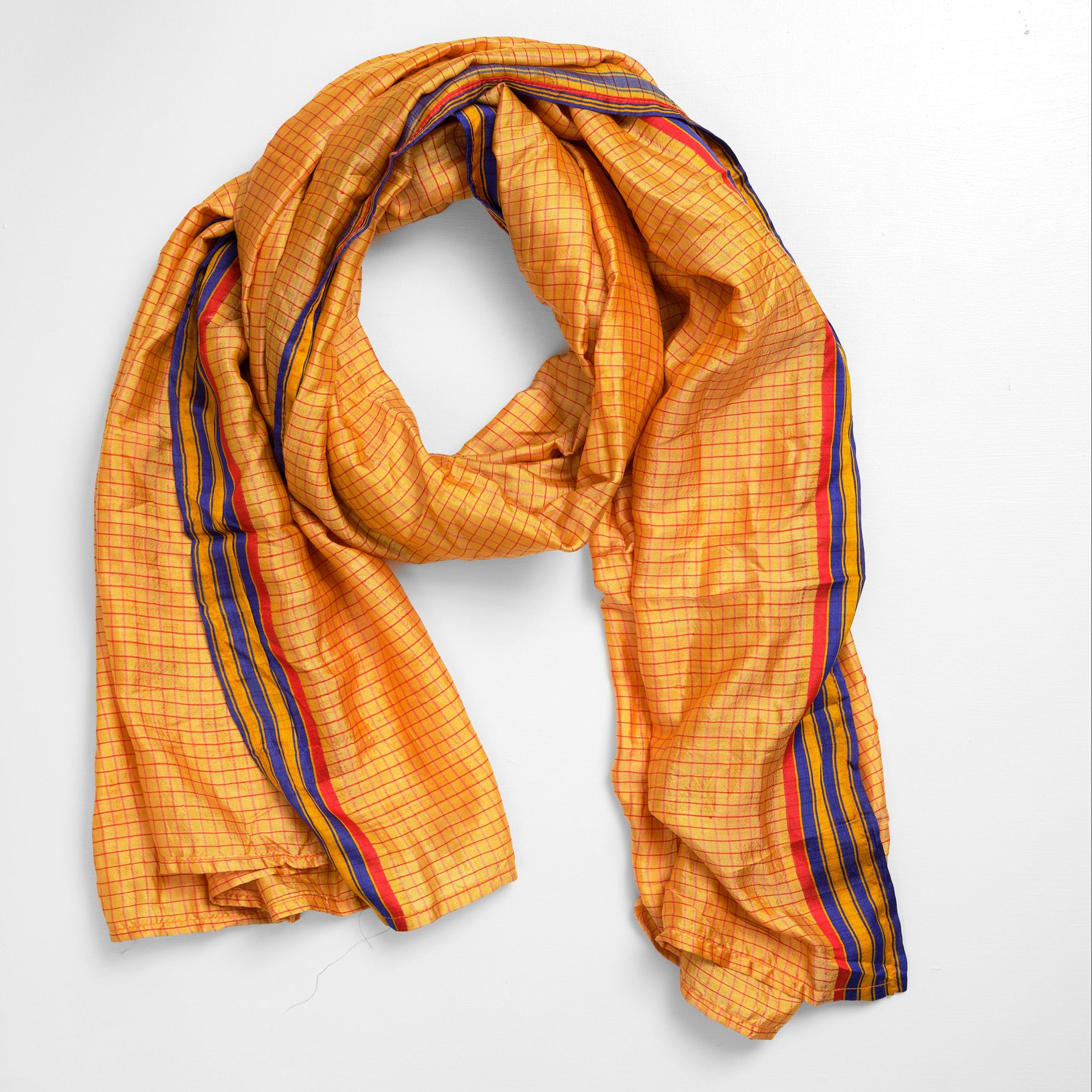 De smukke tørklæder er syet af vintage sarier, nøje udvalgt, istandsat og syet. De findes i bomuld og silke i forskellige størrelser.