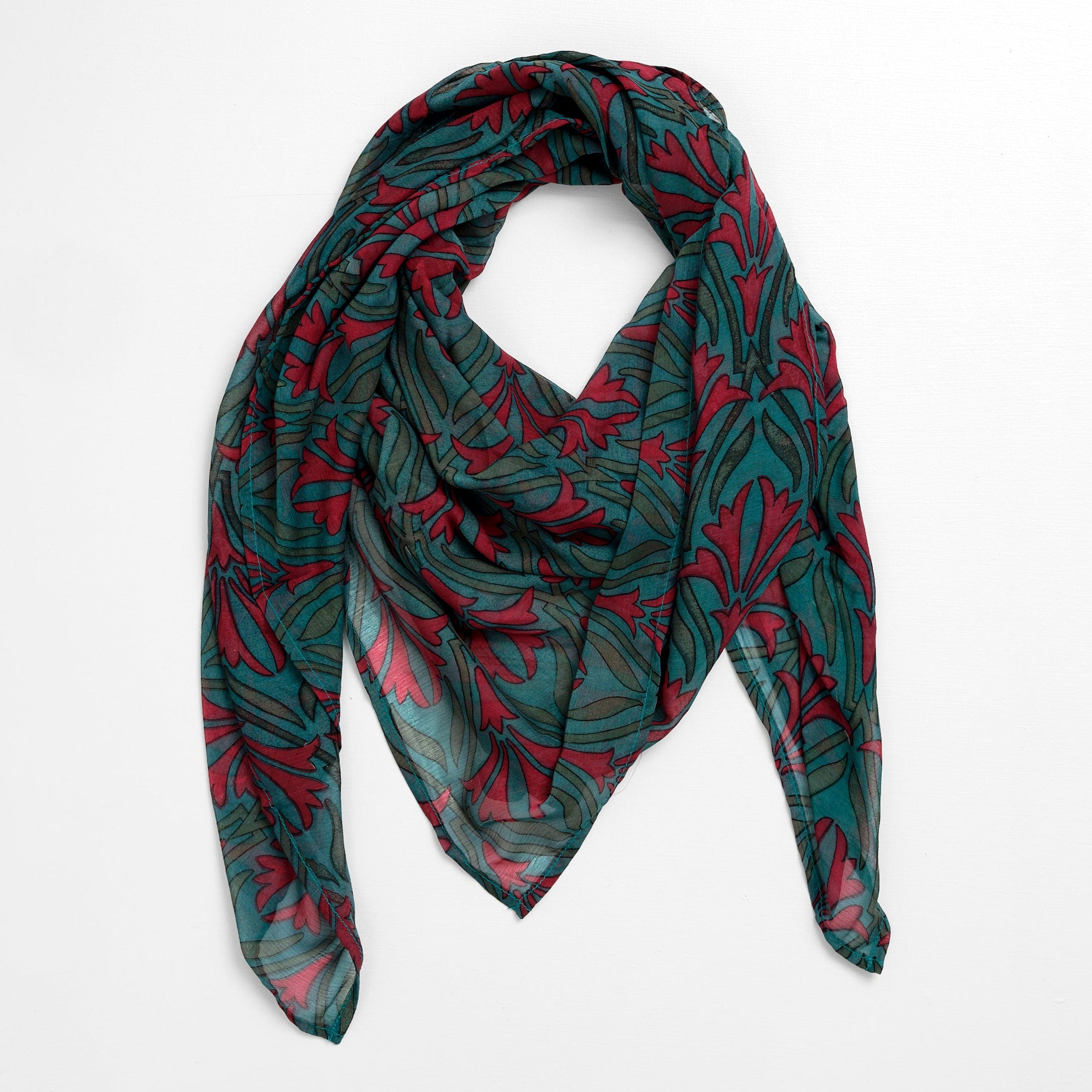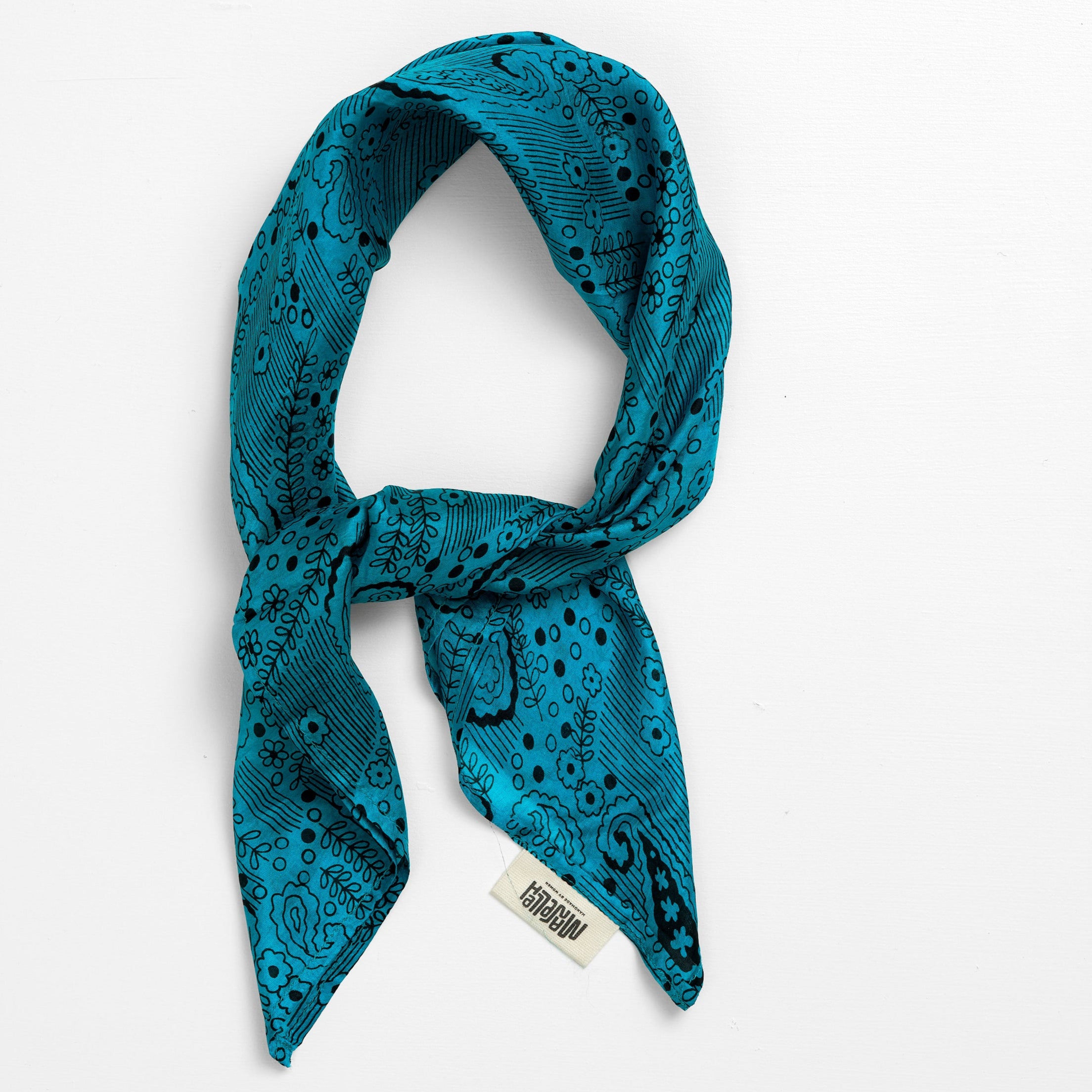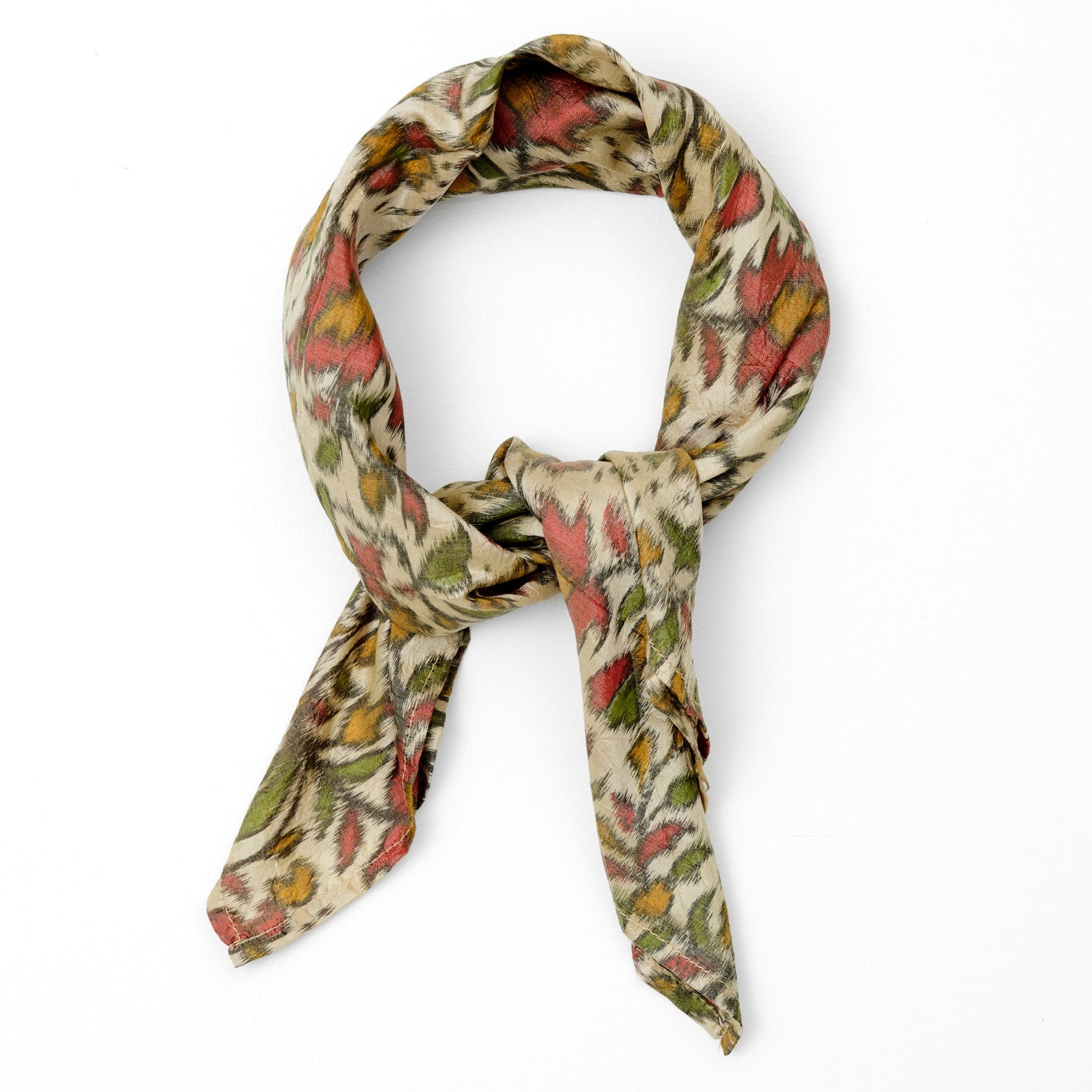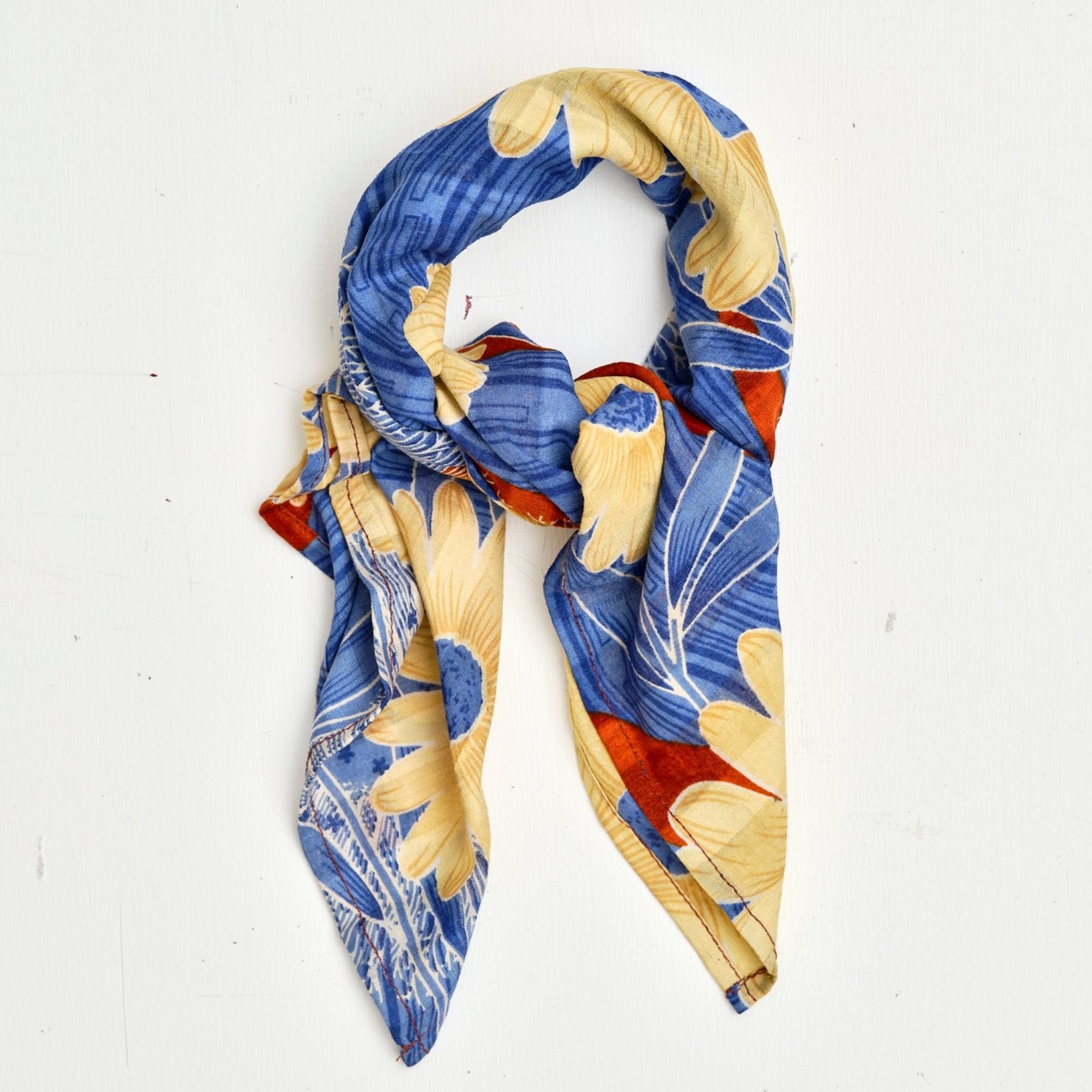 De smukke tørklæder er syet af vintage sarier, nøje udvalgt, istandsat og syet. De findes i bomuld og silke i forskellige størrelser.