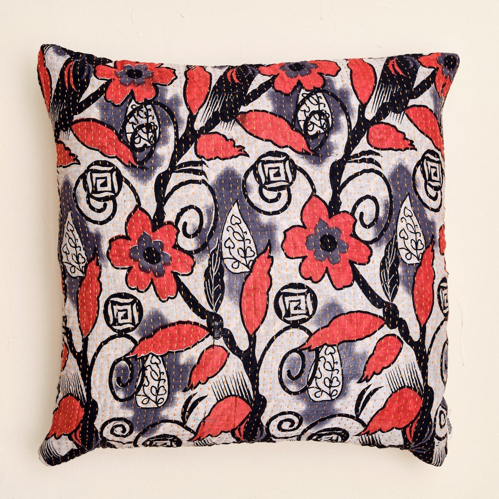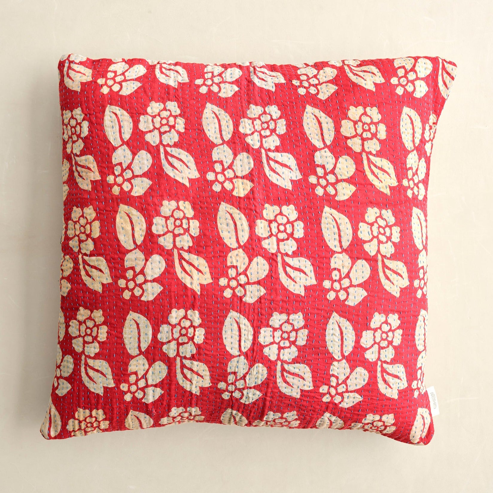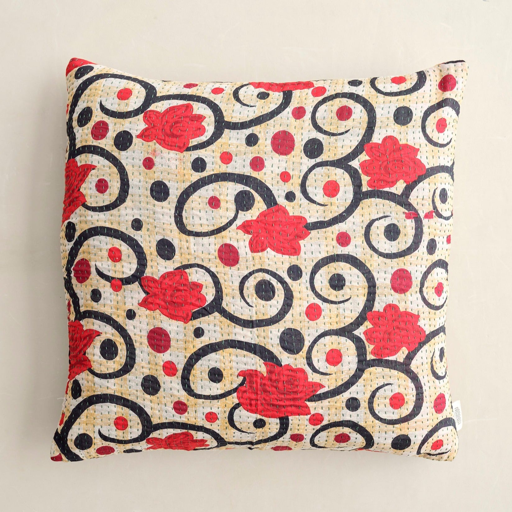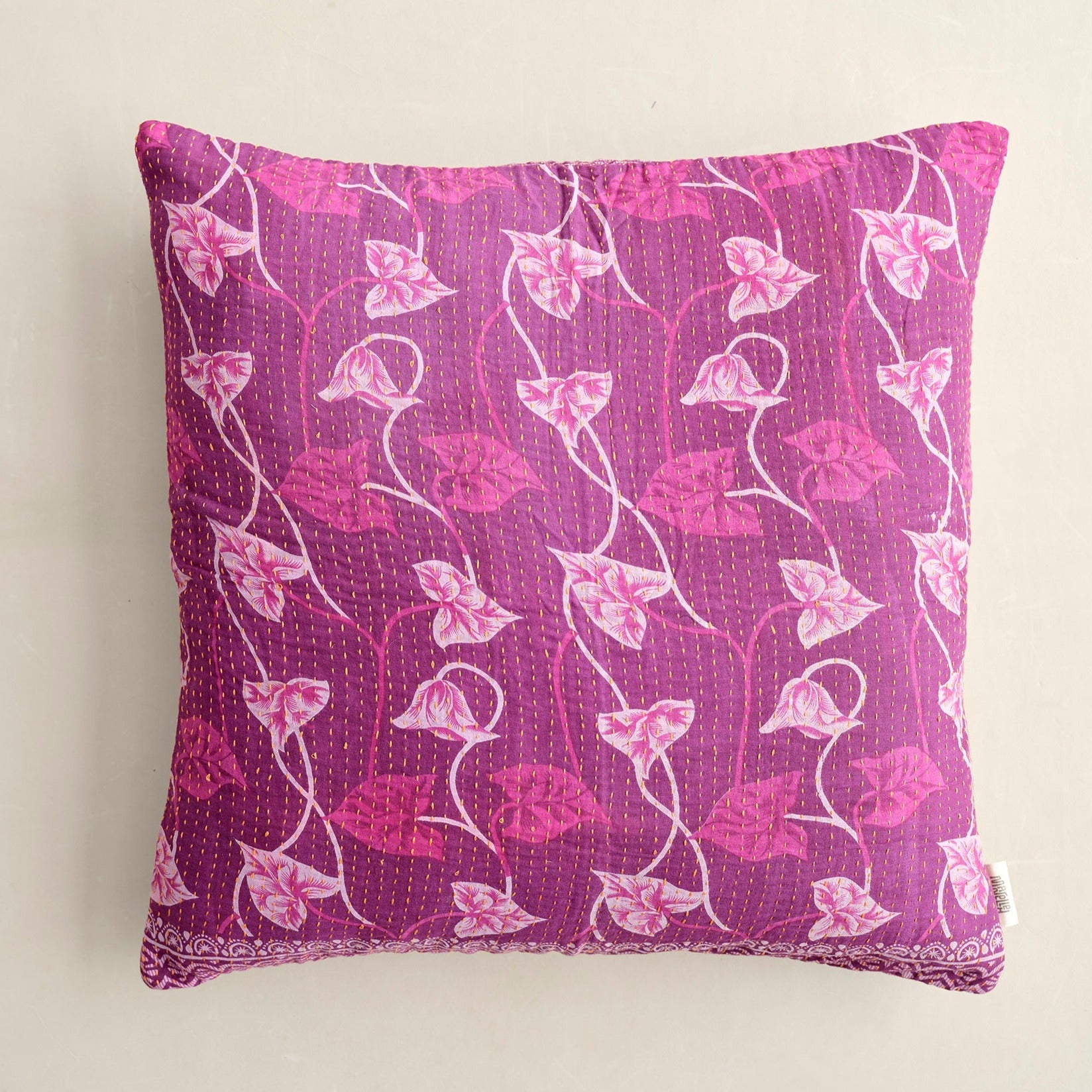 De mange smukke grønne puder er syet med fire lag vintage sarier. De findes i bomuld og silke og er lavet i størrelserne: 30x50 cm, 40x60 cm, 40x40 cm, 50x50 cm og 60x60 cm.