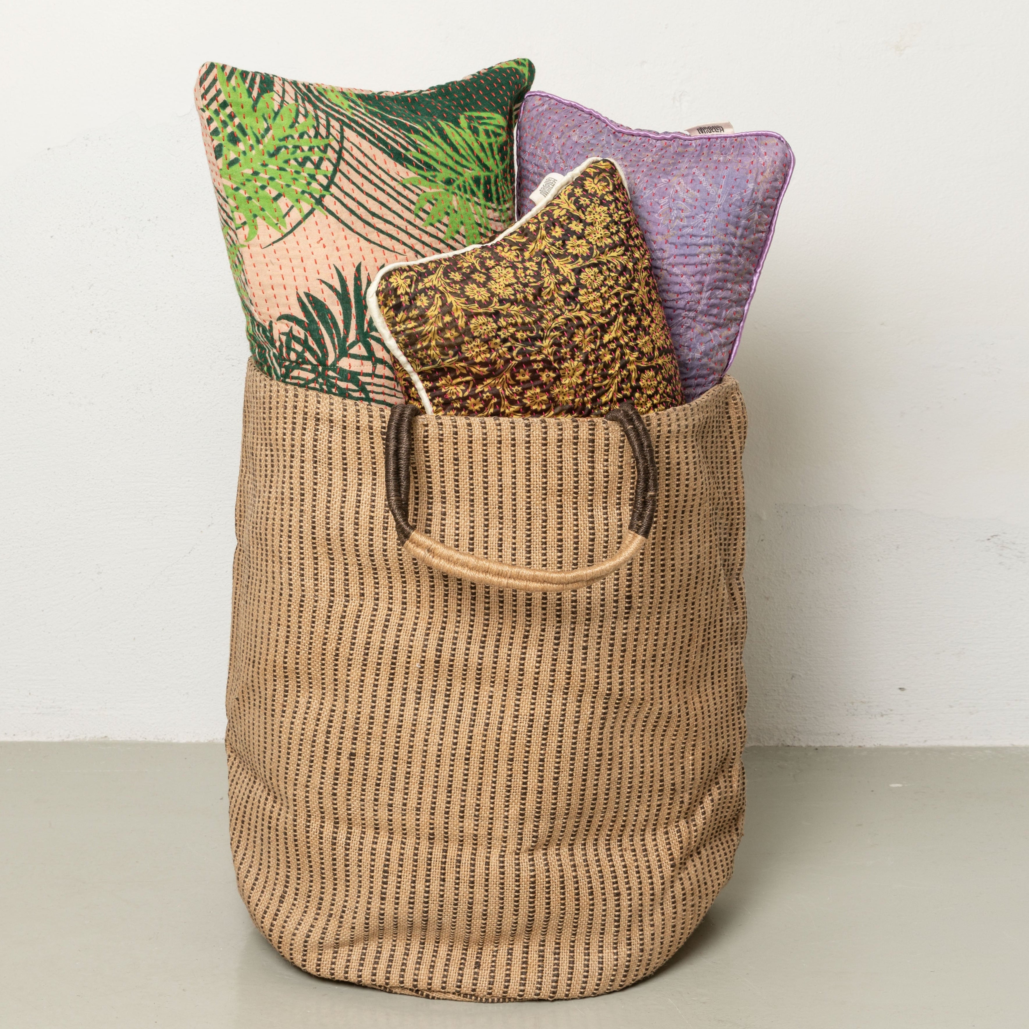De smukke håndlavede kurve er flettet og vævet af jute, som er en naturfiber. Det gælder kurve til opbevaring, potteskjulere og vasketøjskurve.
