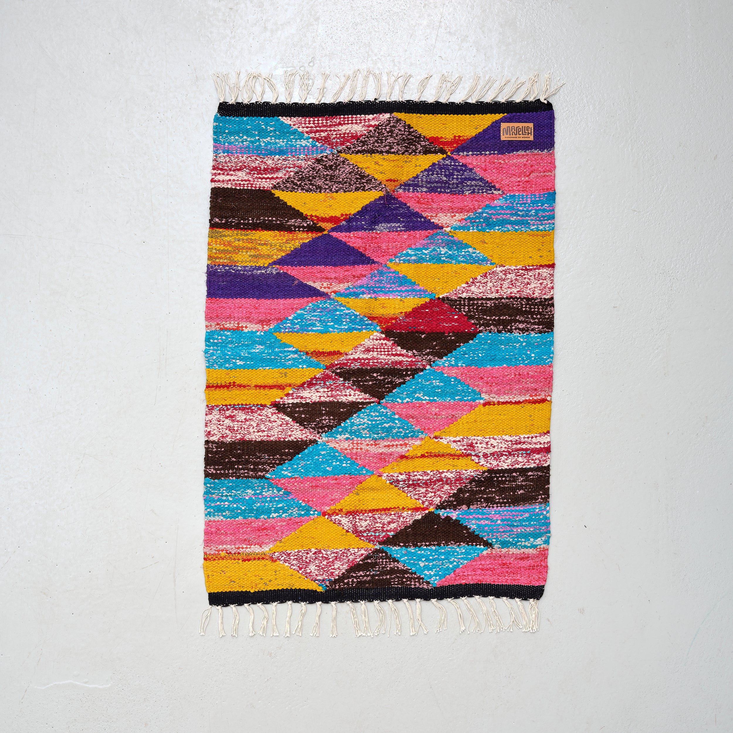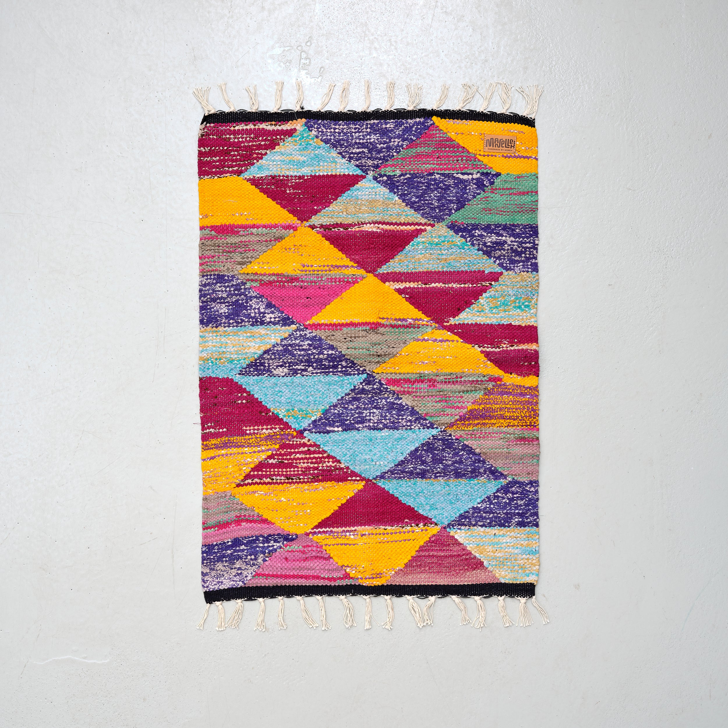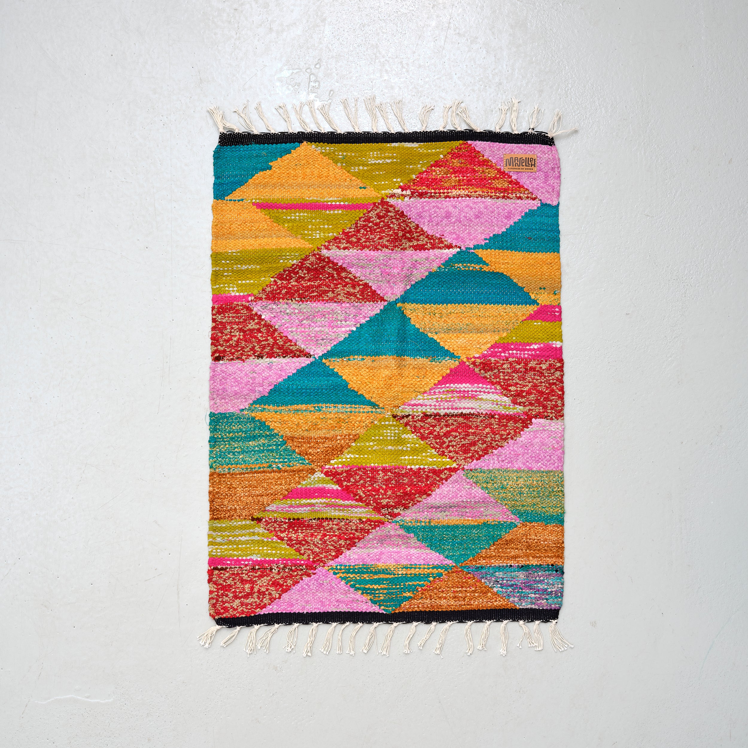 Vores håndvævede gulvtæpper findes i forskellige farver og størrelser. Nogle er lavet af vintage sarier og andre er lavet af jutetråd.