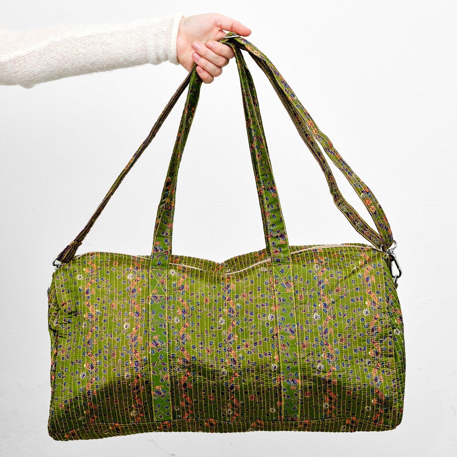 Perfekt til sport eller som weekendtaske. Håndsyet af vintage silke-sarier.