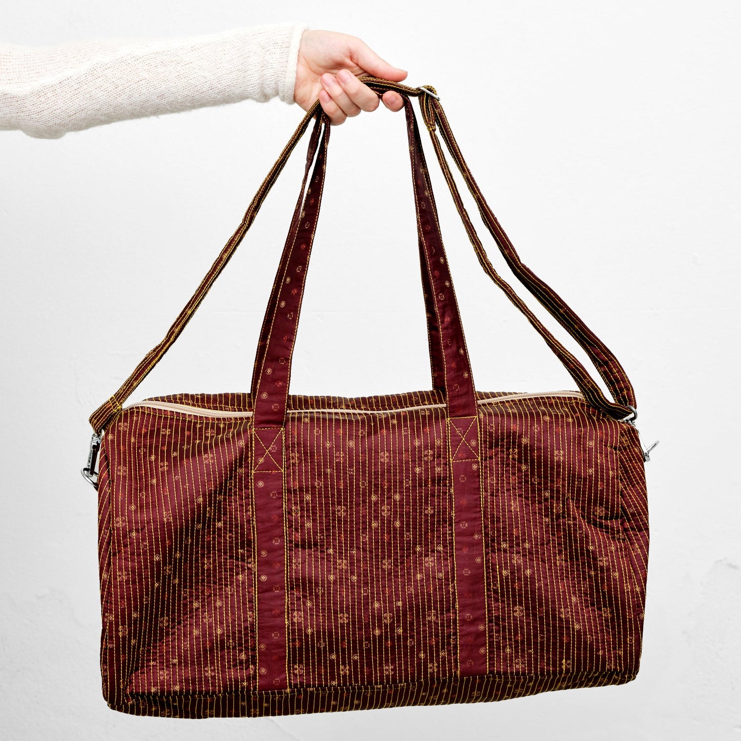 Perfekt til sport eller som weekendtaske. Håndsyet af vintage silke-sarier.