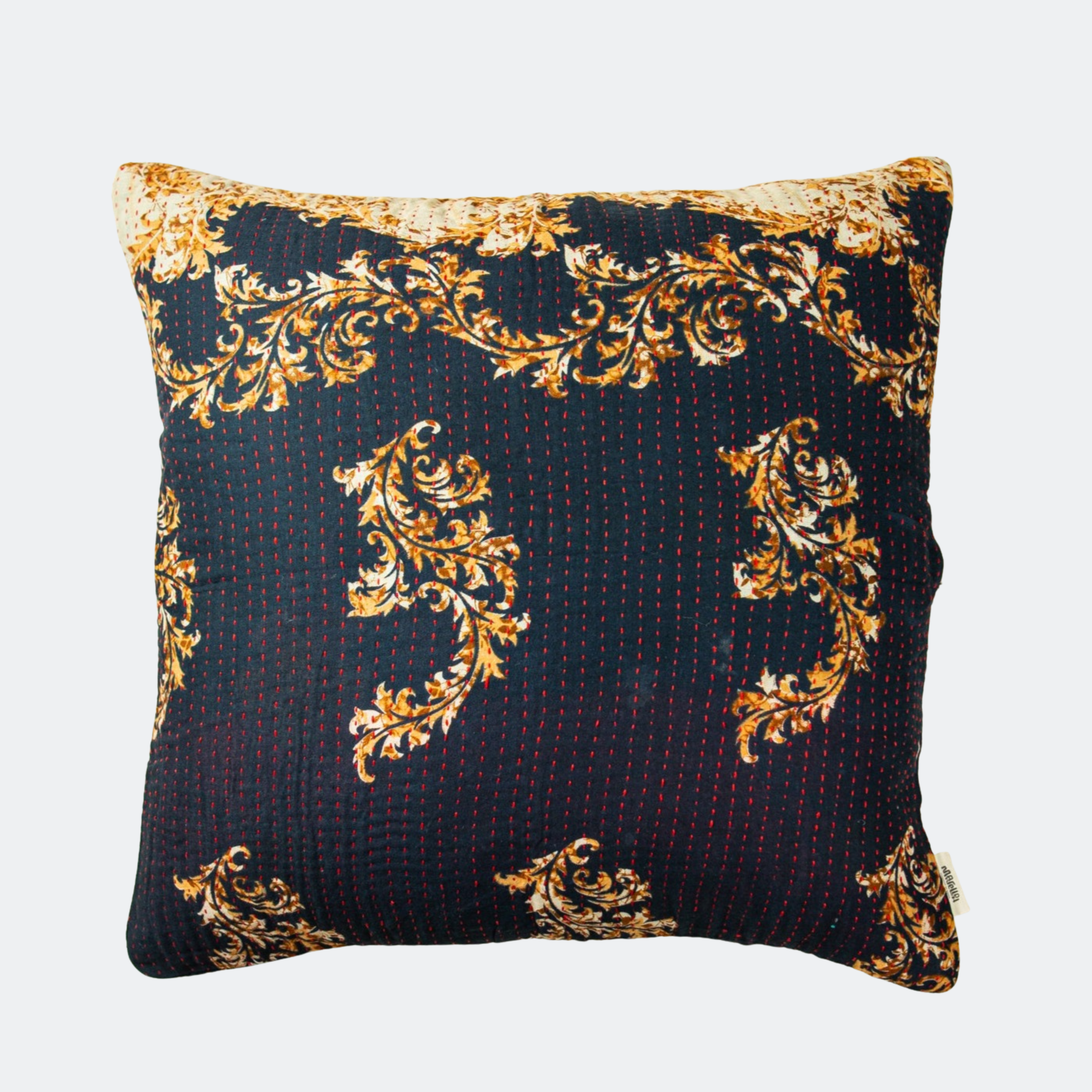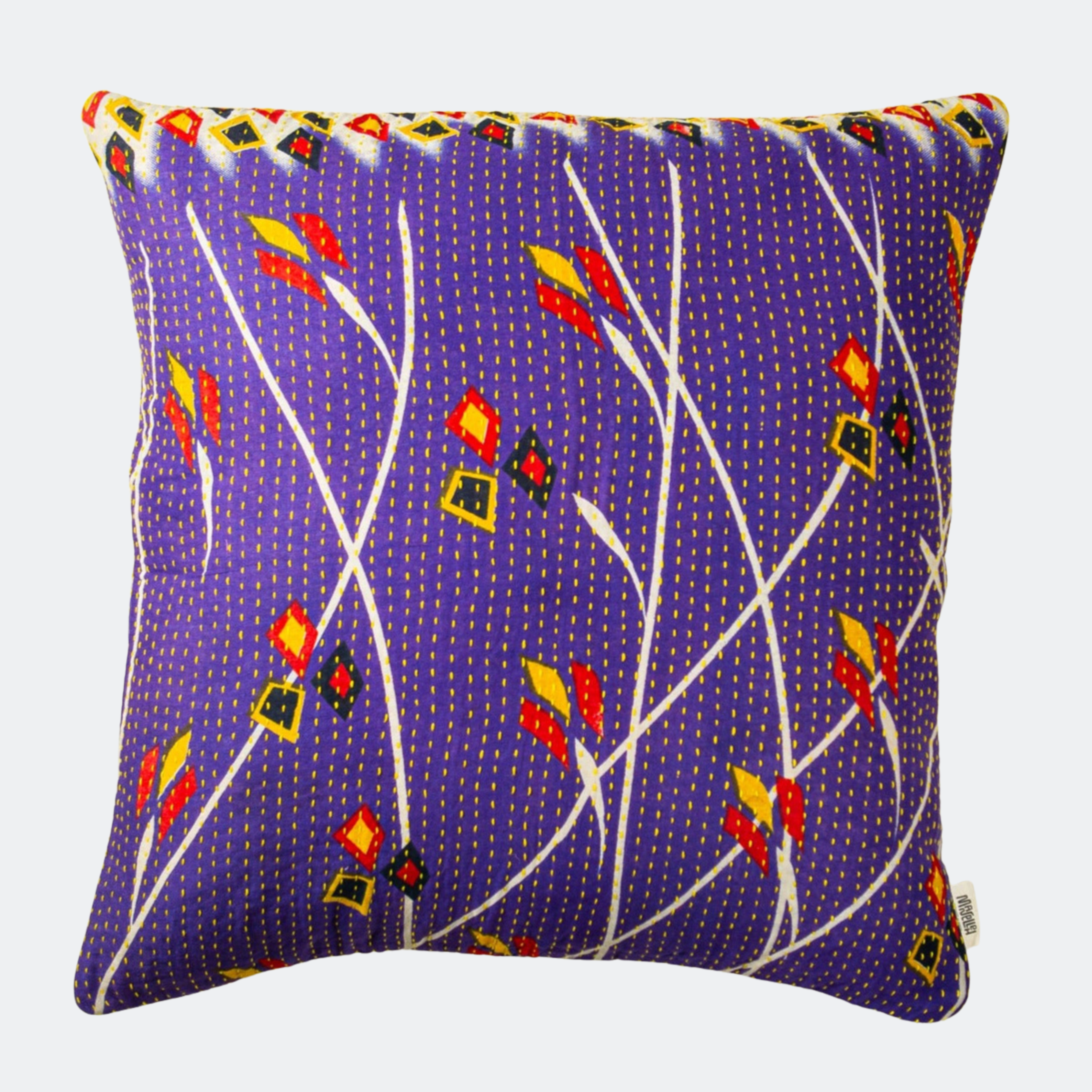 En stor pude måler 60x60 cm, og de mange smukke puder er syet med fire lag vintage sarier. De findes i både bomuld og silke.