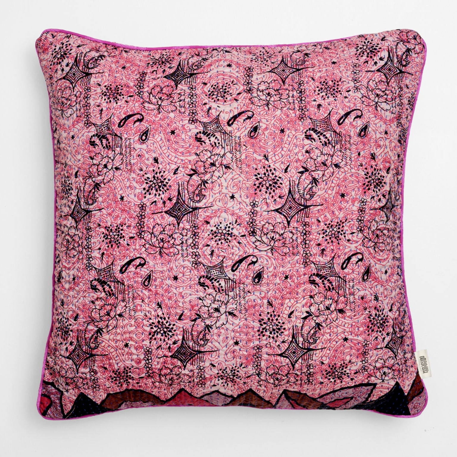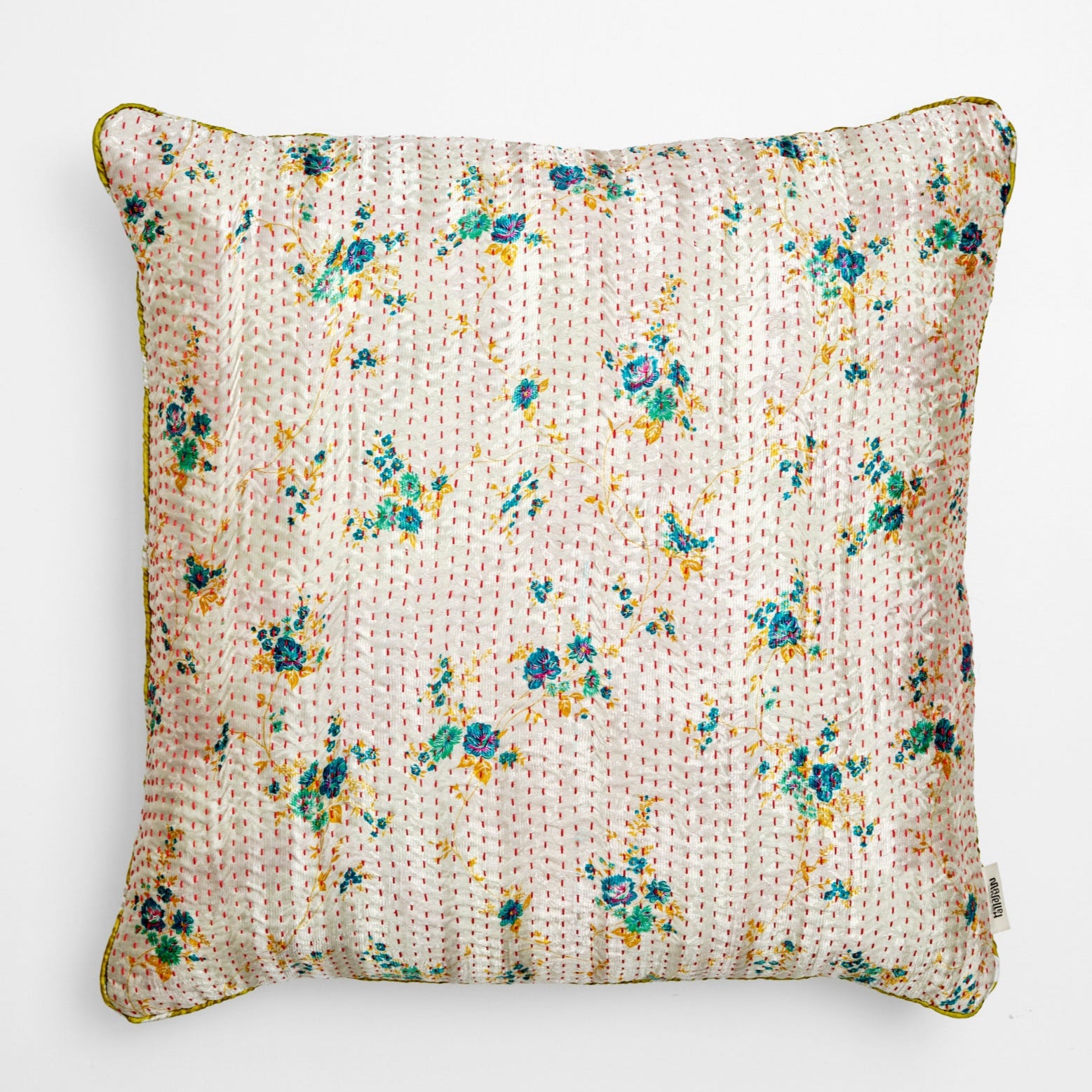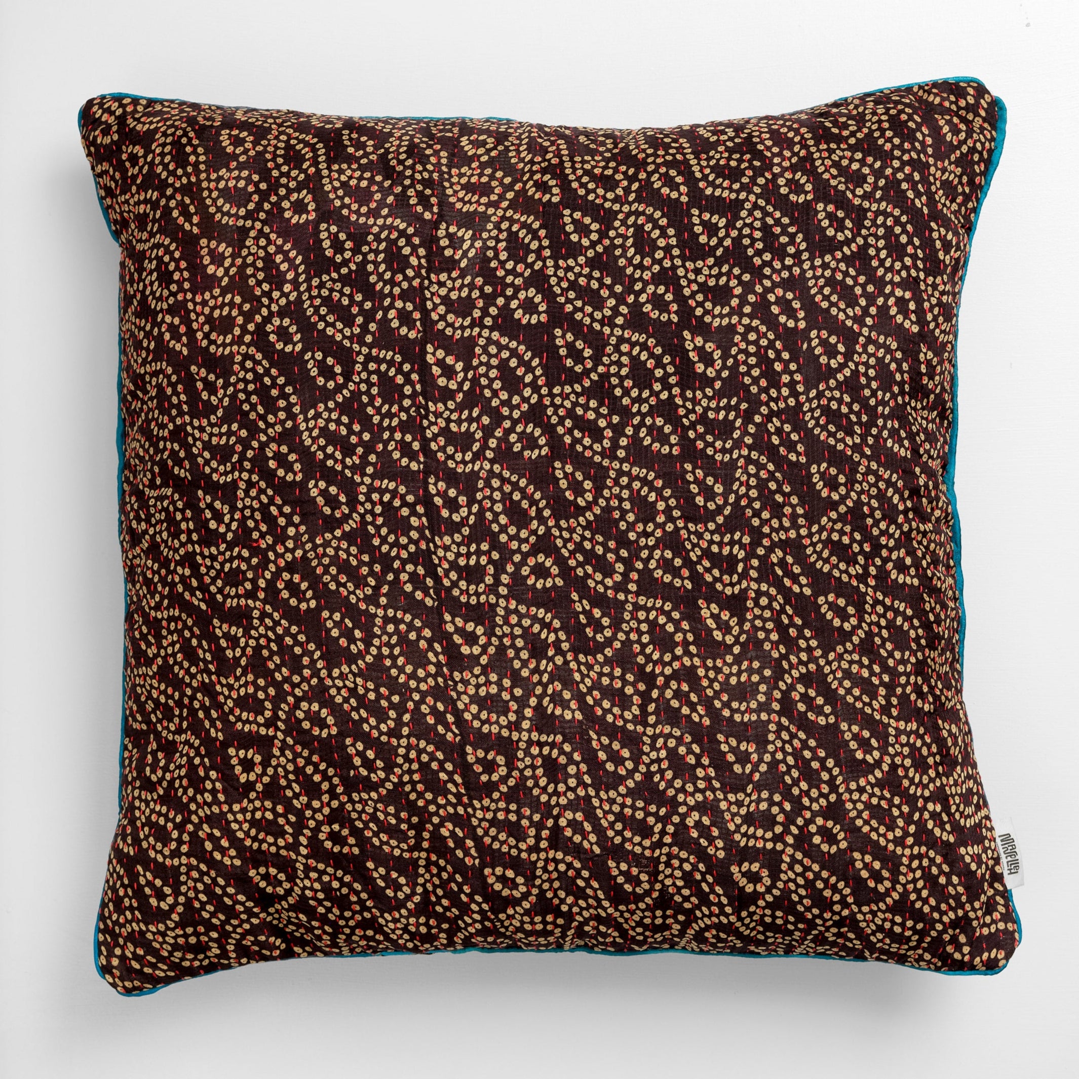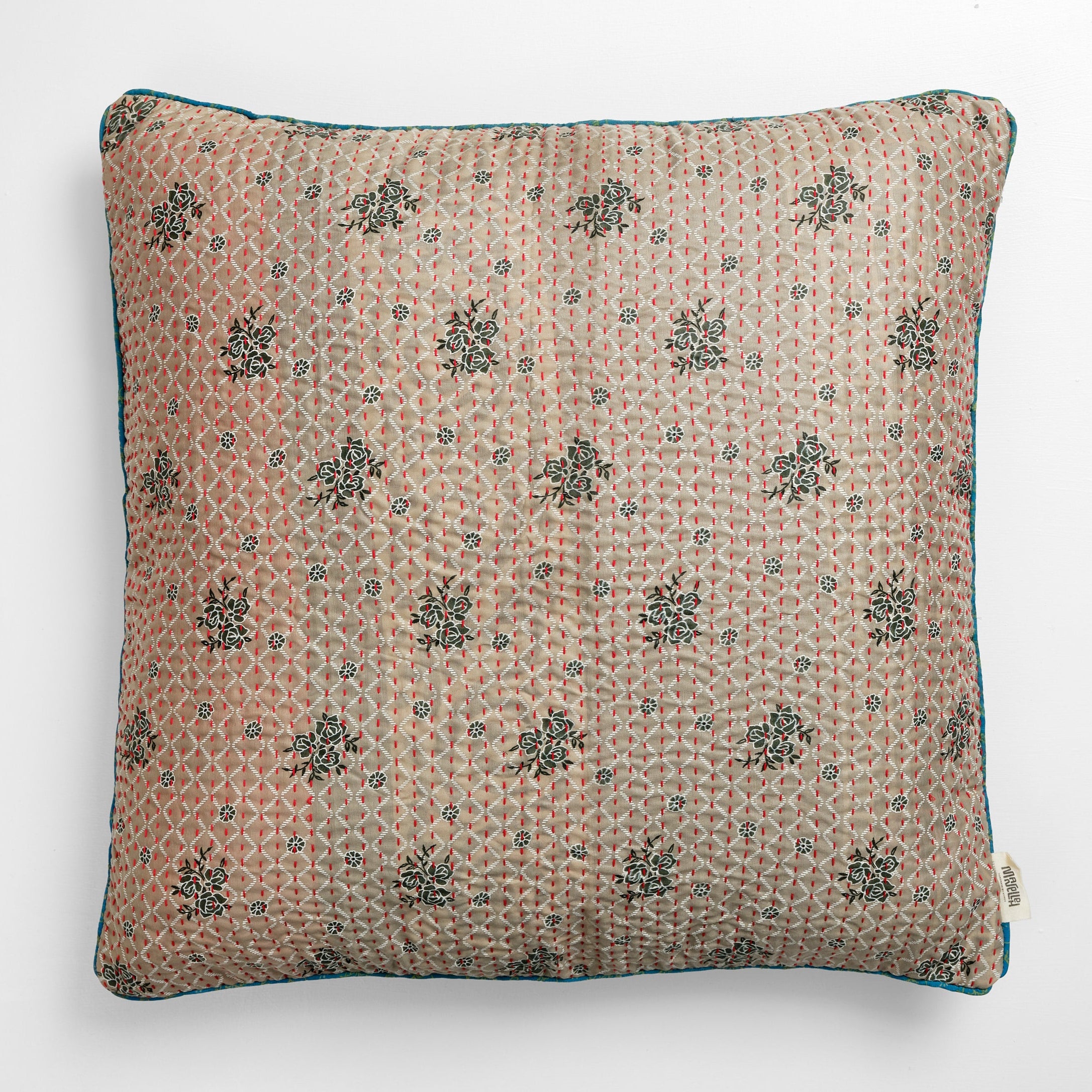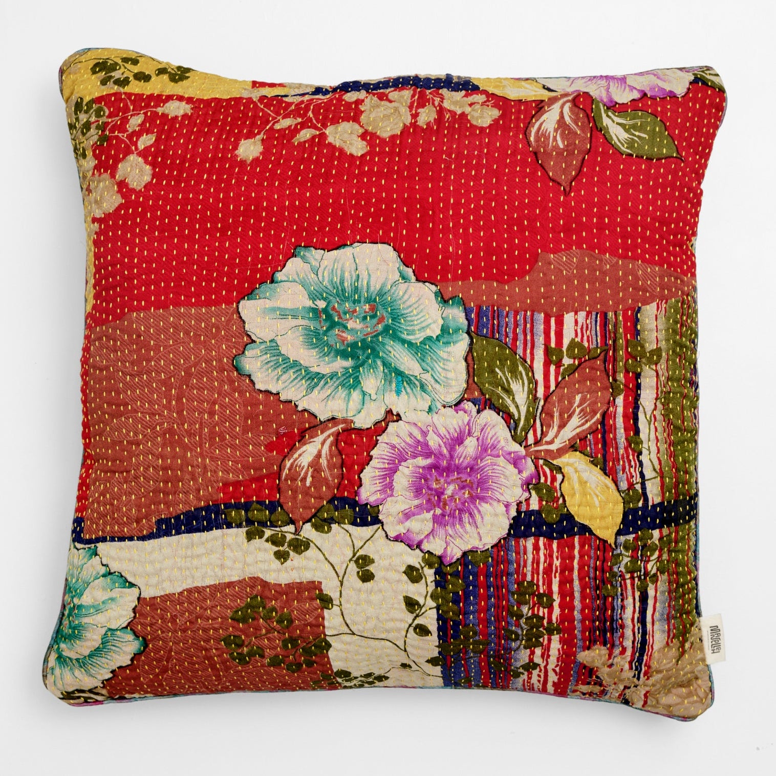 En stor pude måler 60x60 cm, og de mange smukke puder er syet med fire lag vintage sarier. De findes i både bomuld og silke.
