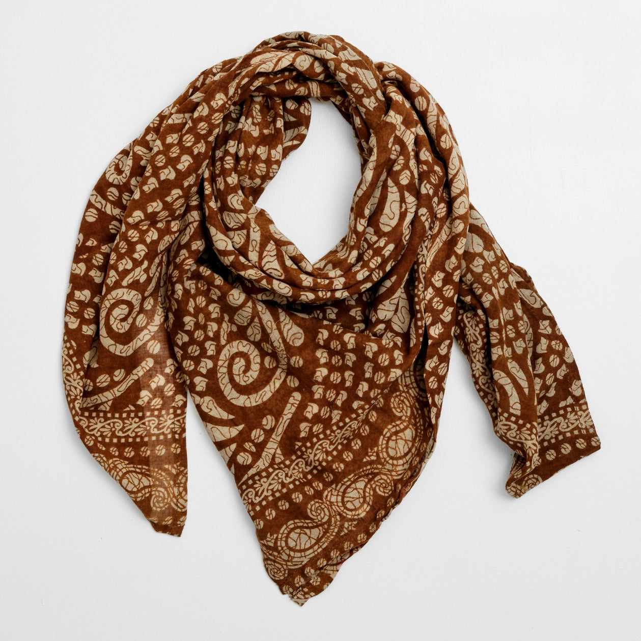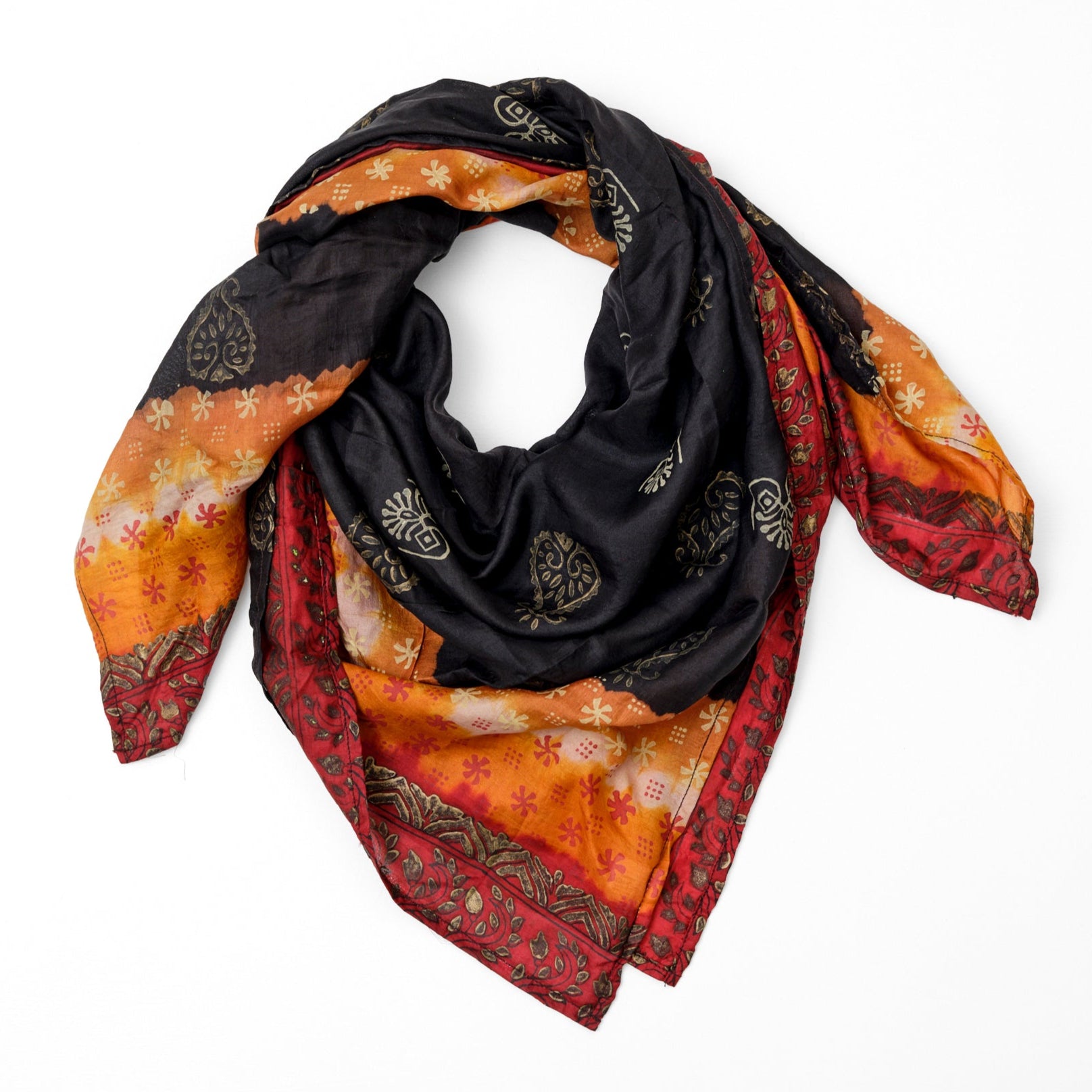 De smukke tørklæder er syet af vintage sarier, nøje udvalgt, istandsat og syet. De findes i bomuld og silke i forskellige størrelser.