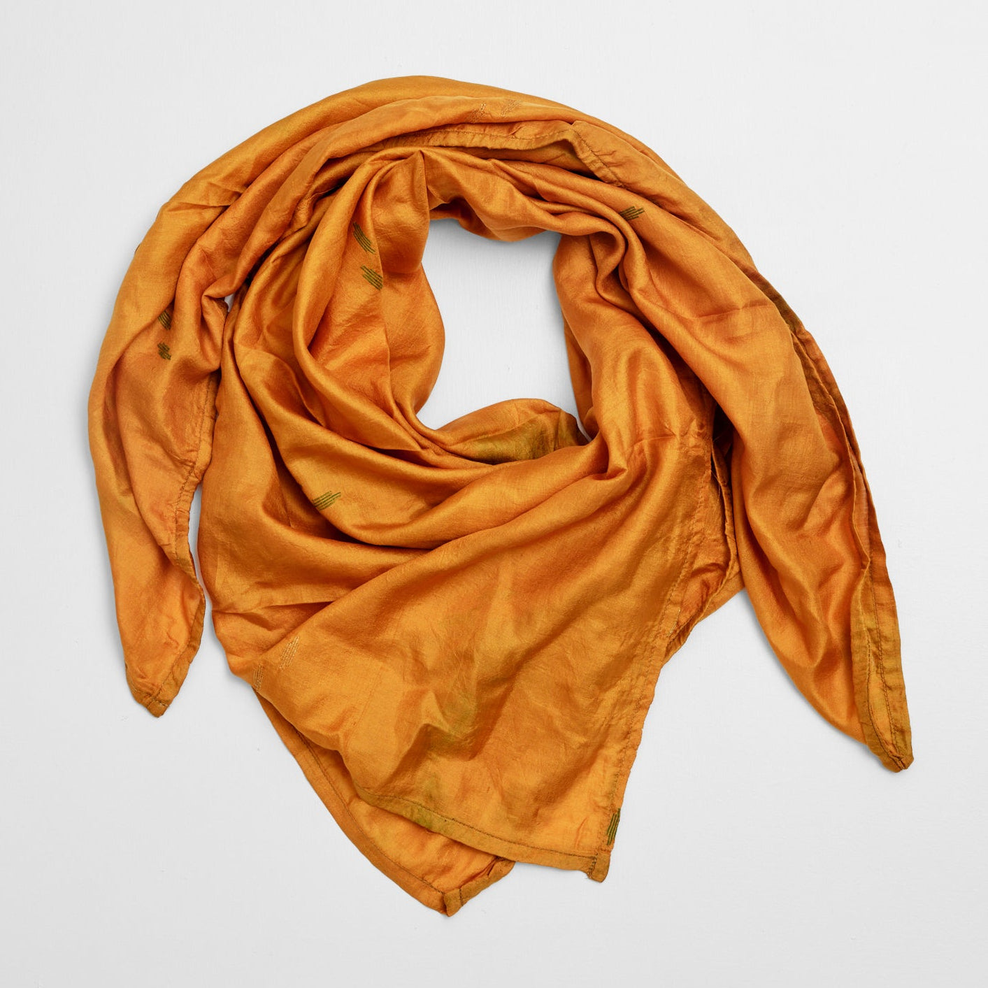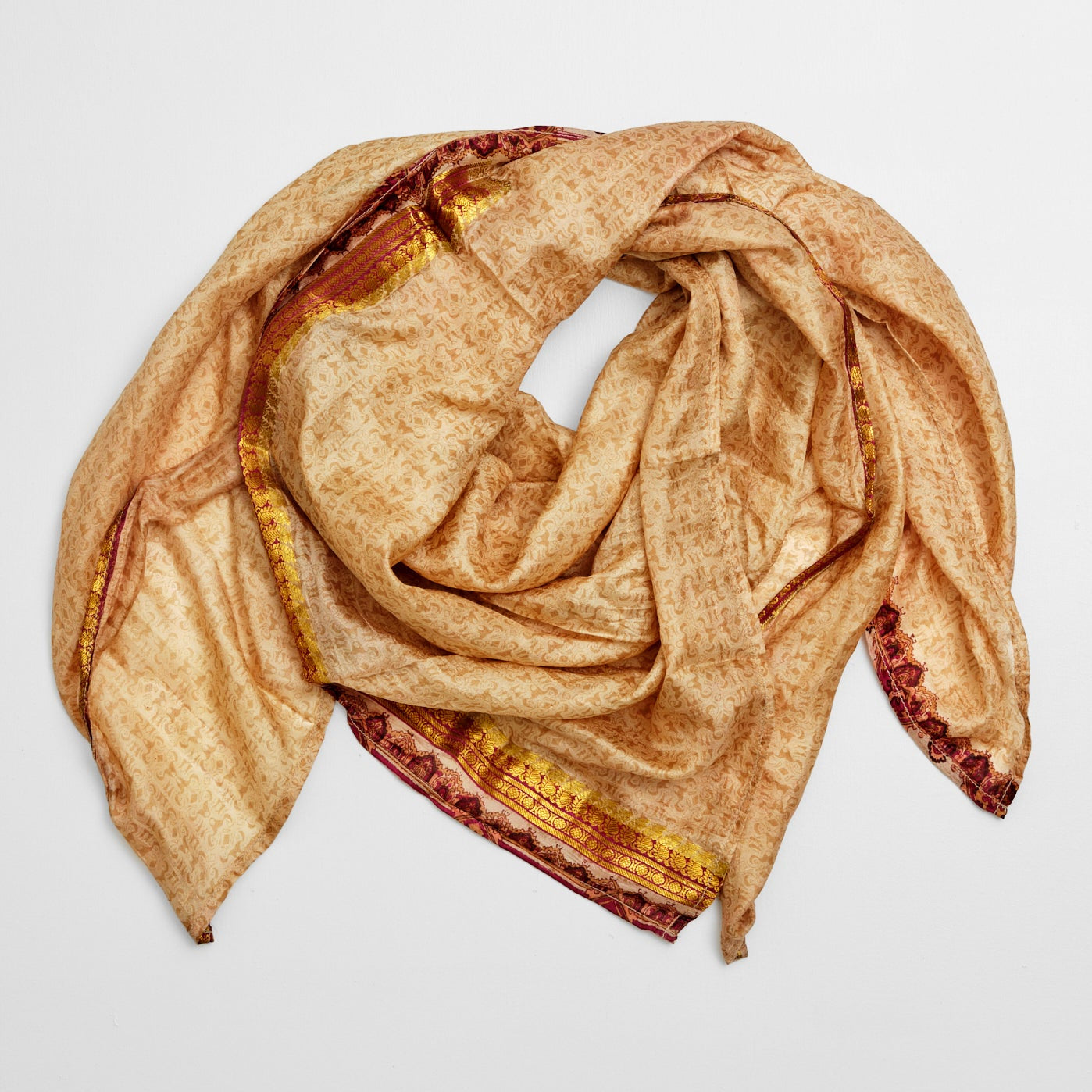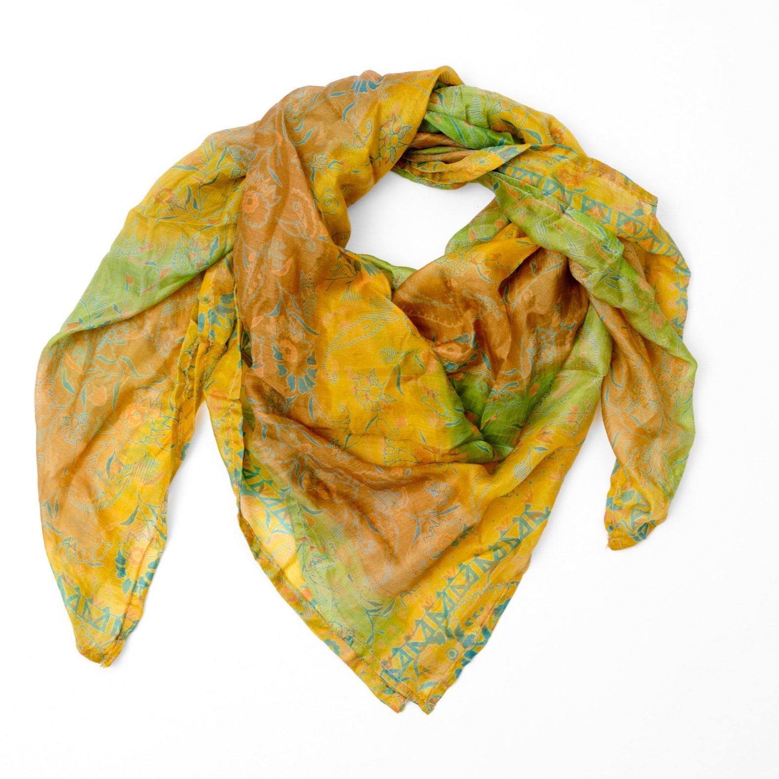 De smukke tørklæder er syet af vintage sarier, nøje udvalgt, istandsat og syet. De findes i bomuld og silke i forskellige størrelser.