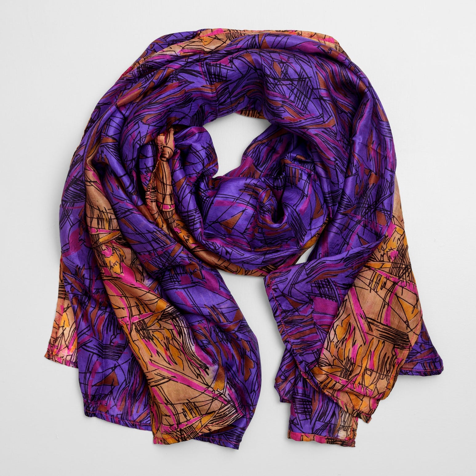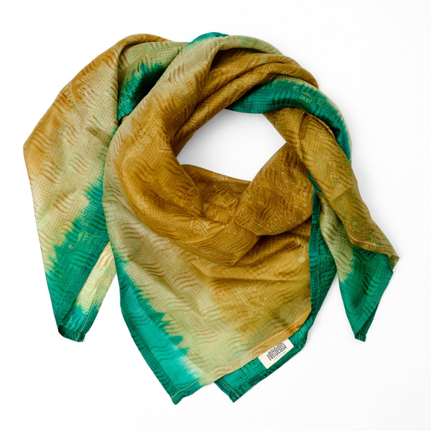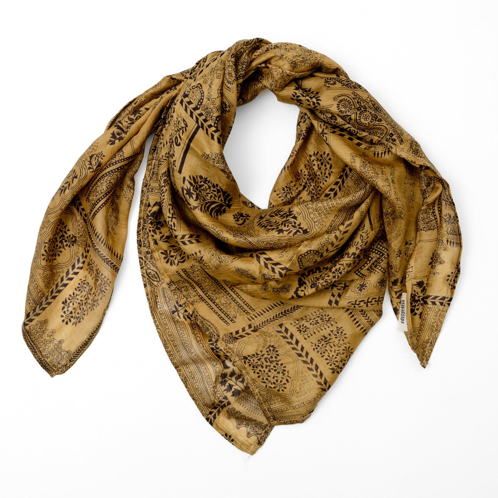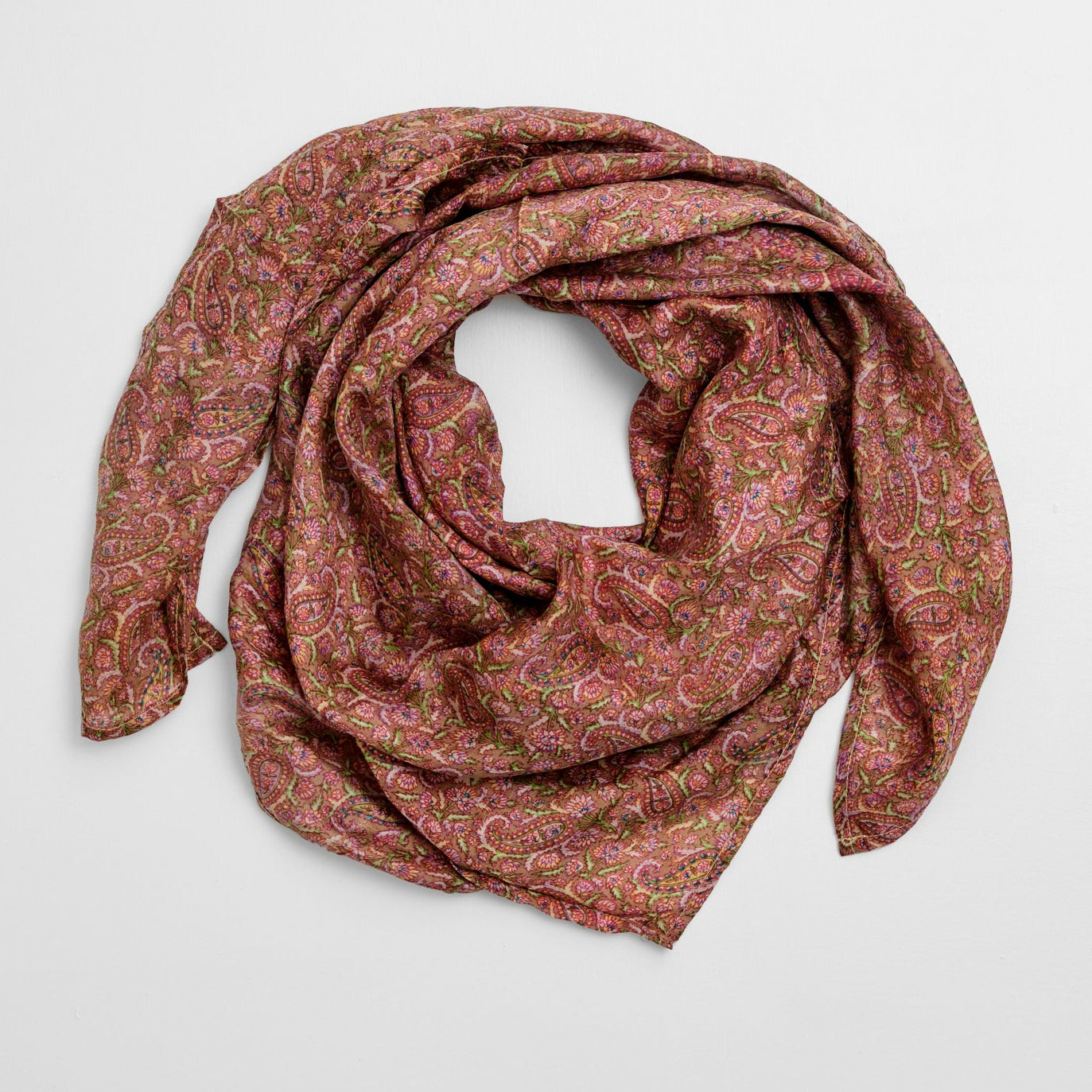 De smukke tørklæder er syet af vintage sarier, nøje udvalgt, istandsat og syet. De findes i bomuld og silke i forskellige størrelser.