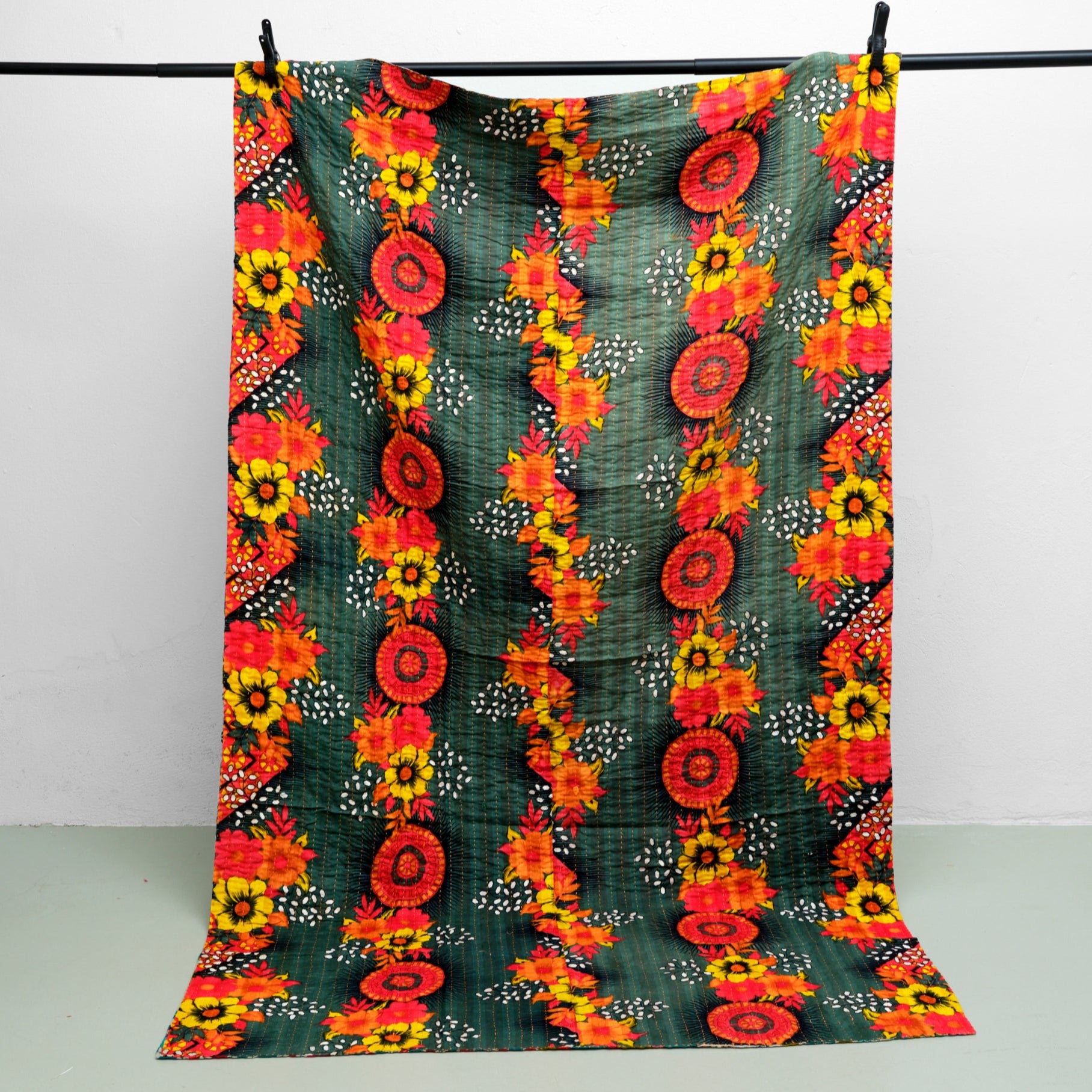 Kantha tæpperne er syet med fire lag vintage bomulds-sarier, og findes i forskellige størrelser.