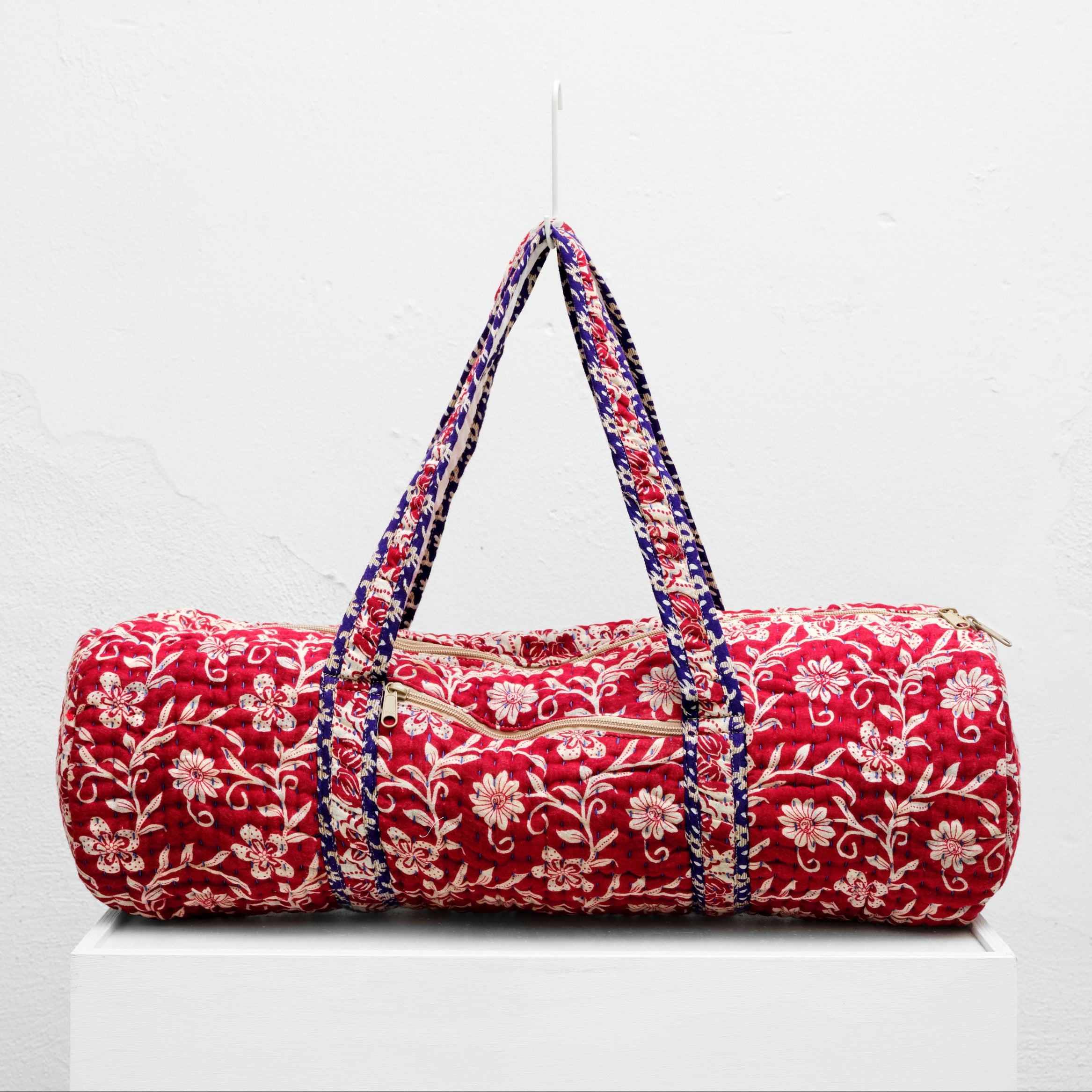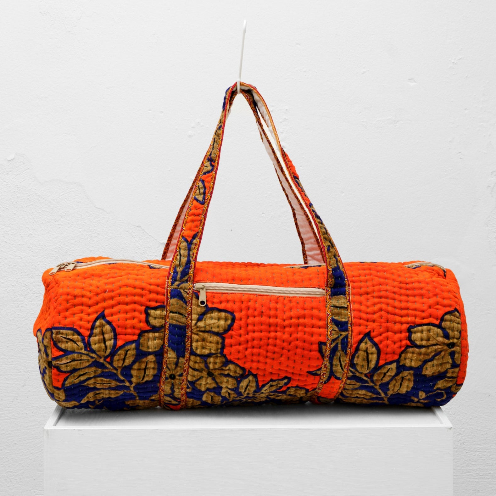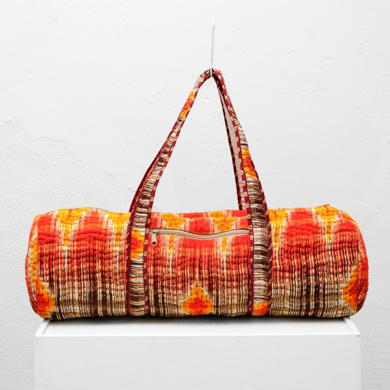 Vores yogatasker er lavet af håndvævet jutestof og kan rumme både yogamåtte og -tæppe. Den har justerbar hank og lommer ude og inde.