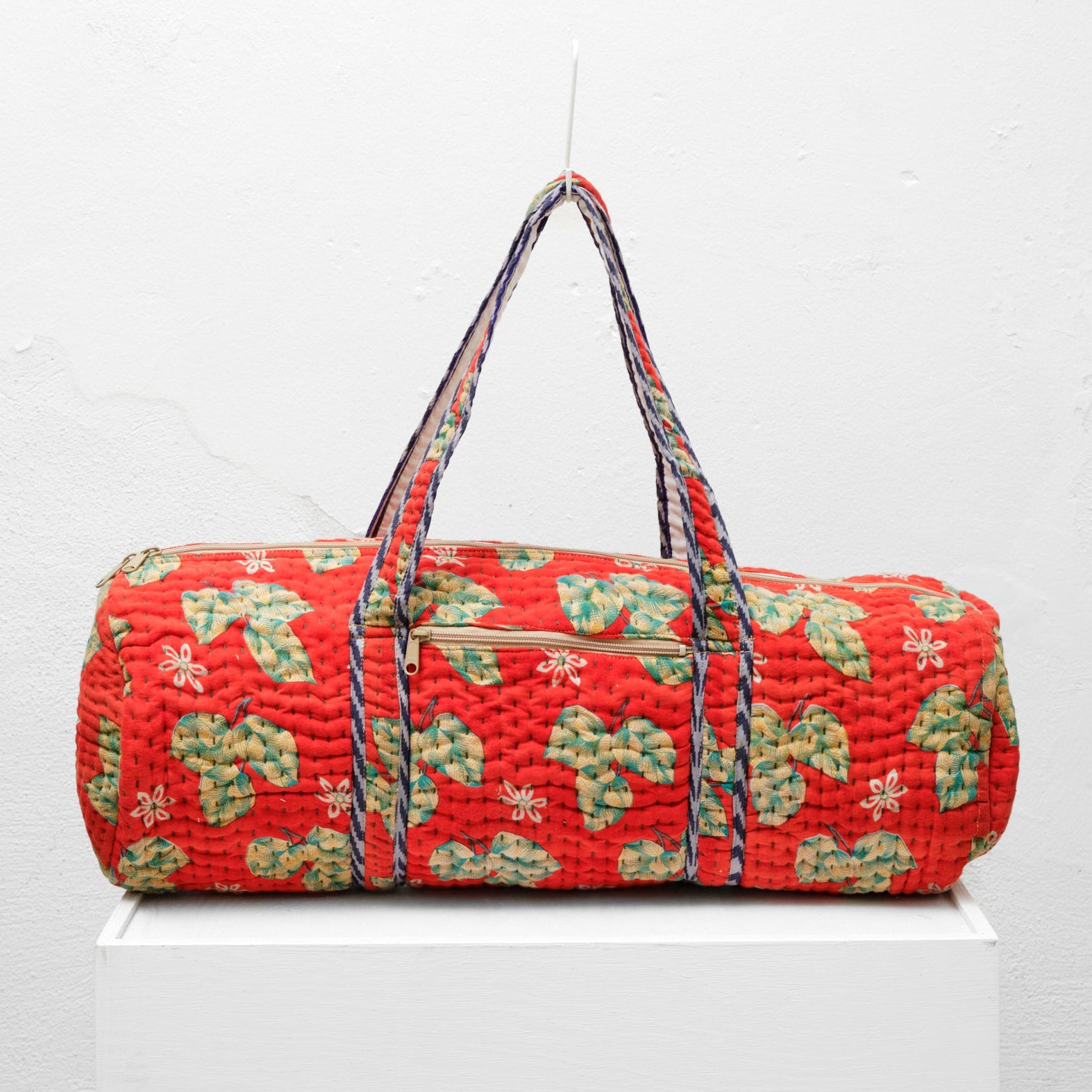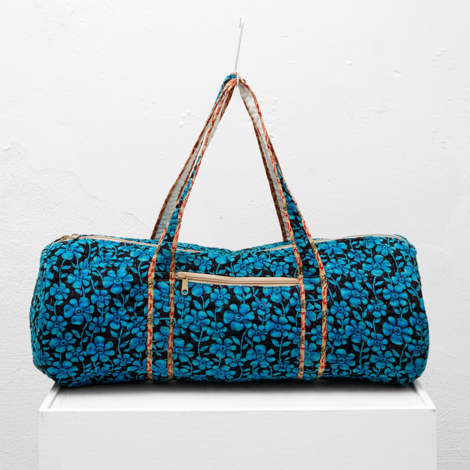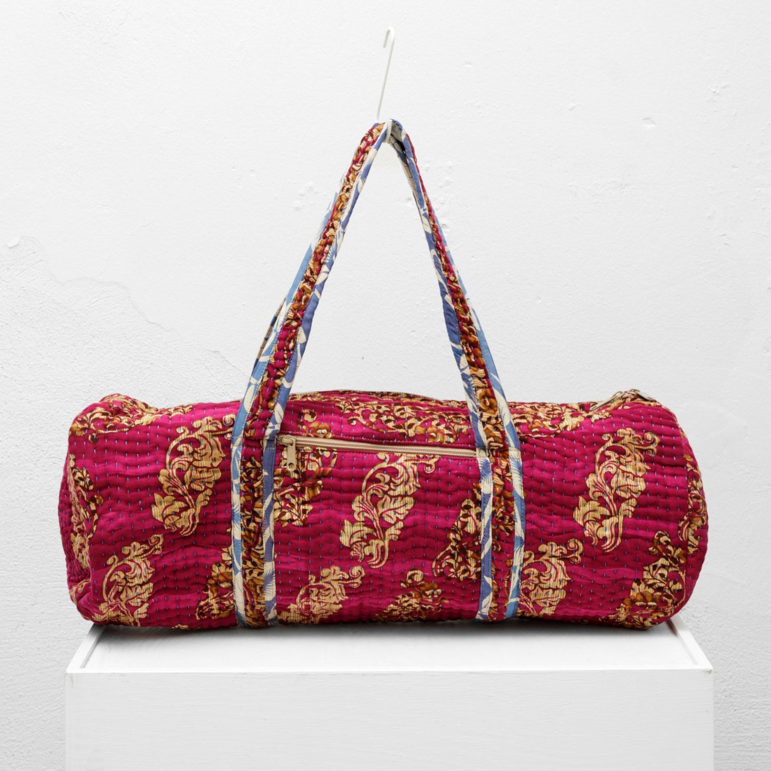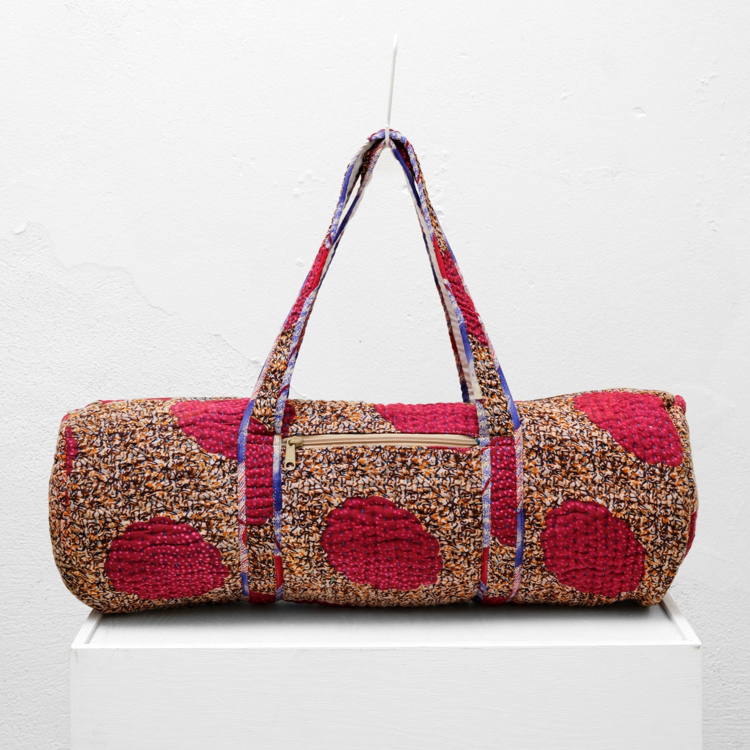 Vores yogatasker er lavet af håndvævet jutestof og kan rumme både yogamåtte og -tæppe. Den har justerbar hank og lommer ude og inde.