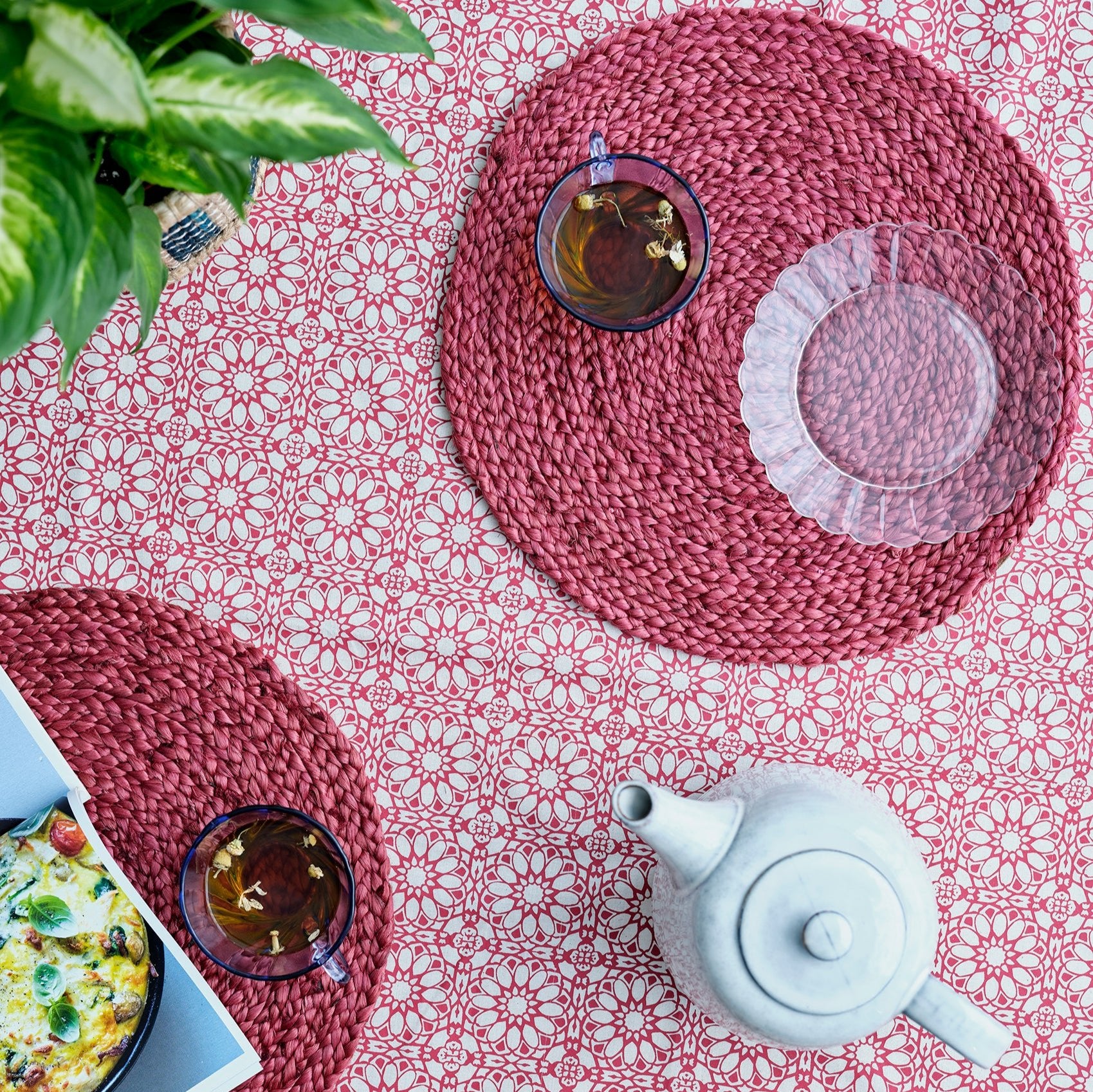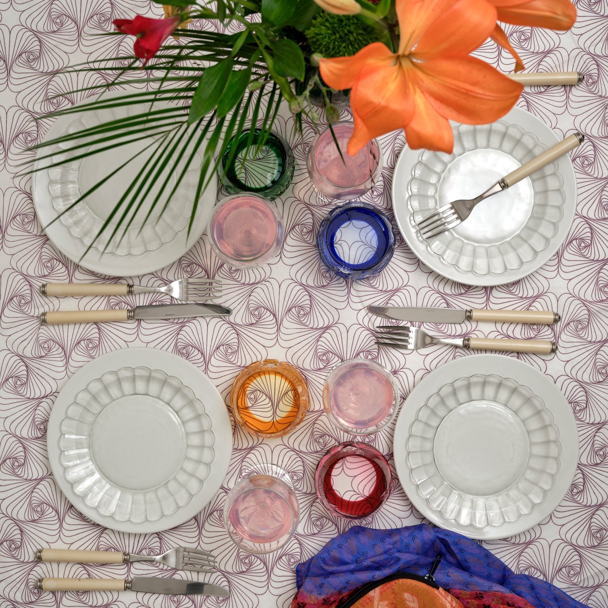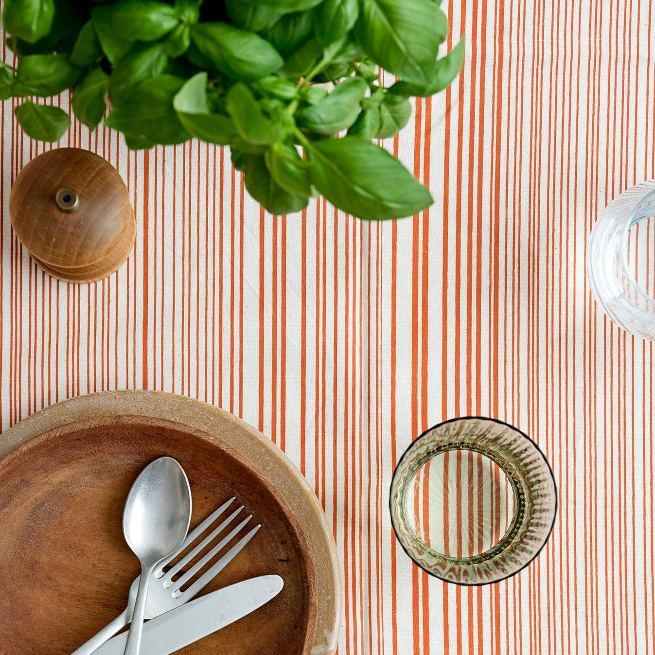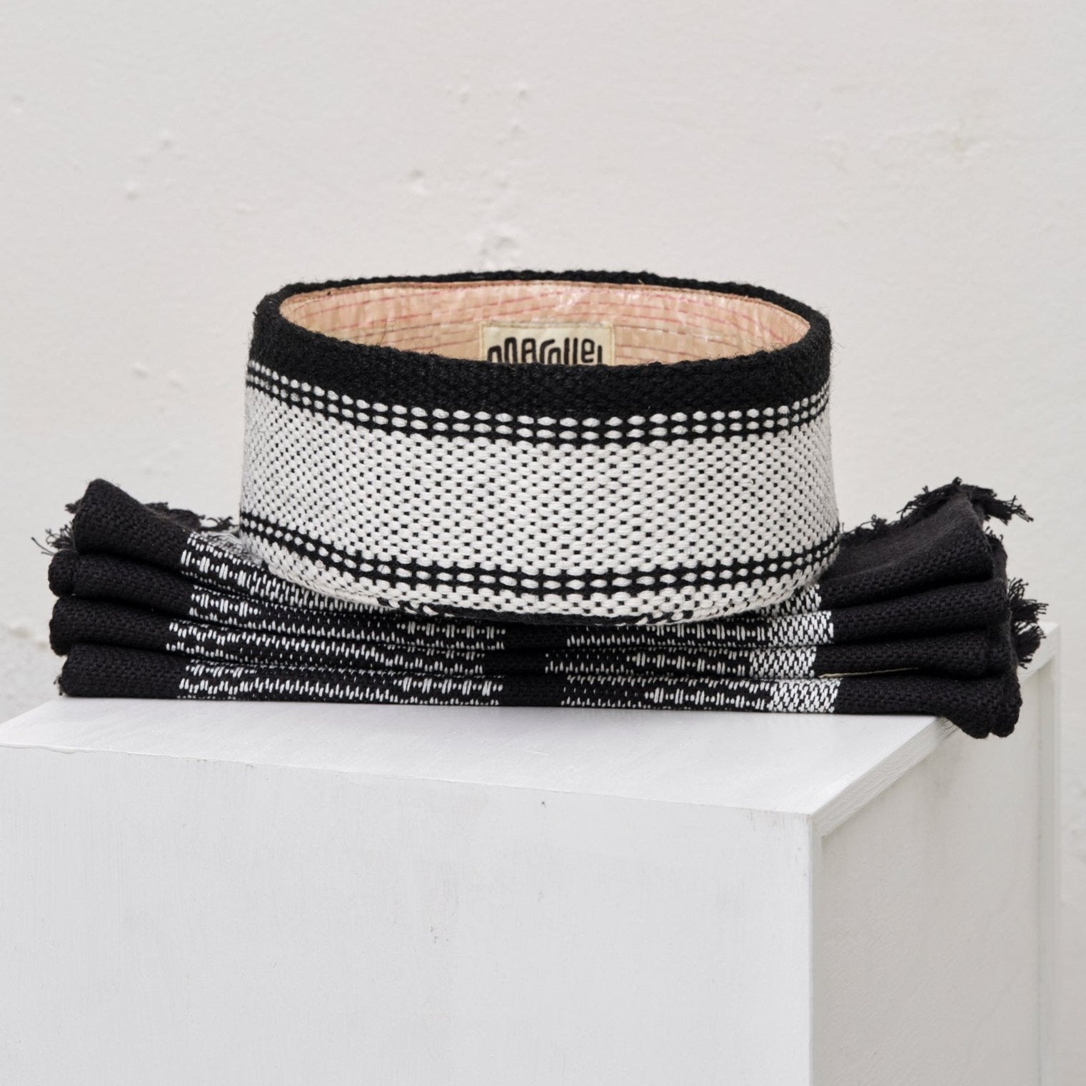 The collection includes, among other things, tablecloths and napkins in GOTS certified organic cotton, round jute placemats and tea caps made from vintage saris.
