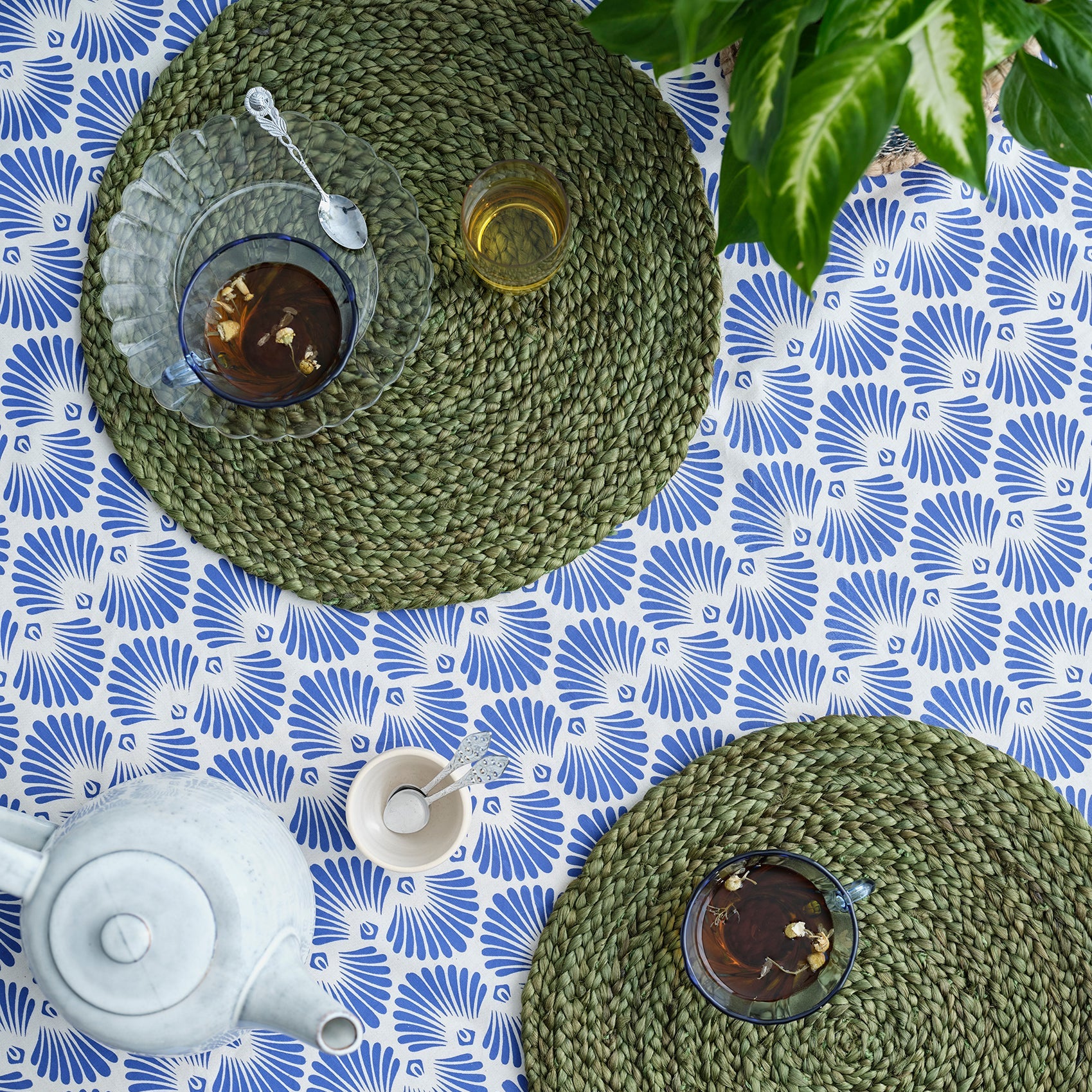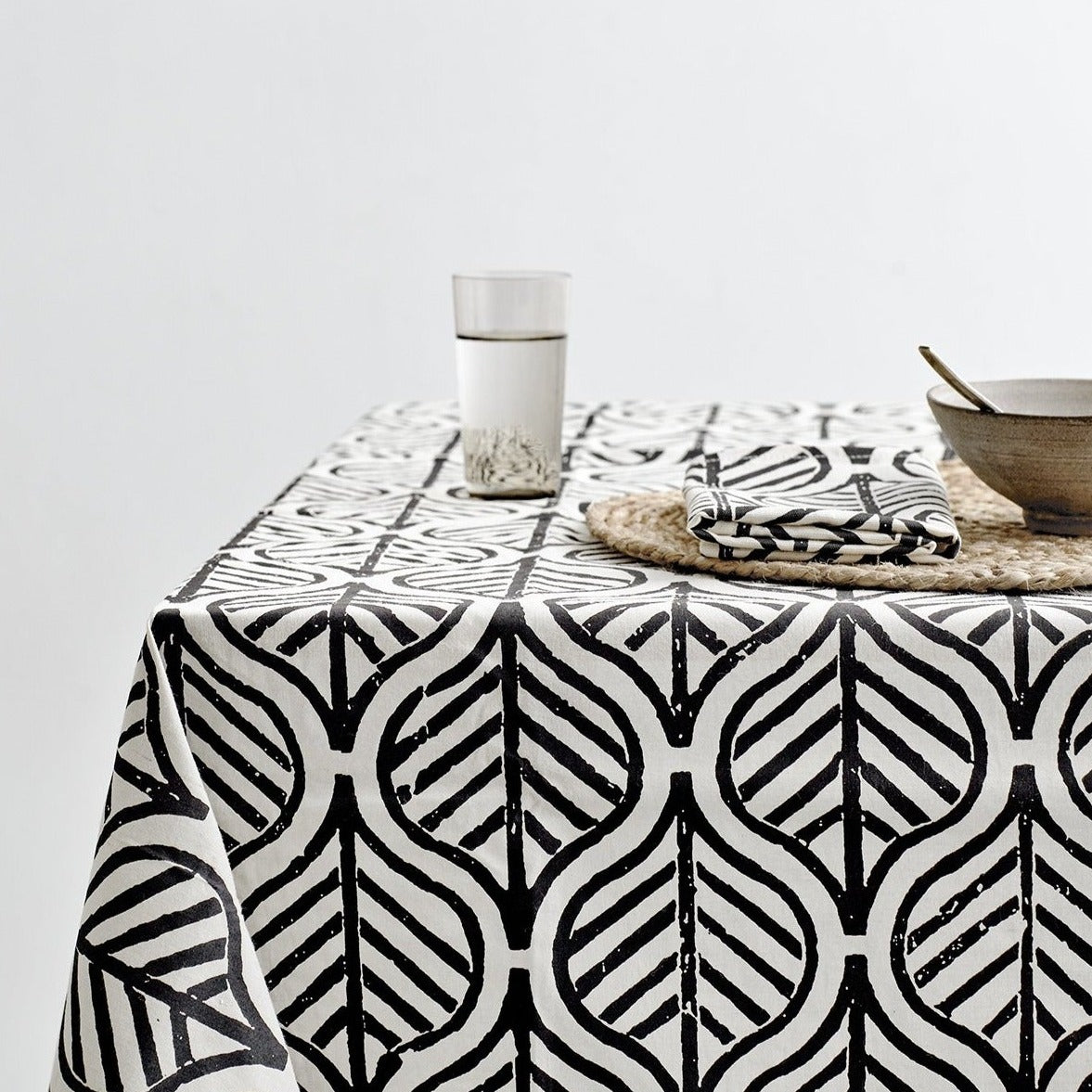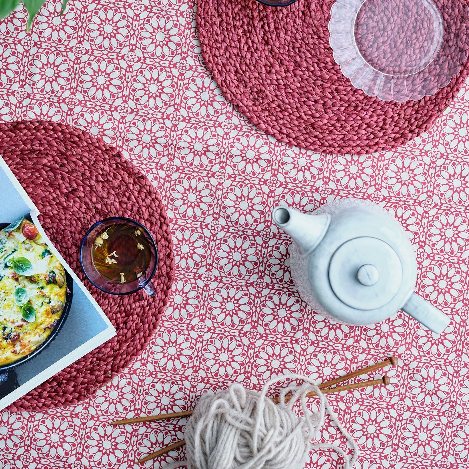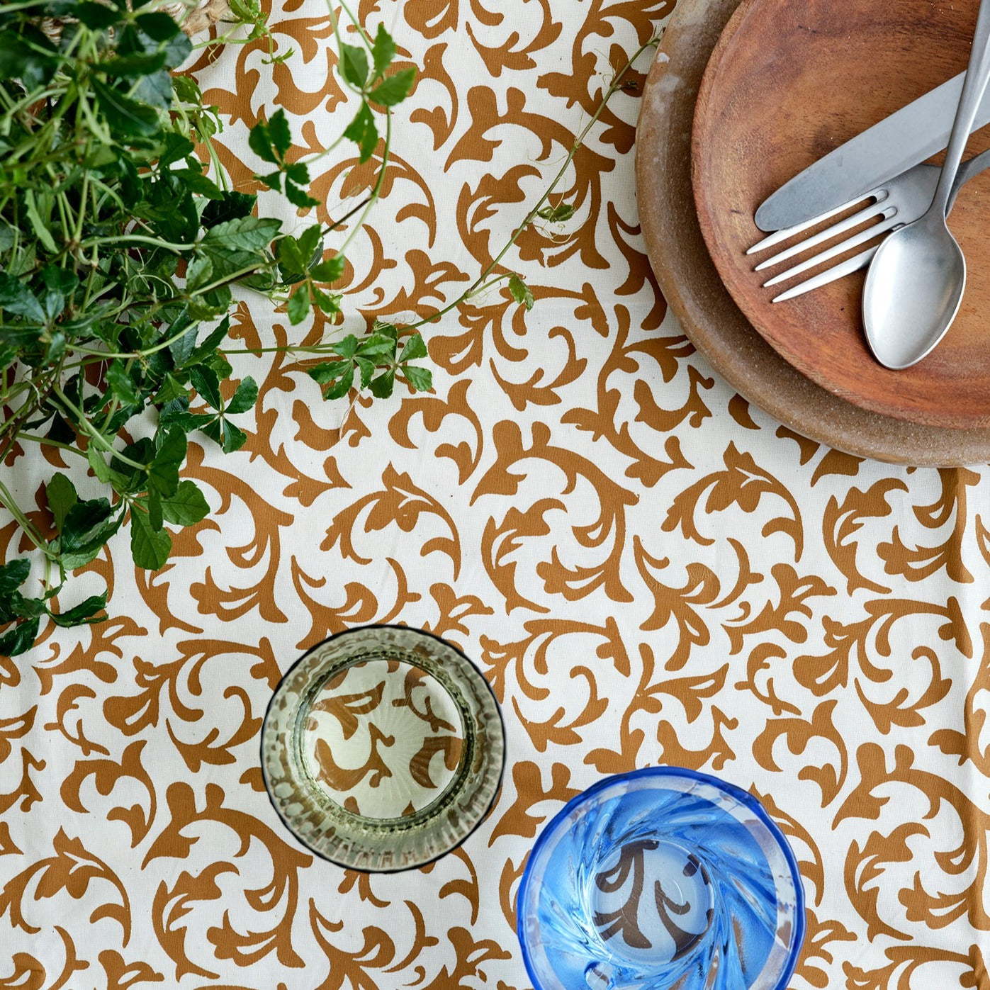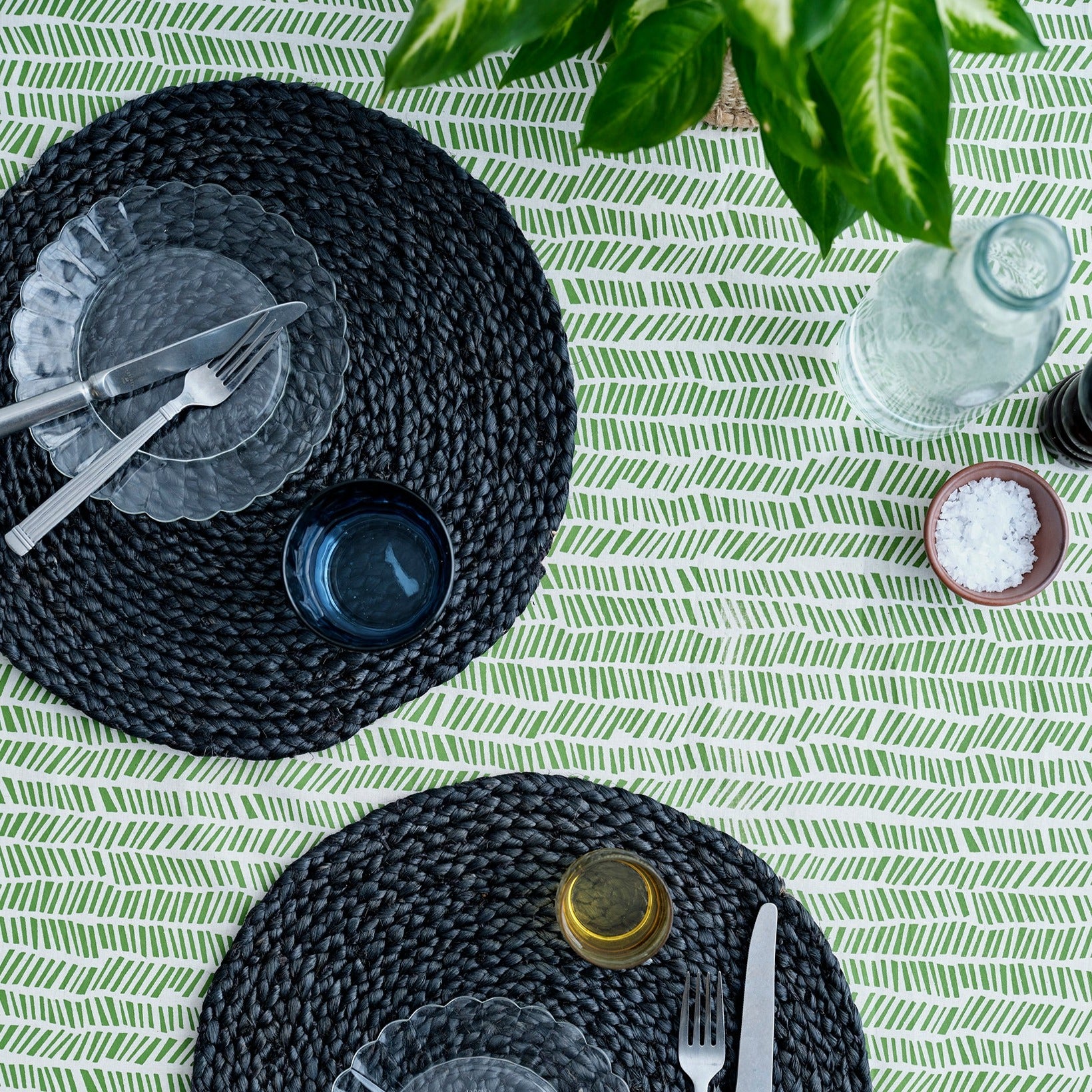 The collection includes, among other things, tablecloths and napkins in GOTS certified organic cotton, round jute placemats and tea caps made from vintage saris.