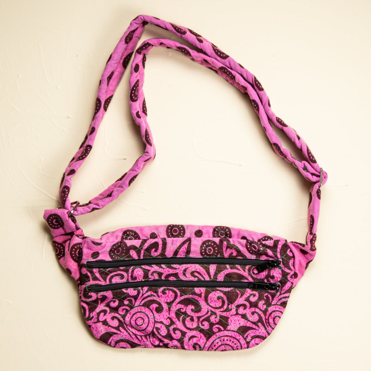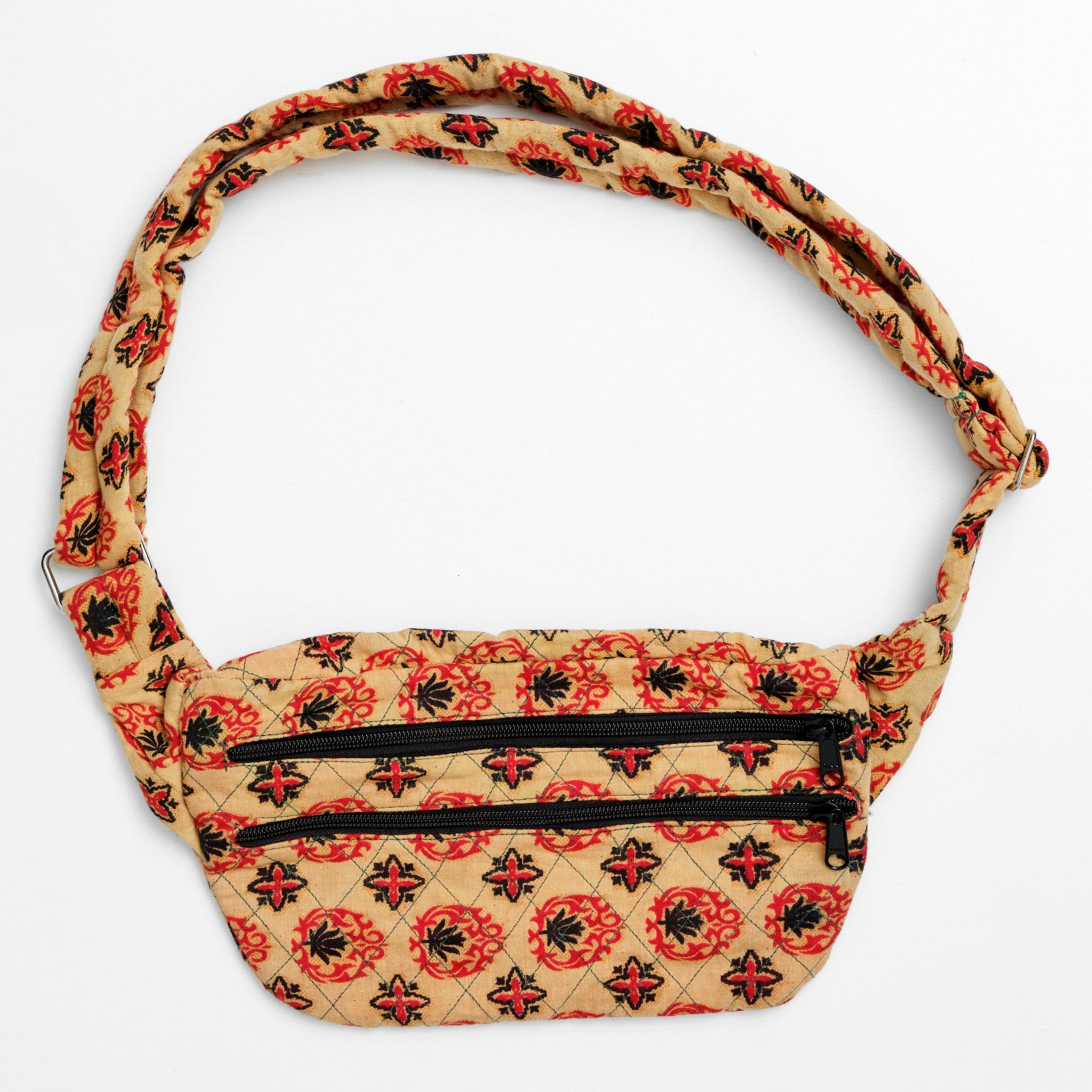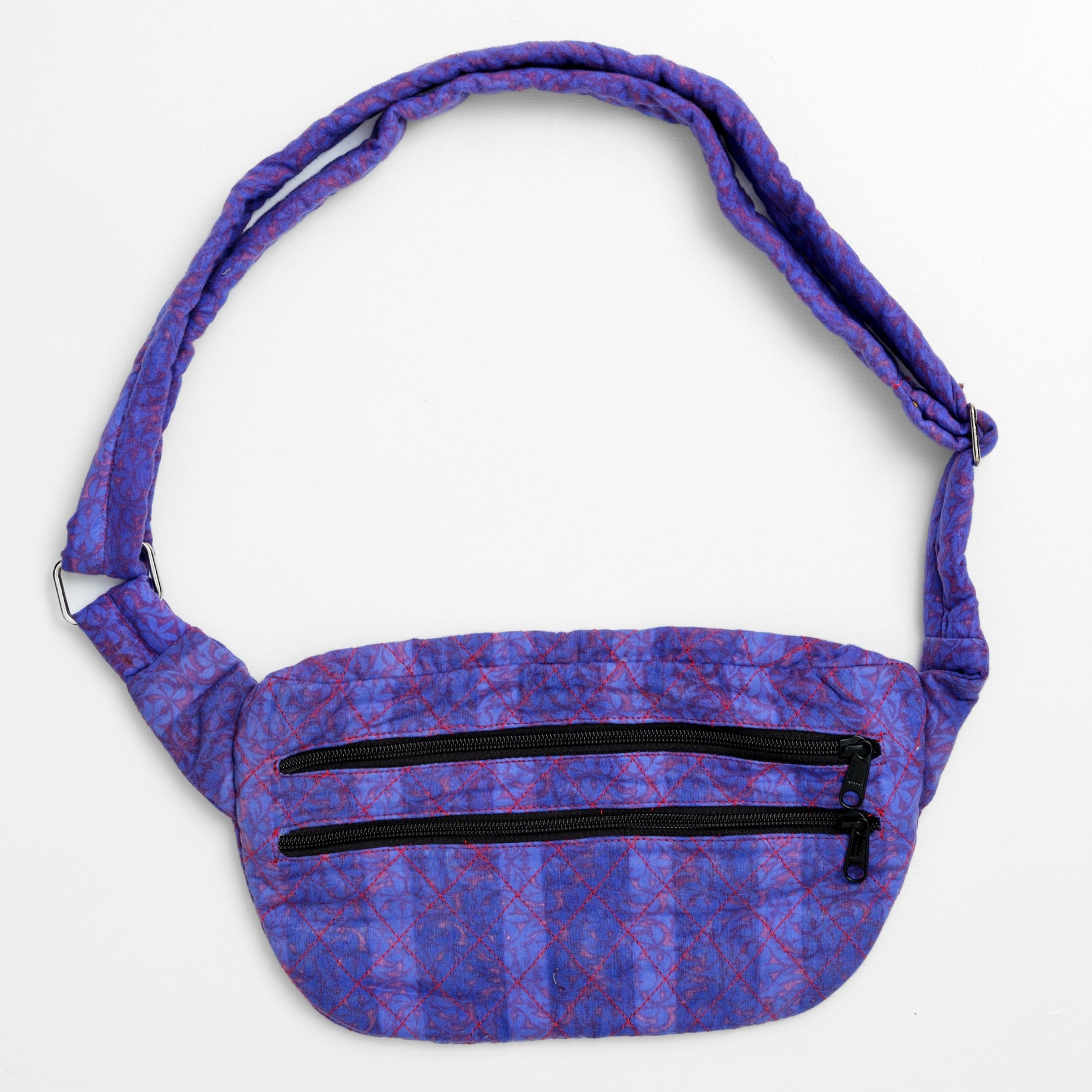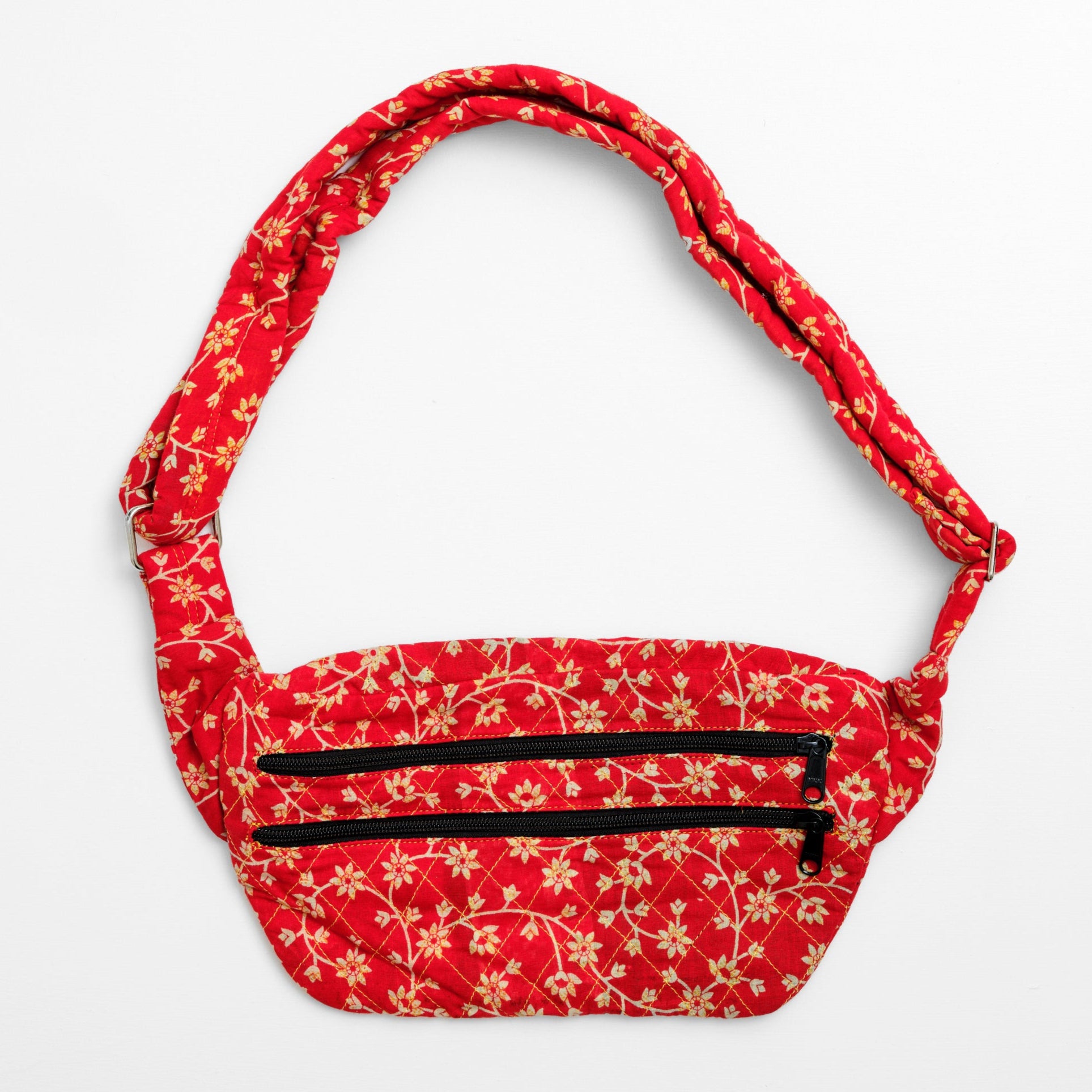 Our belt bags are made from vintage cotton sarees. It has an adjustable strap and internal and external pockets.
