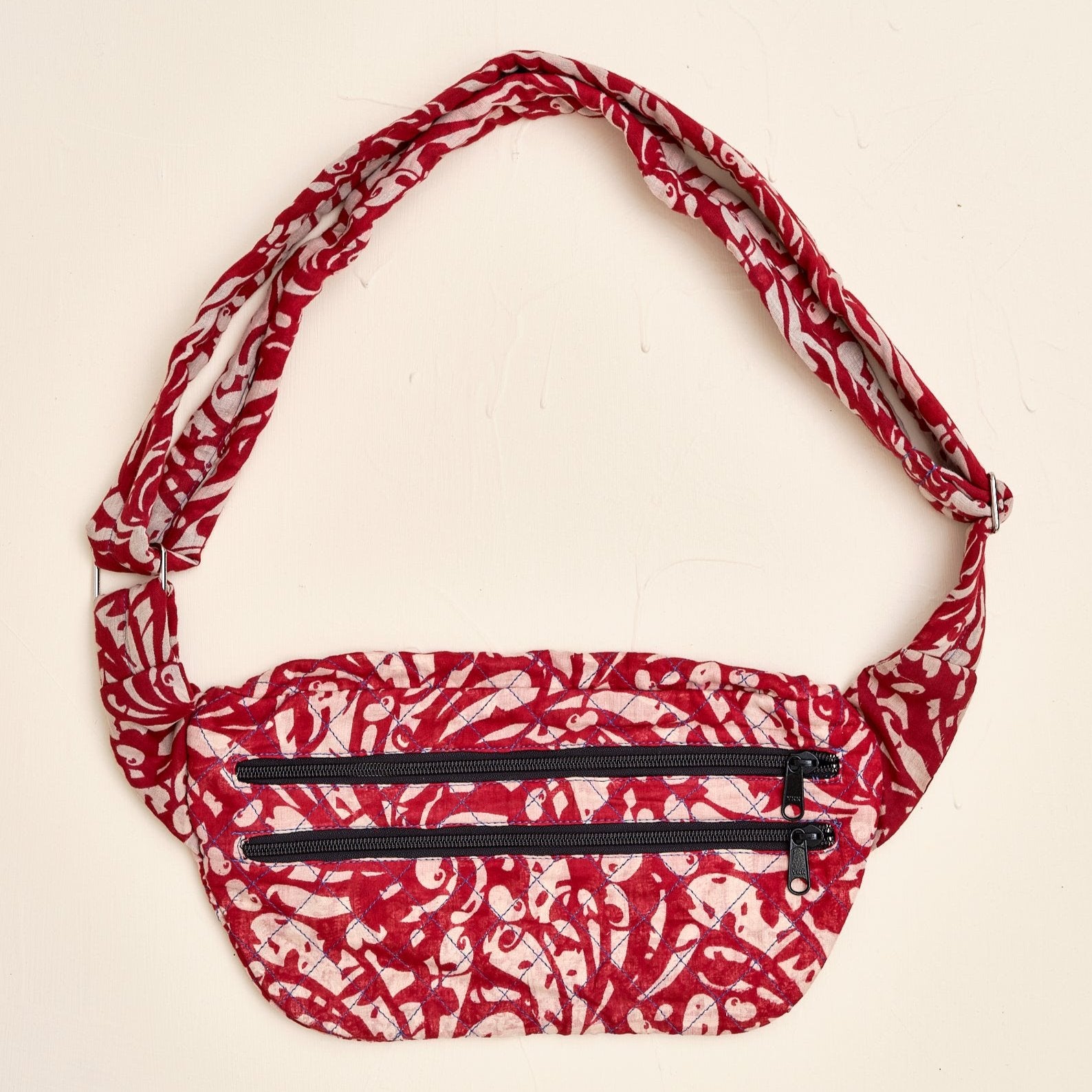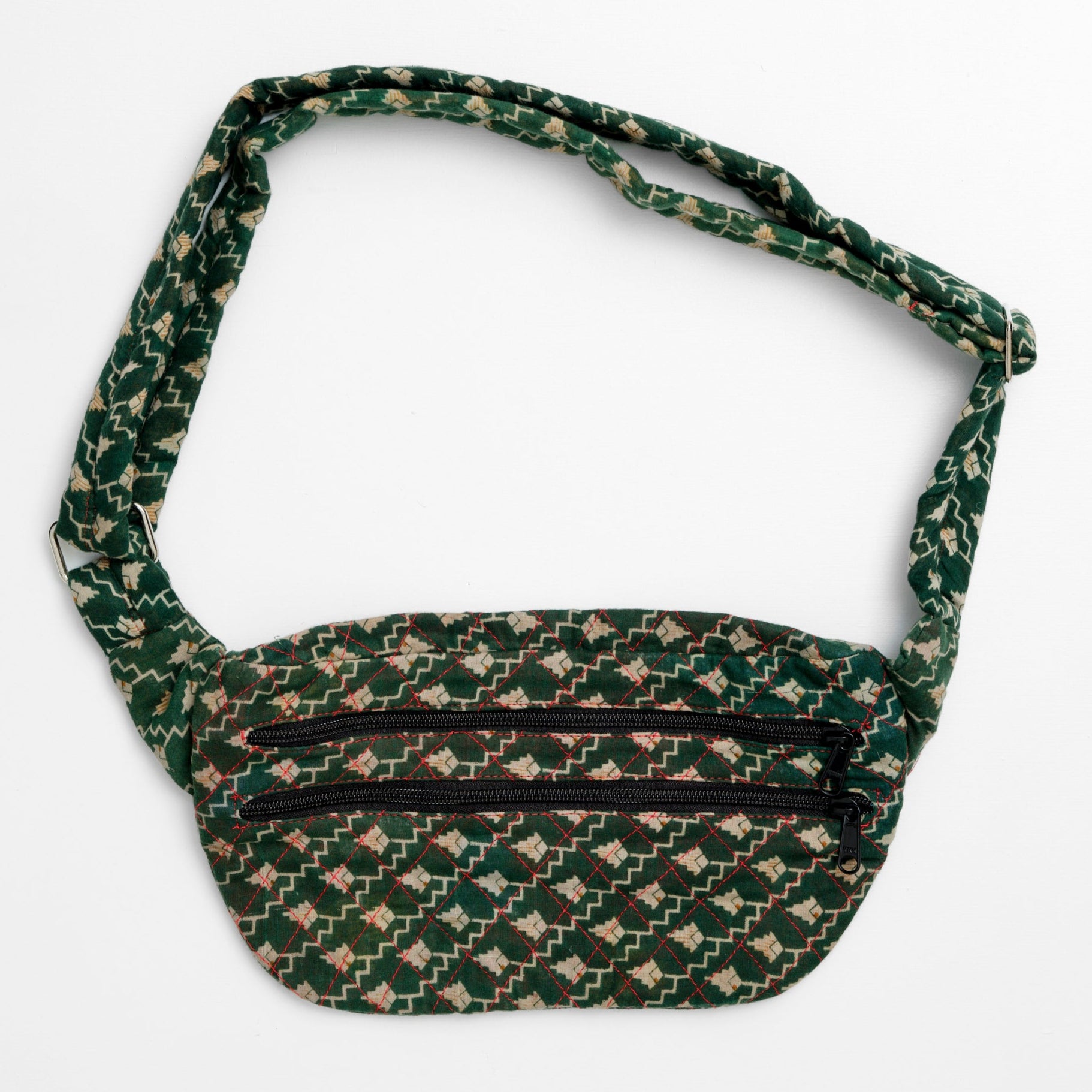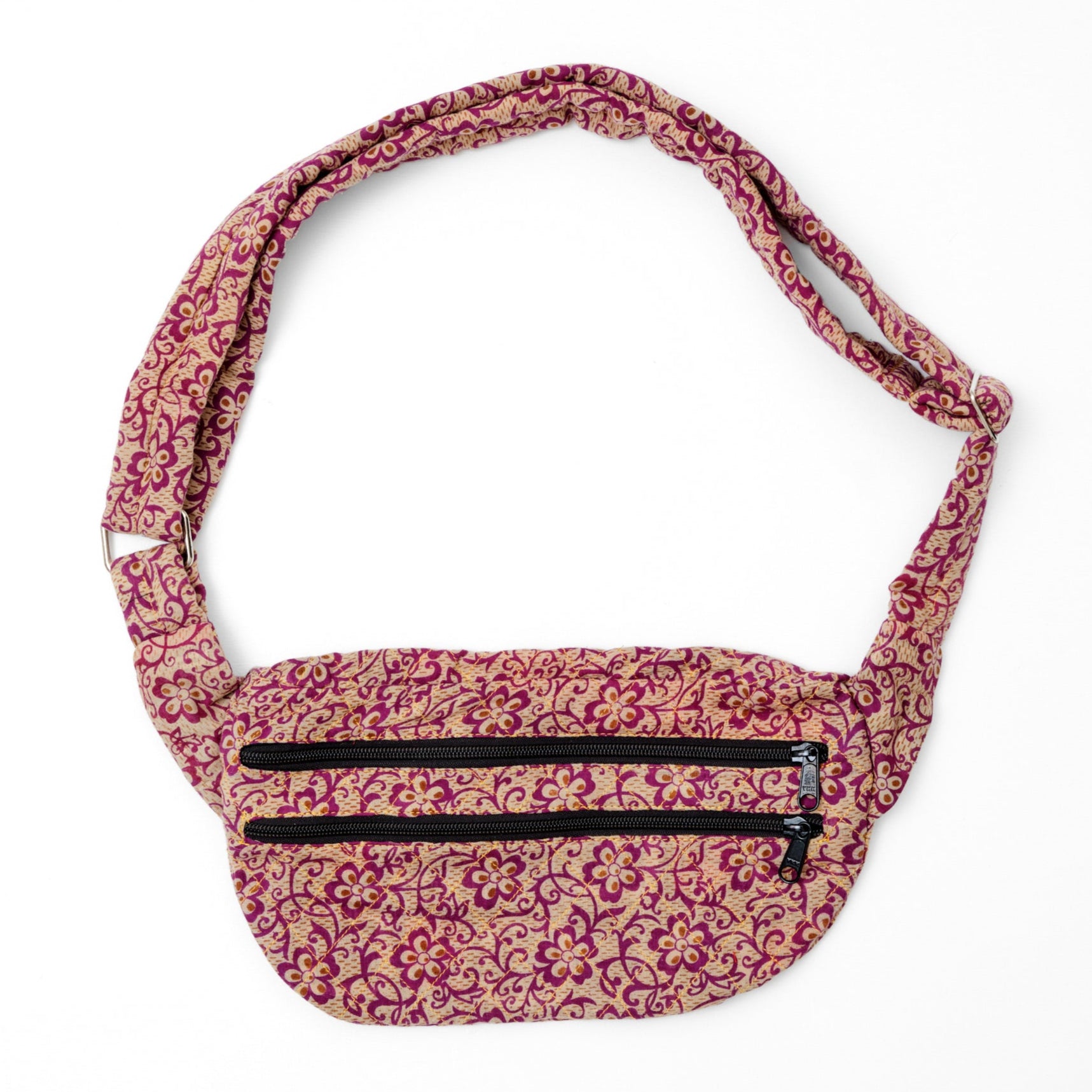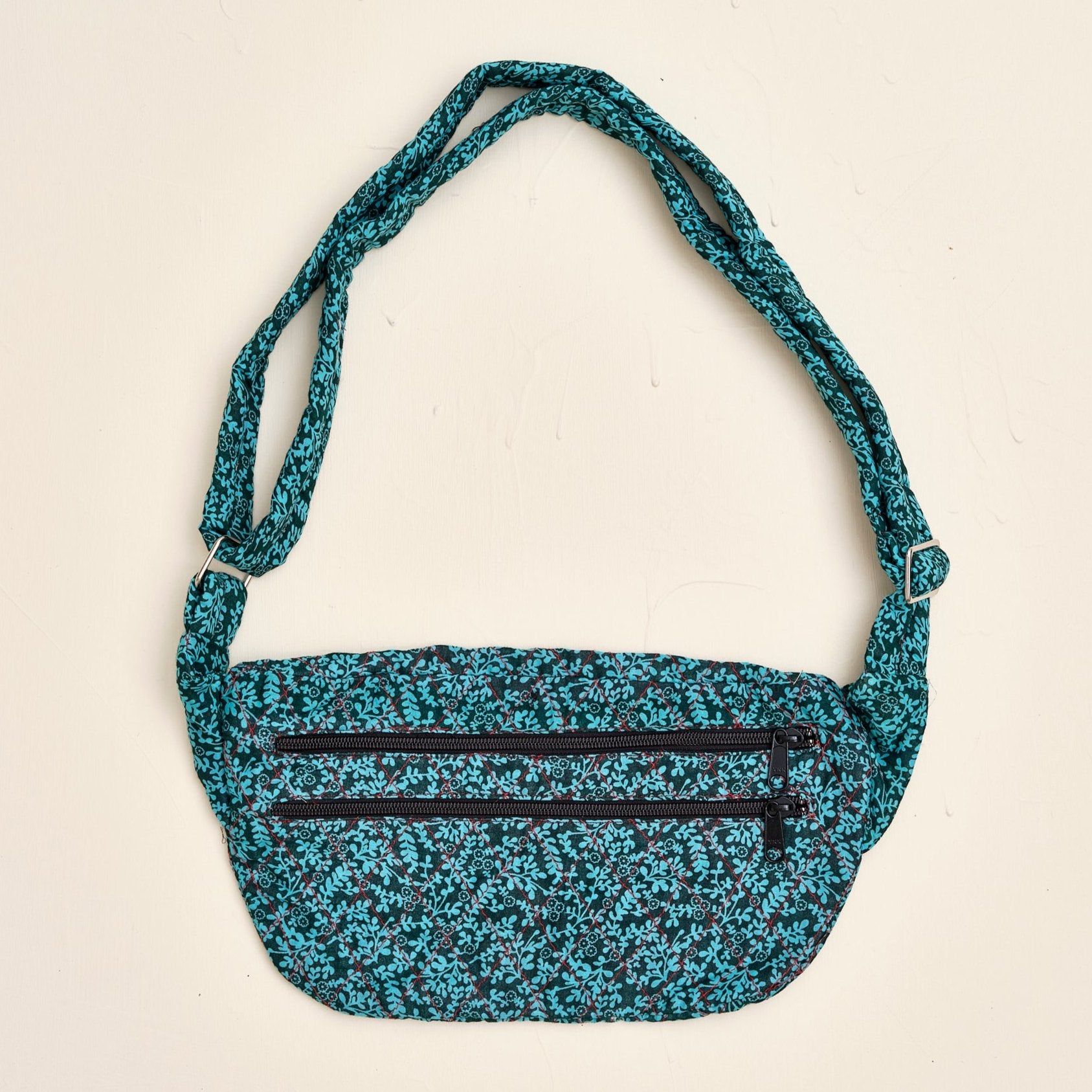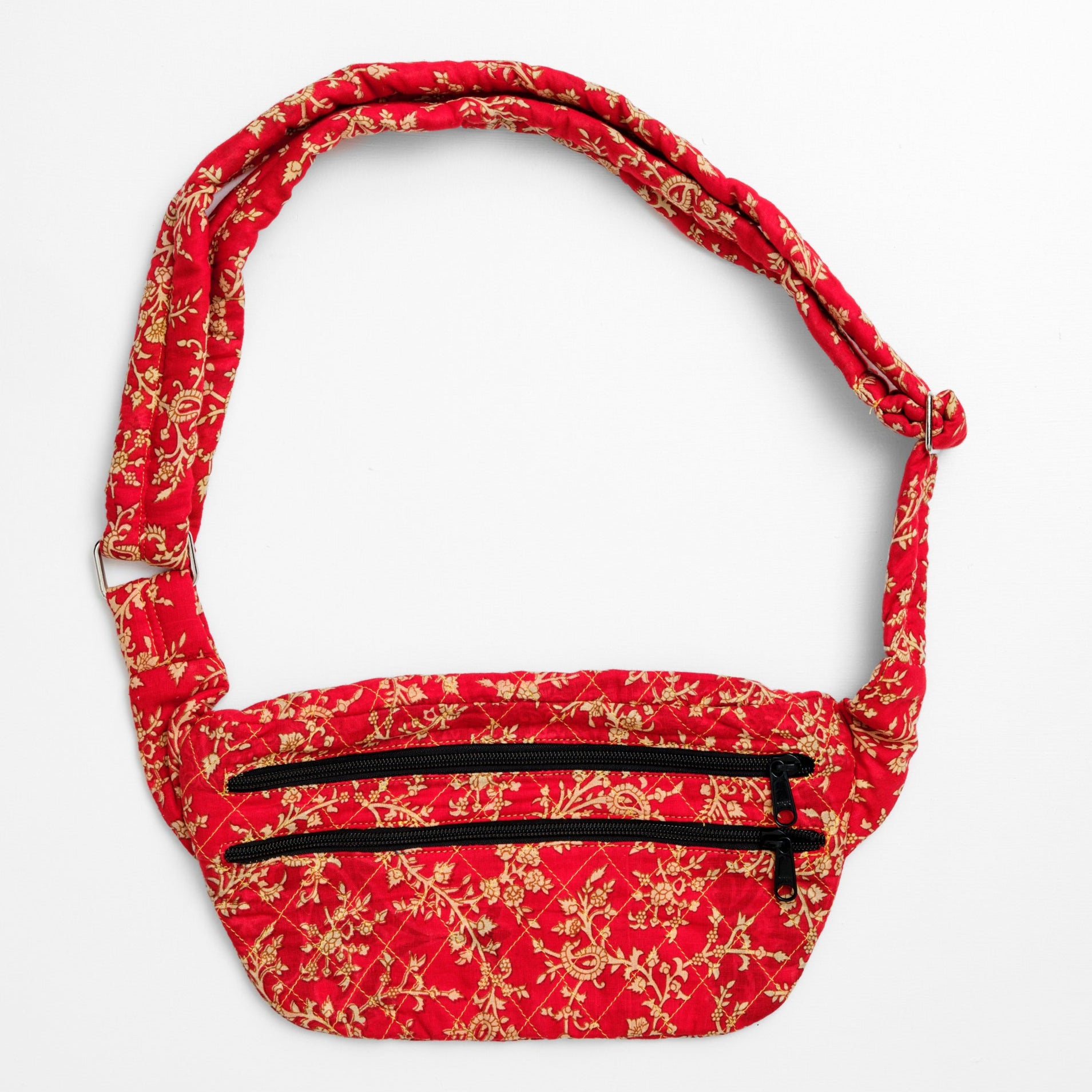 Our belt bags are made from vintage cotton sarees. It has an adjustable strap and internal and external pockets.