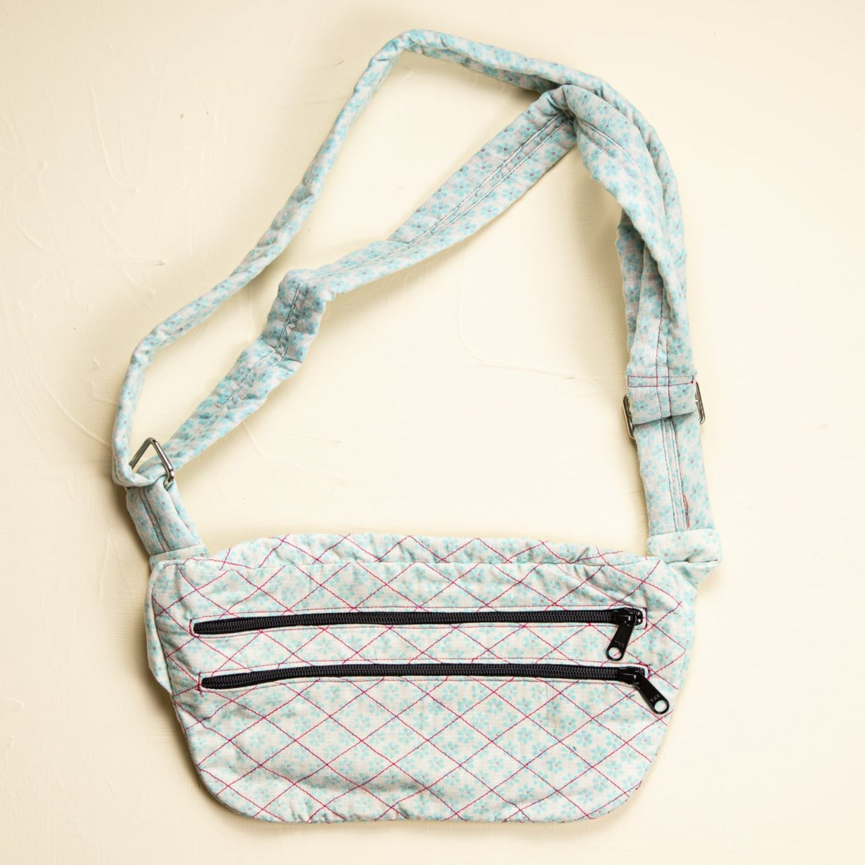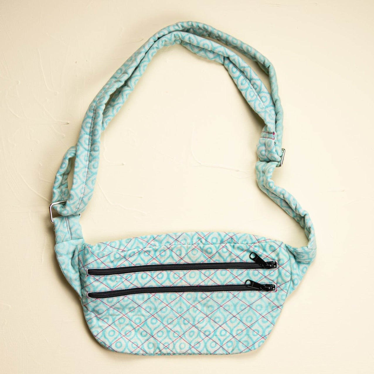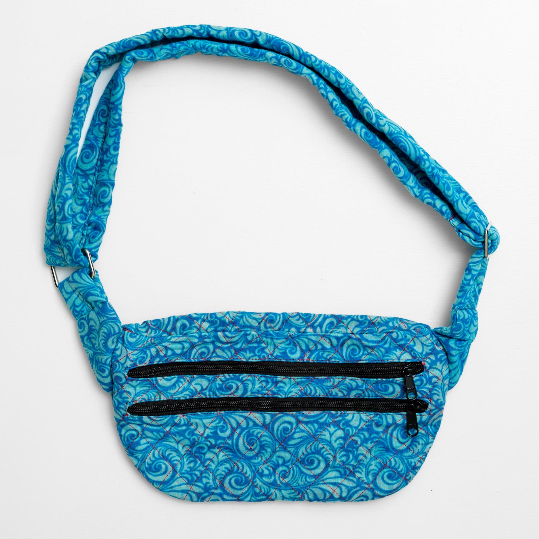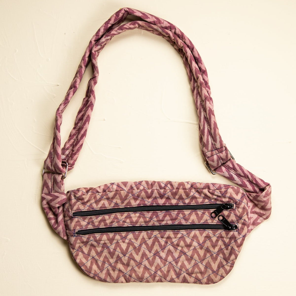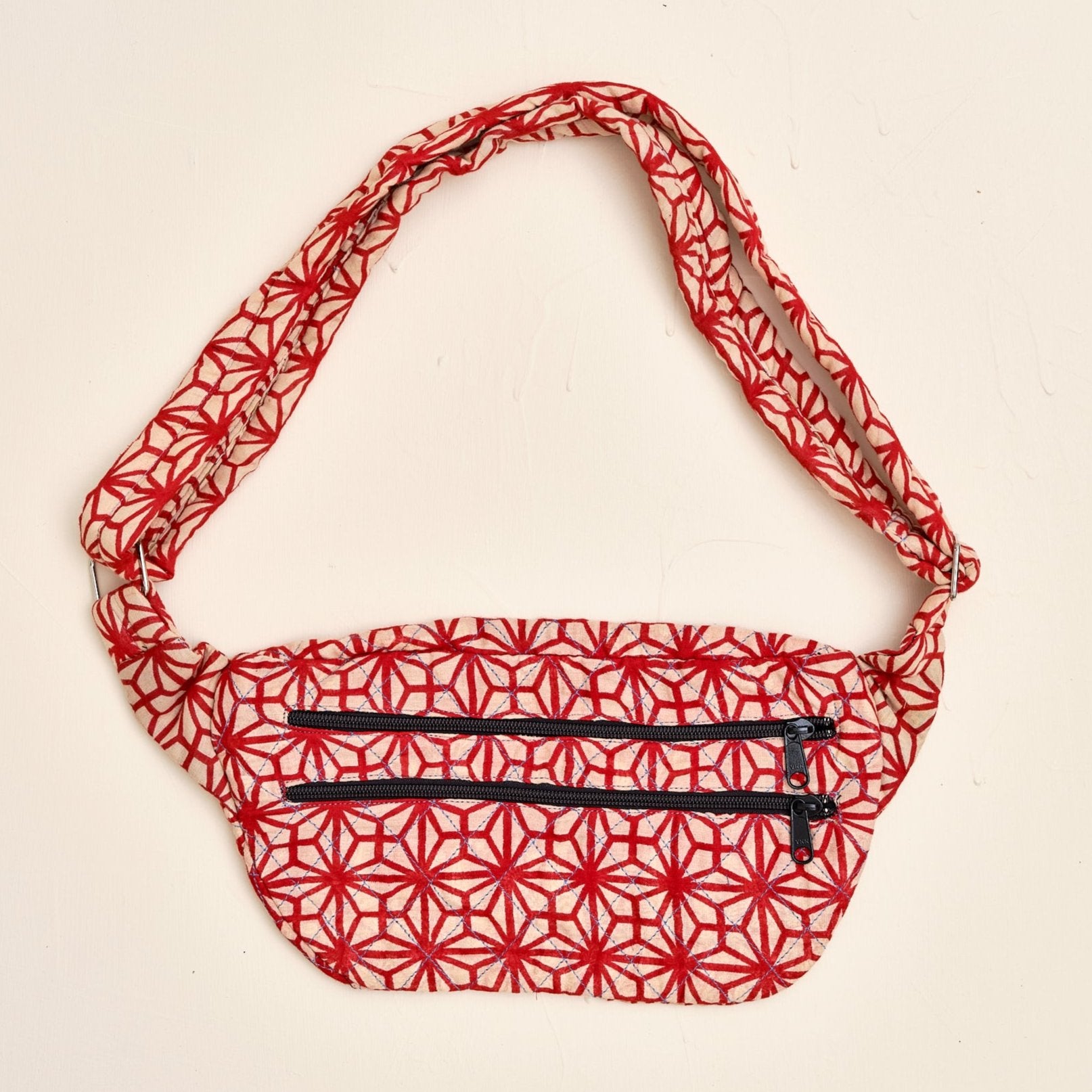 Our belt bags are made from vintage cotton sarees. It has an adjustable strap and internal and external pockets.