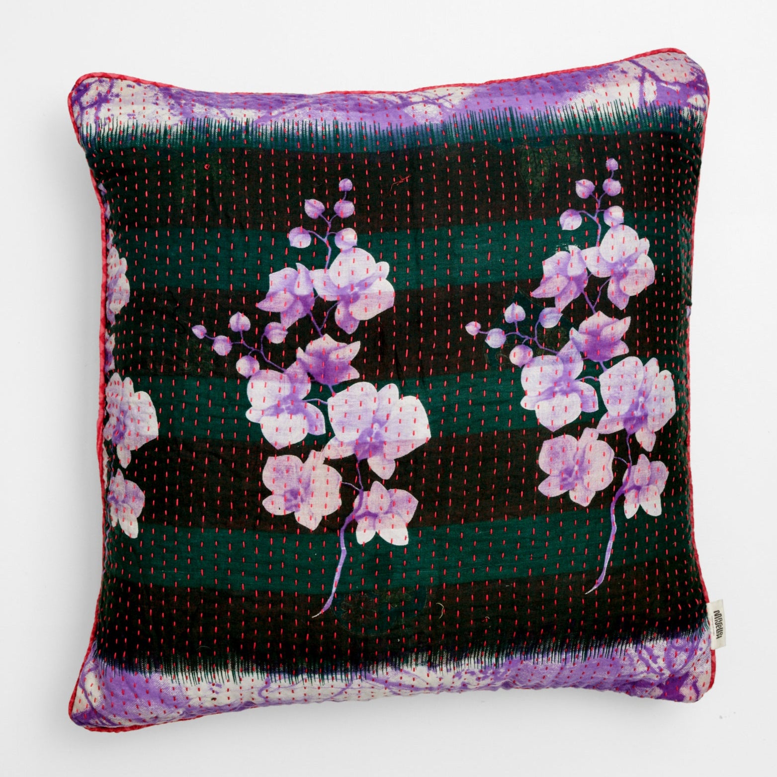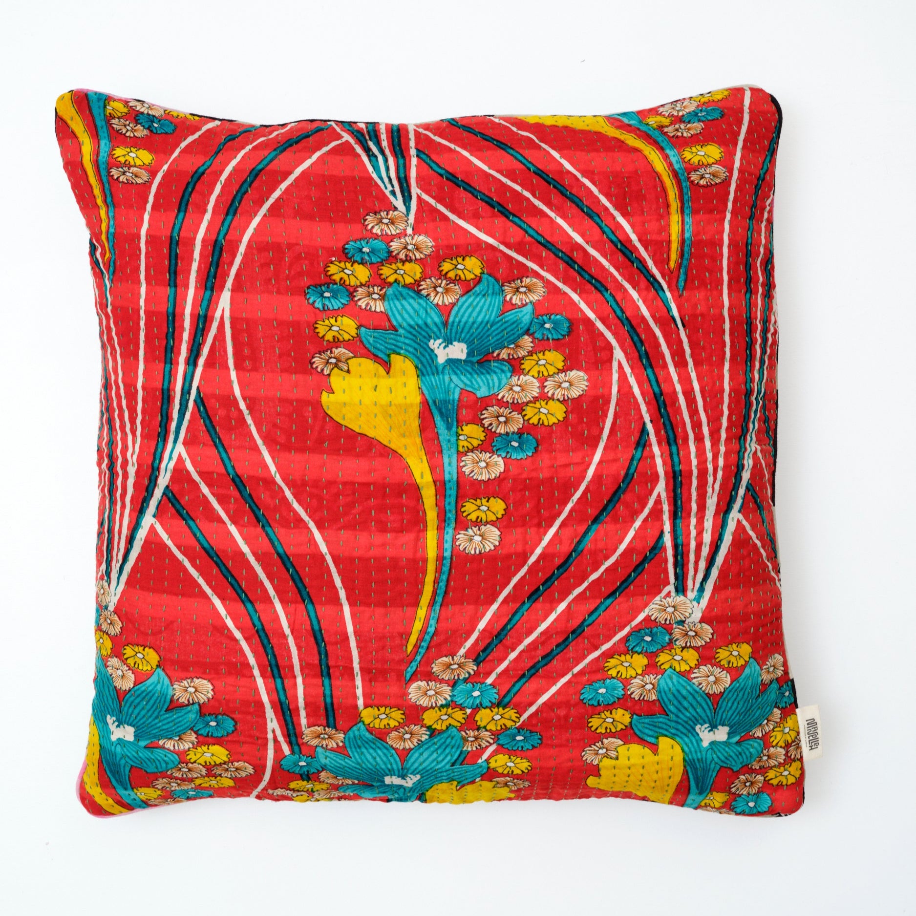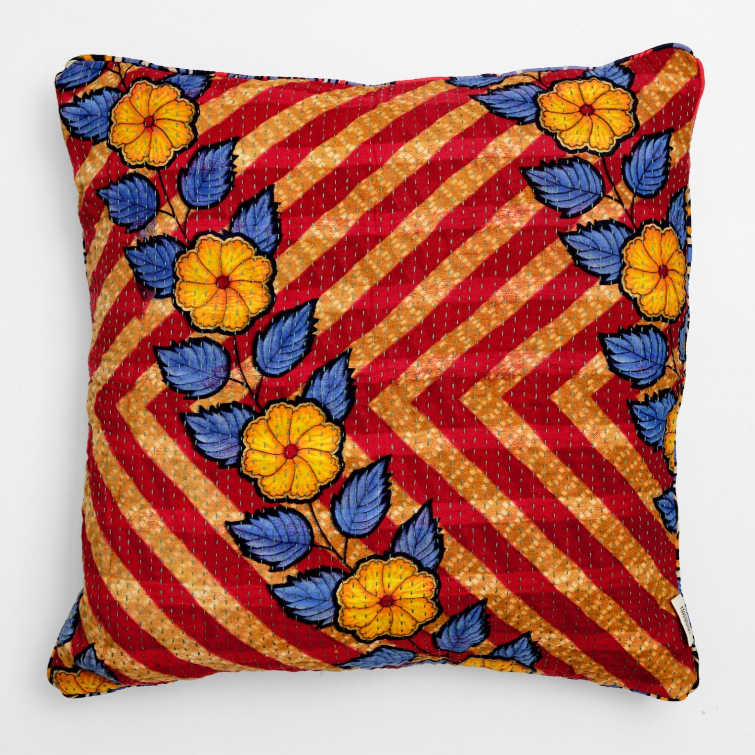The beautiful and colorful cotton cushions 60 x 60 cm are sewn with four layers of vintage cotton saris.