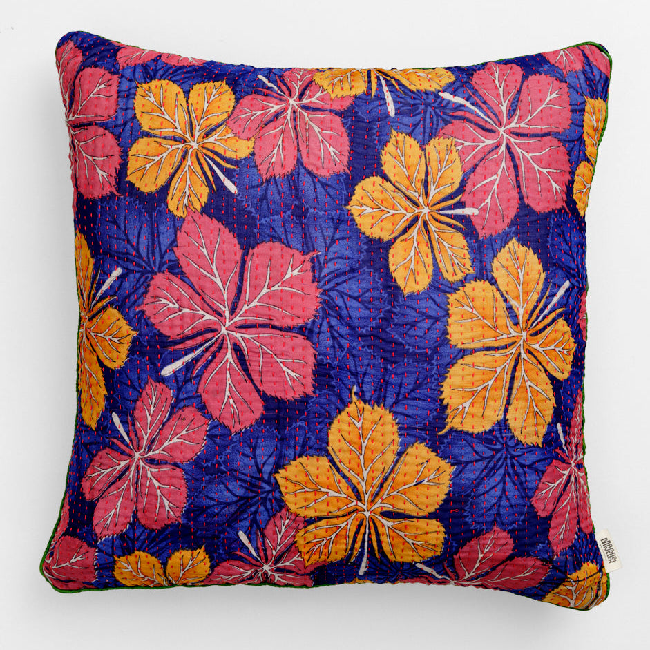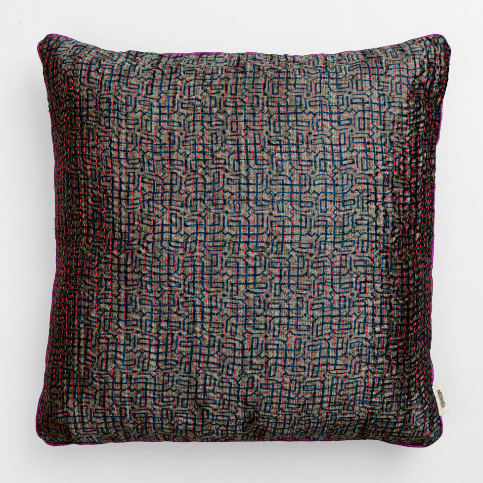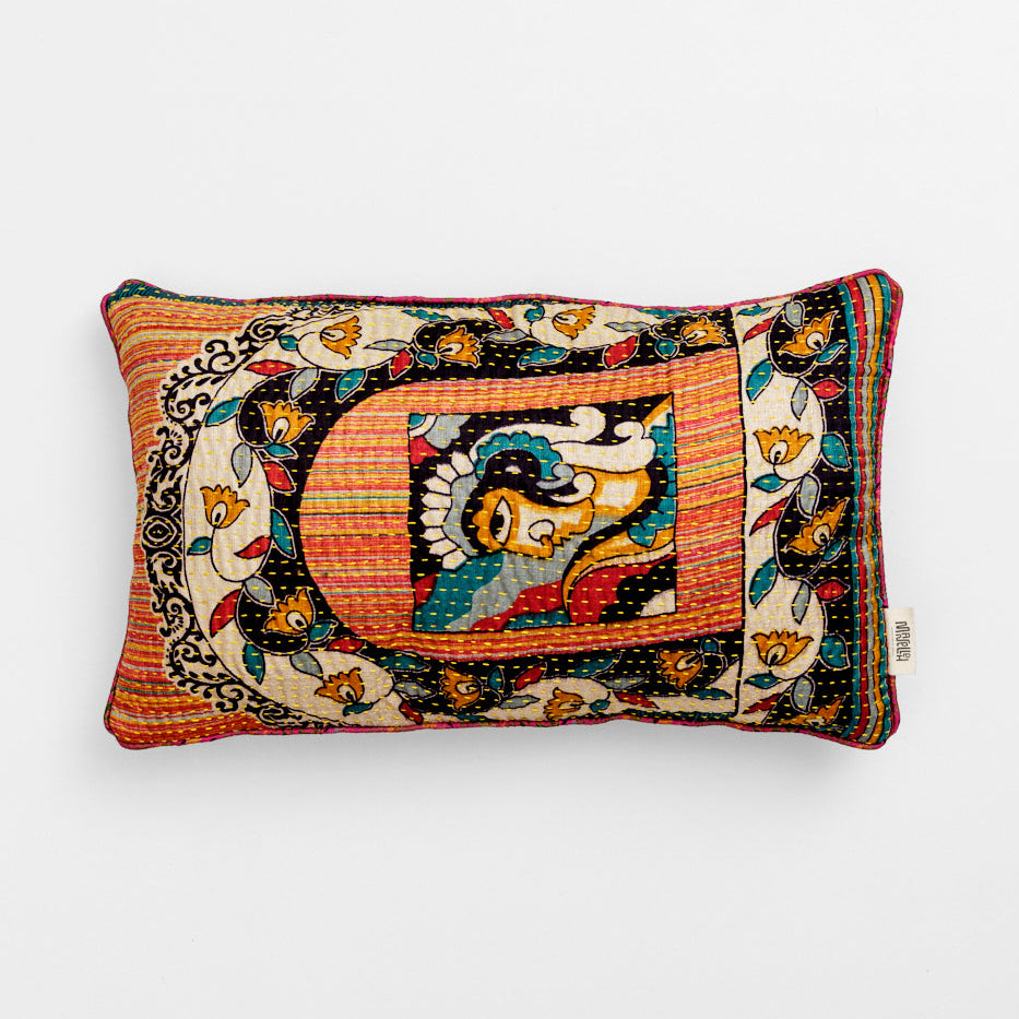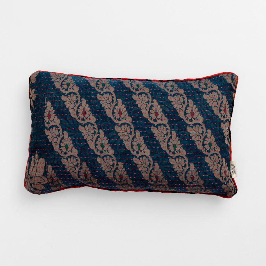 The many beautiful cushions in all kinds of colors are sewn with four layers of vintage saris. They are available in cotton and silk and are made in the sizes: 30x50 cm, 40x60 cm, 40x40 cm, 50x50 cm and 60x60 cm.