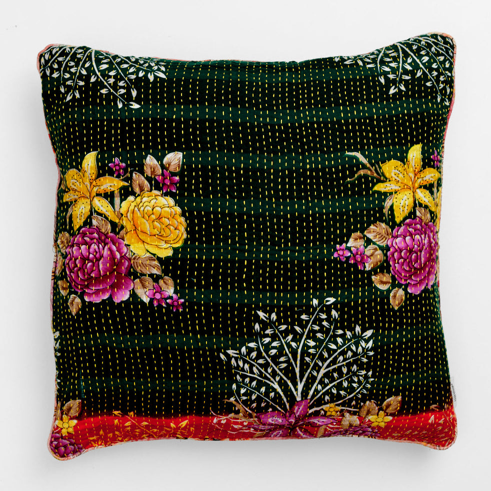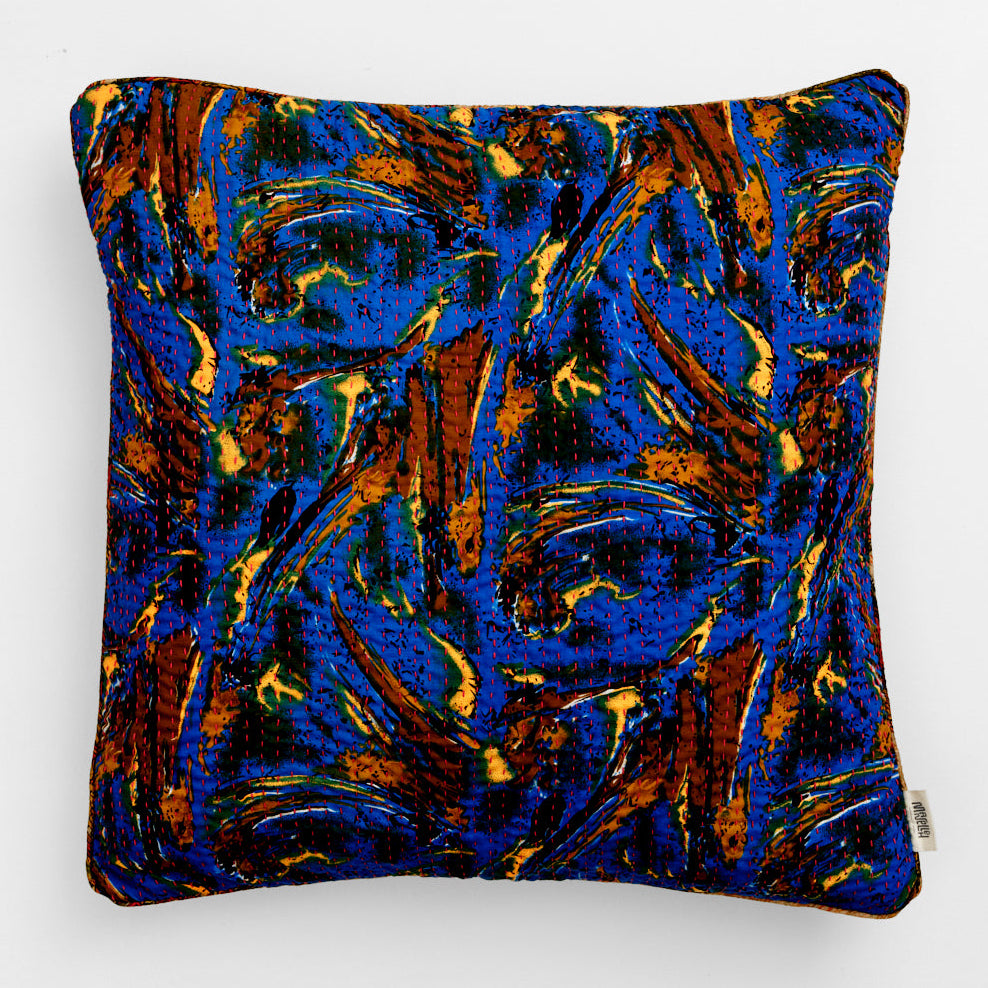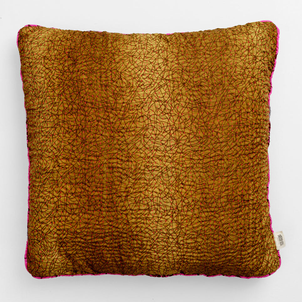 The many beautiful cushions in all kinds of colors are sewn with four layers of vintage saris. They are available in cotton and silk and are made in the sizes: 30x50 cm, 40x60 cm, 40x40 cm, 50x50 cm and 60x60 cm.