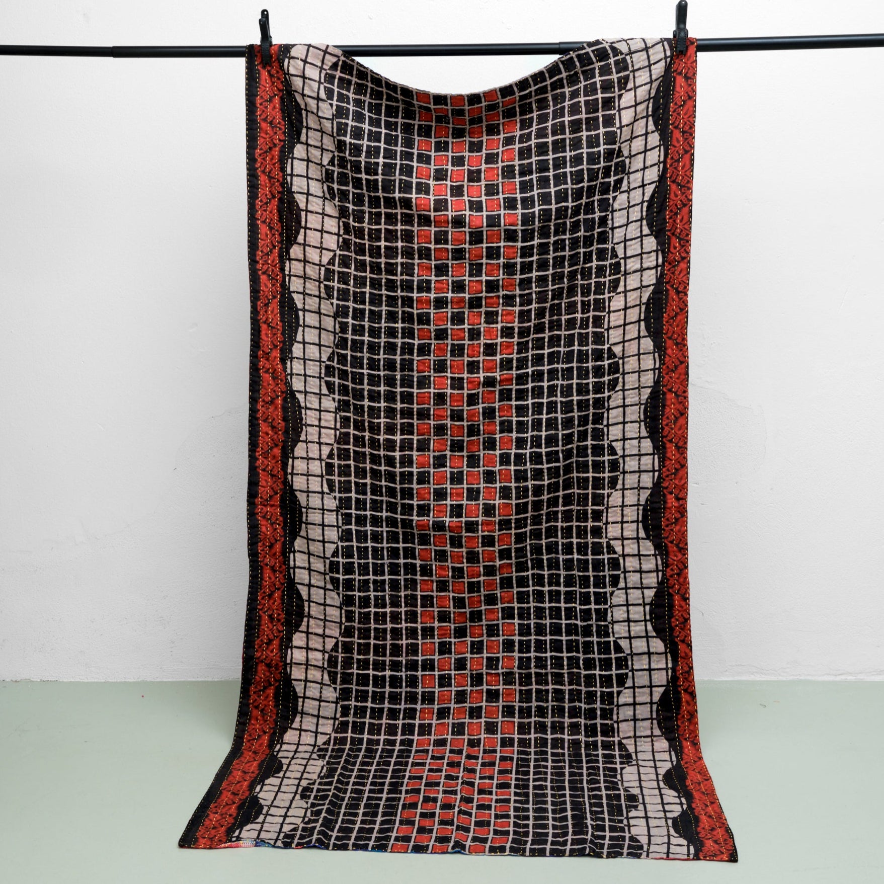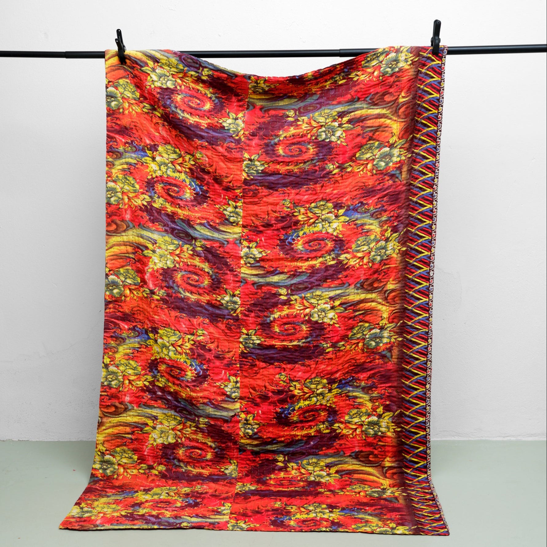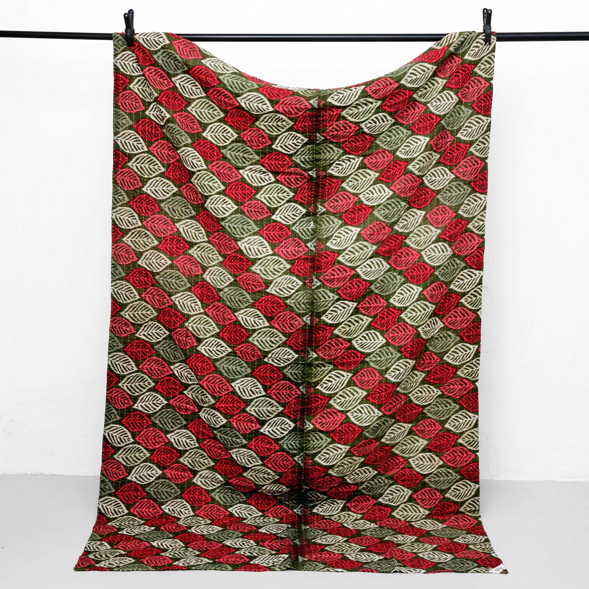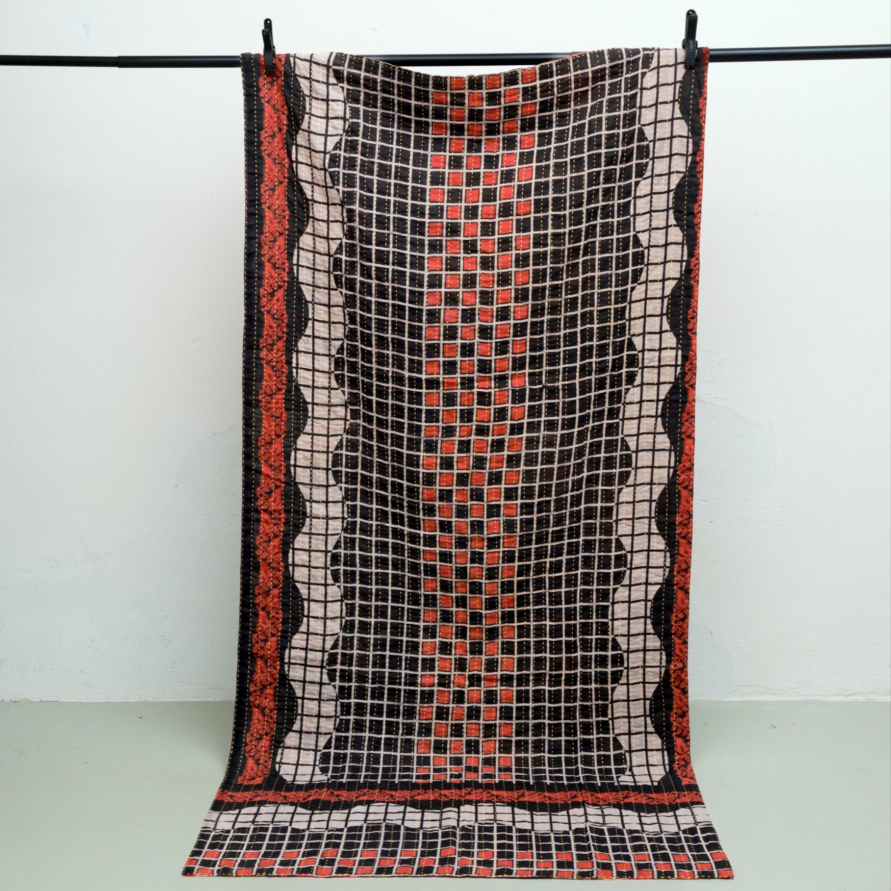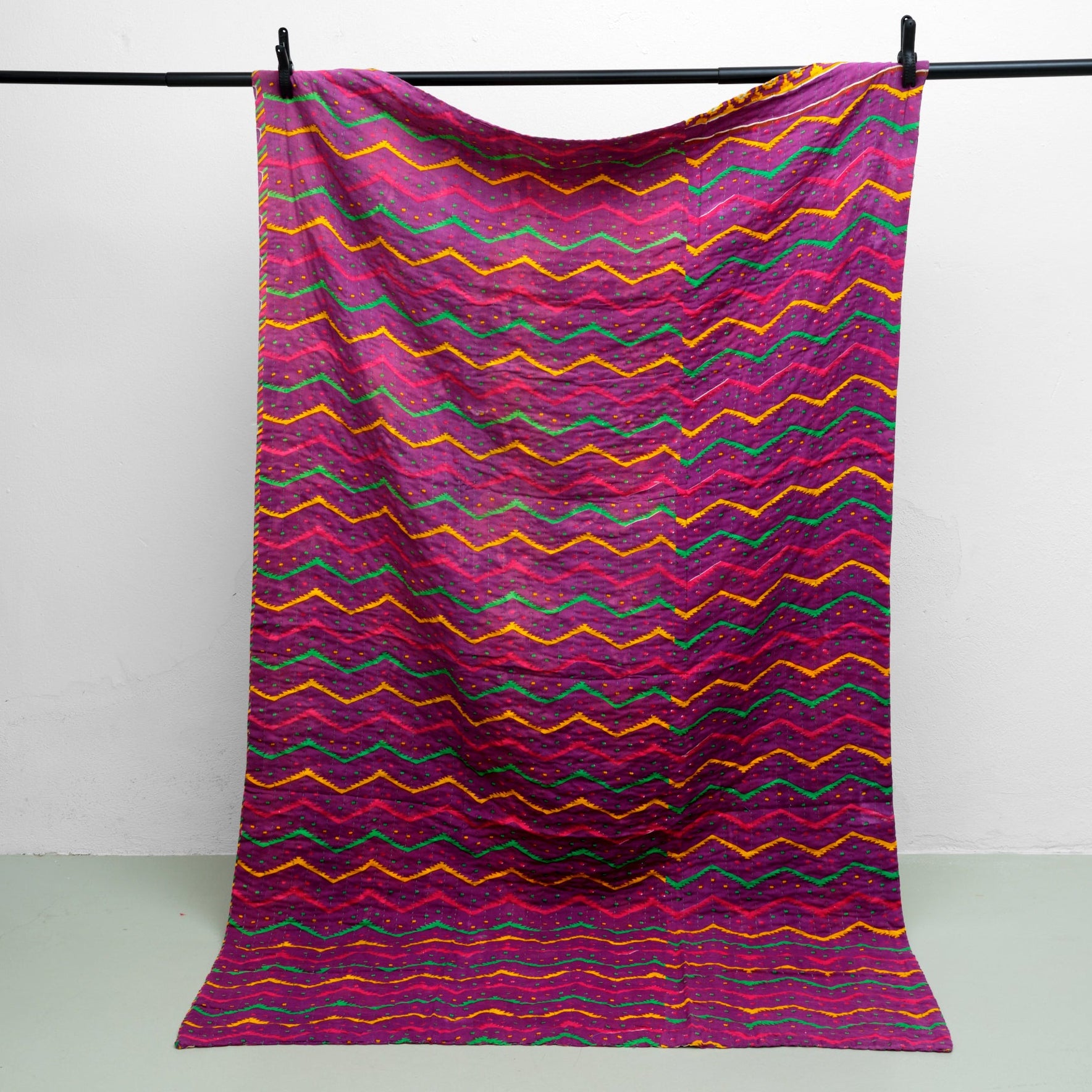 The many unique kantha blankets are hand-stitched with four layers of vintage cotton saris. The blankets are available in many different sizes, and each blanket is unique.