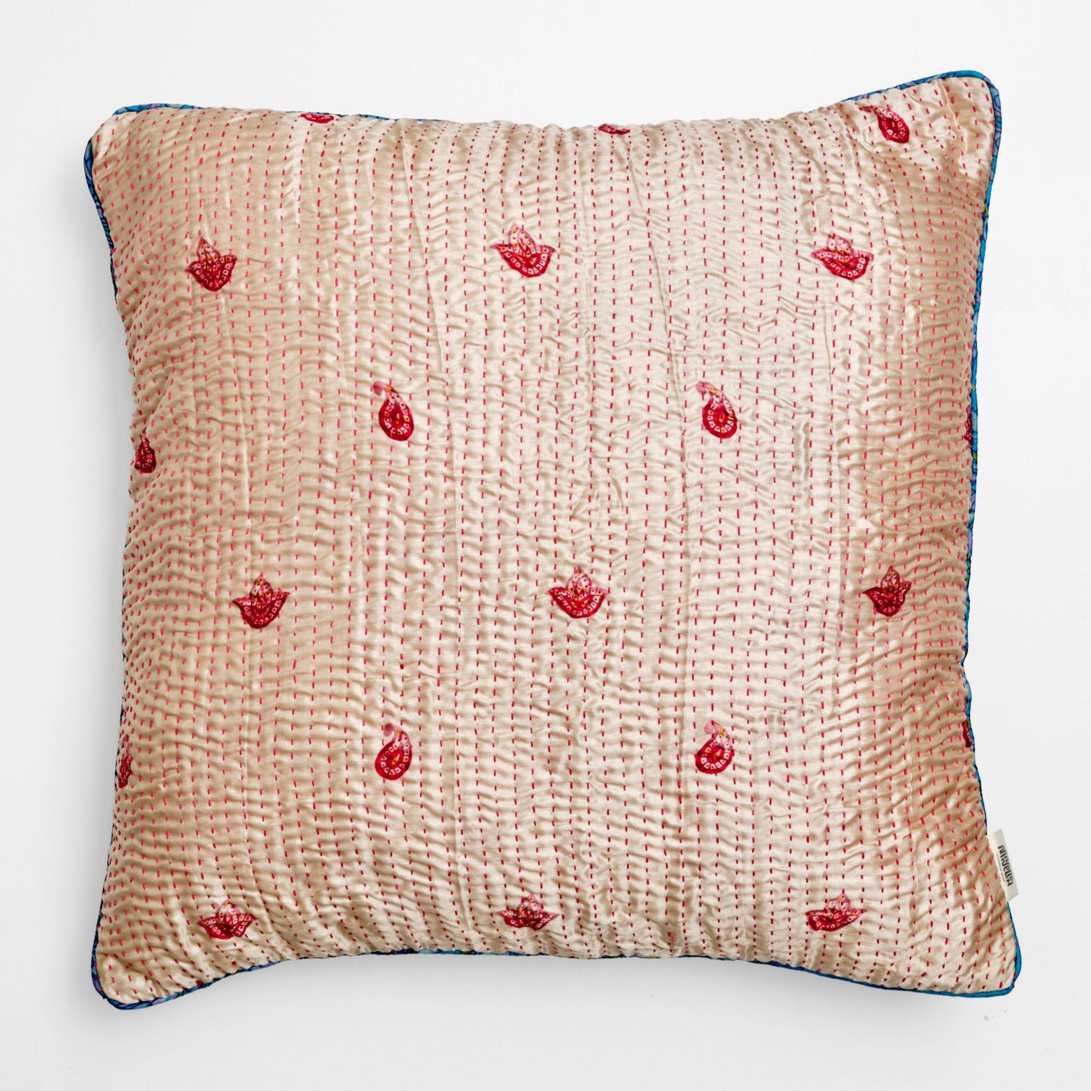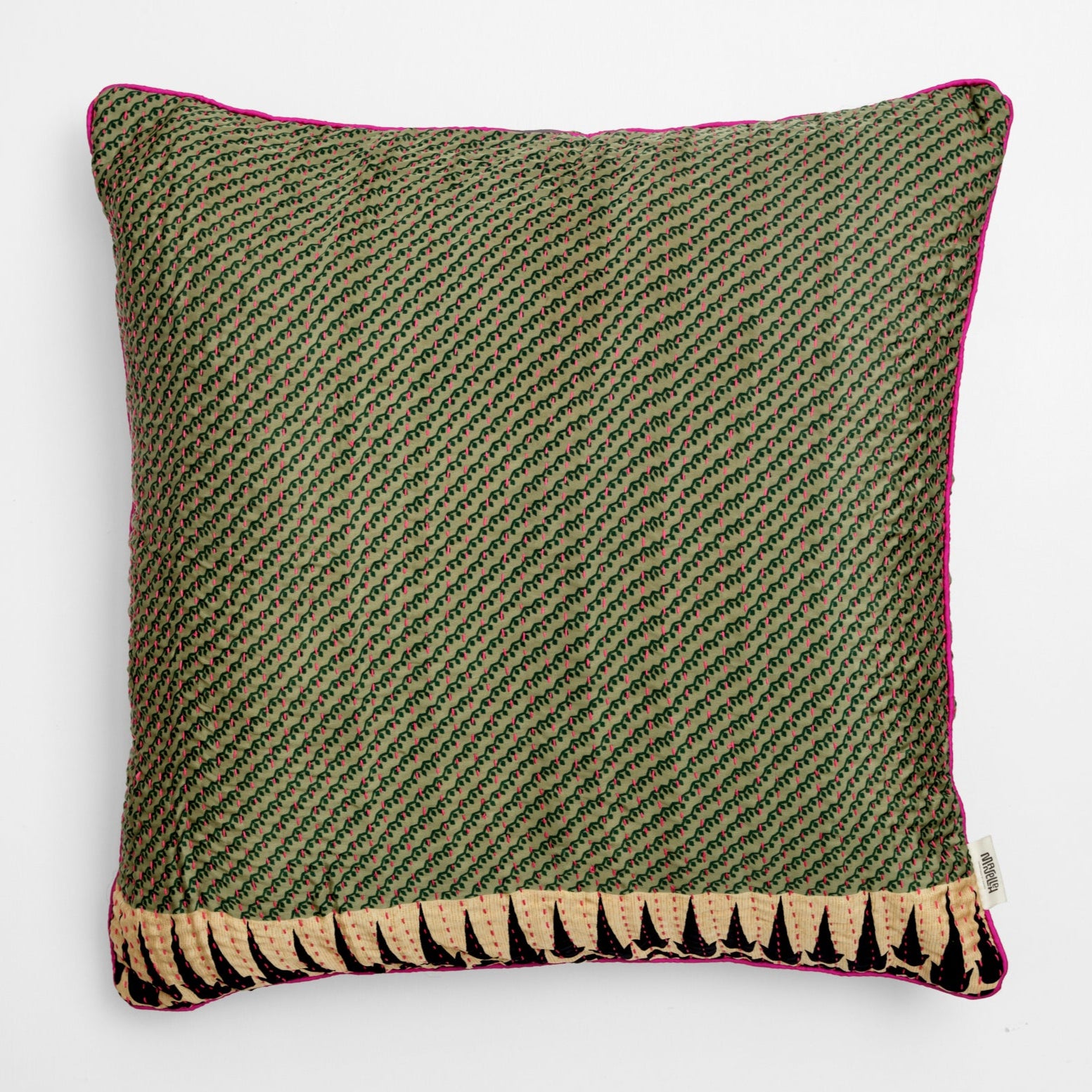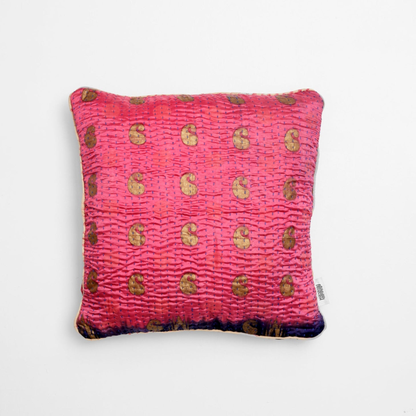 The many beautiful unique cushions are sewn with four layers of vintage saris. They are available in cotton and silk and are made in the sizes: 30x50 cm, 40x60 cm, 40x40 cm, 50x50 cm and 60x60 cm.