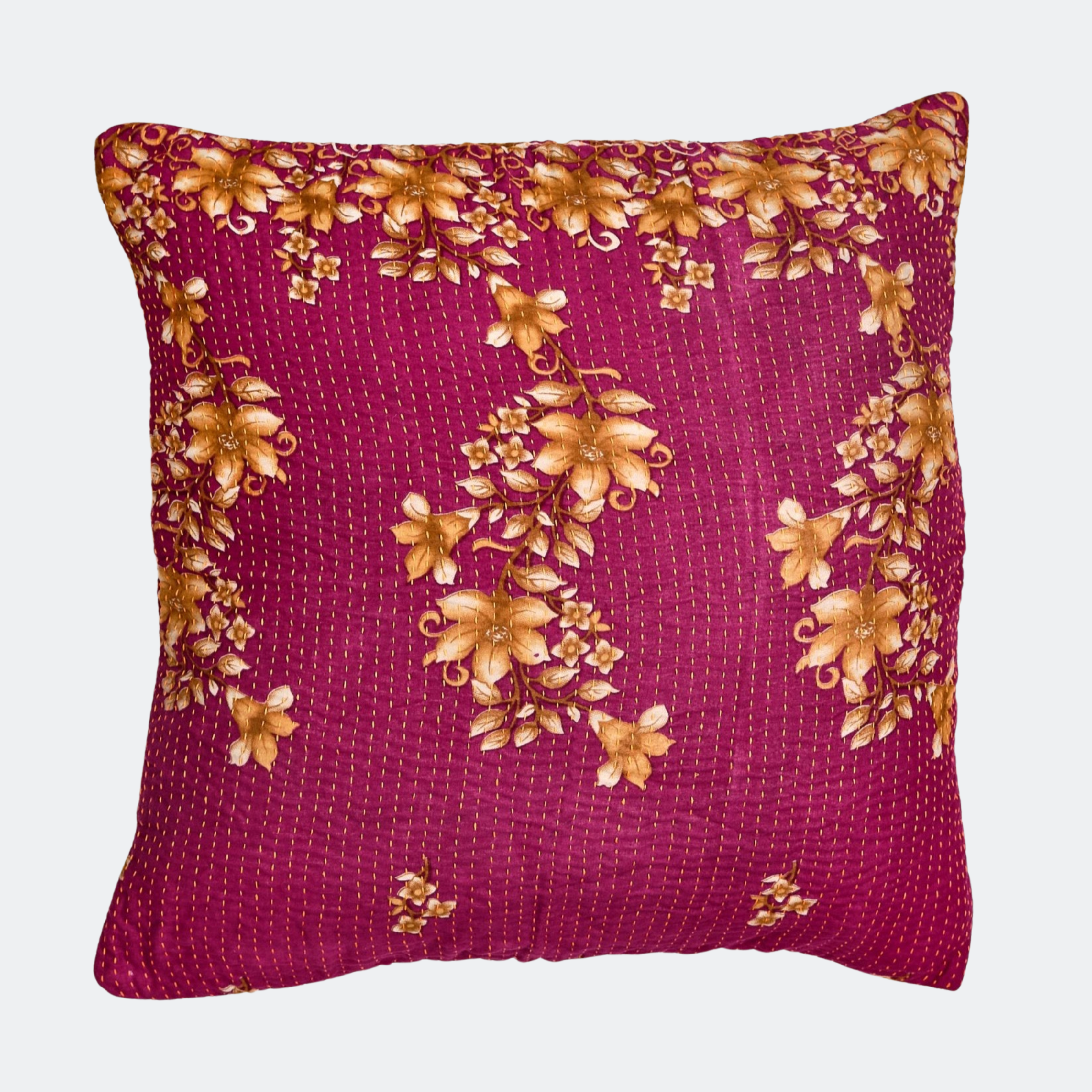 The many beautiful unique cushions are sewn with four layers of vintage saris. They are available in cotton and silk and are made in the sizes: 30x50 cm, 40x60 cm, 40x40 cm, 50x50 cm and 60x60 cm.