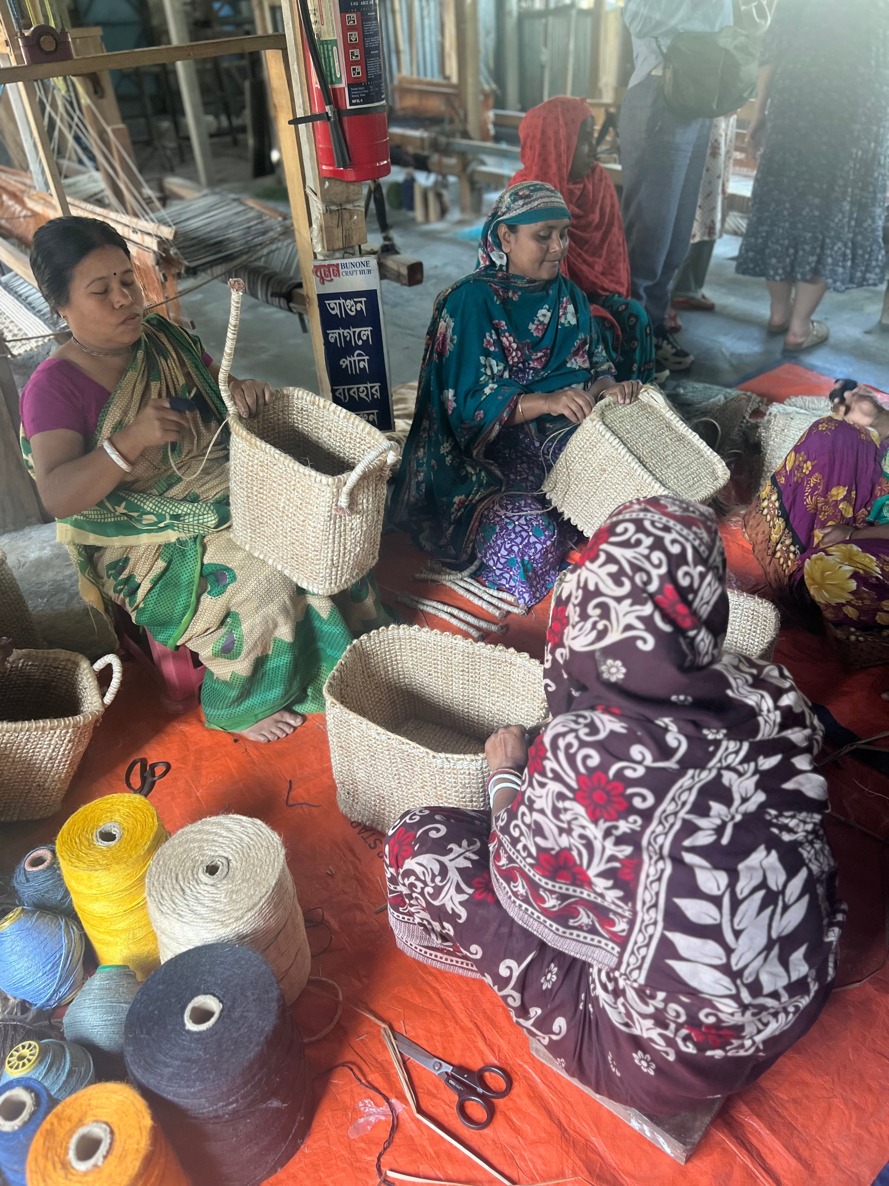 Vi kører cirka to timer uden for Saidpur langt ud på landet, hvor vi besøger Bunon Kutir, som er en af de organisationer, som Manelleh samarbejder med. Bunon Kutir arbejder for at skabe jobs til kvinder i landområdet i det nordlige Bangladesh. Her får kvinderne en fair løn og er samtidig med til at bevare og udvikle gamle håndværkstradition. Her håndvæver de tæpper og fletter smukke kurve.