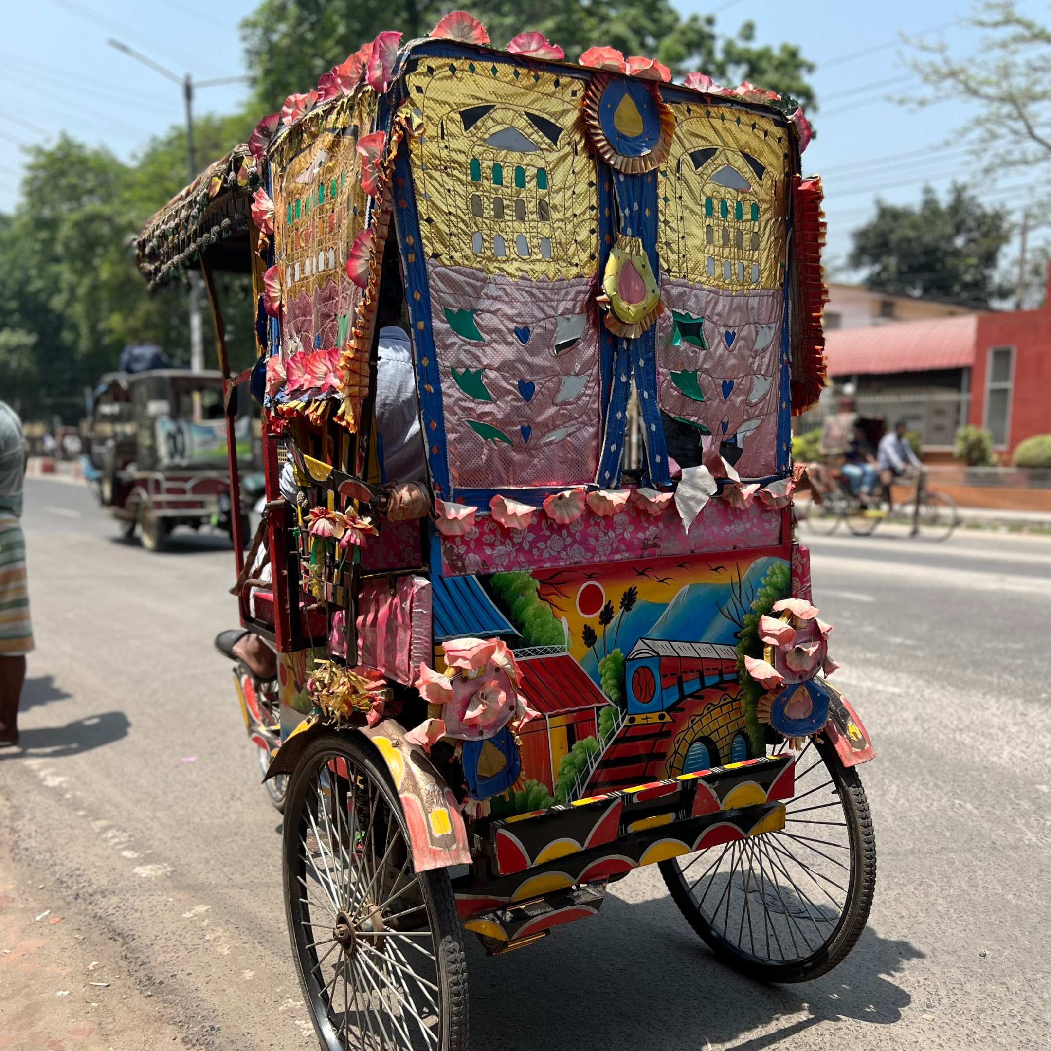 Vi besøger det lokale Gulshan-marked for at få et indtryk af det lokale liv i Dhaka. På Gulshan markedet køber folk deres daglige fornødenheder, men der findes også interessante butikker for rejsende med perler, messing, læder og ægte lokal silke i metermål. Man kan også købe billige briller af god kvalitet. Vi smager naturligvis på det, som gadesælgerne tilbyder. Alt 100% frisklavet, så det er fuldt forsvarligt at spise.